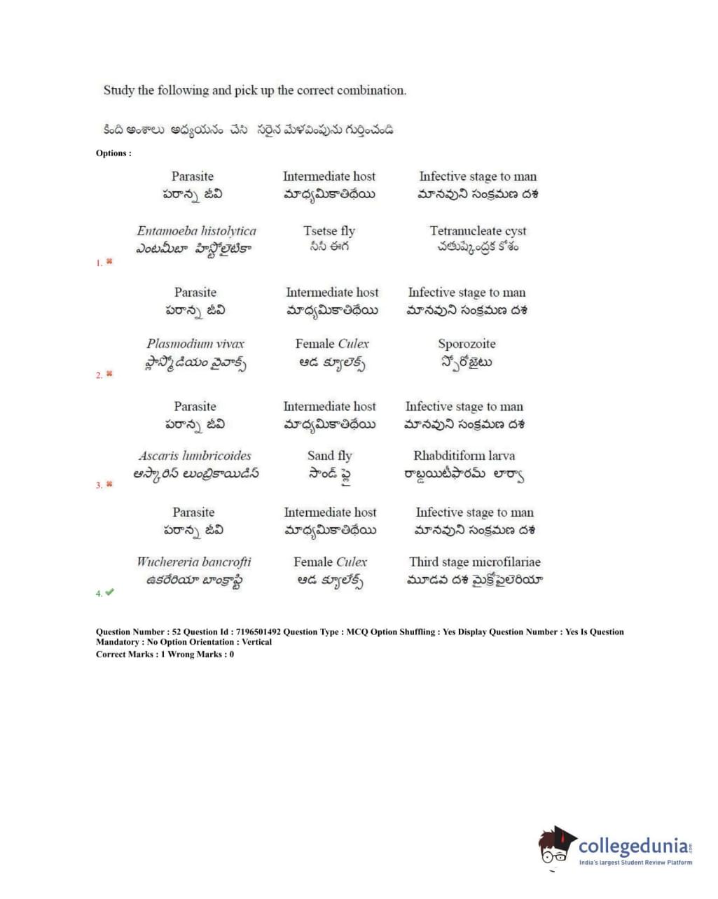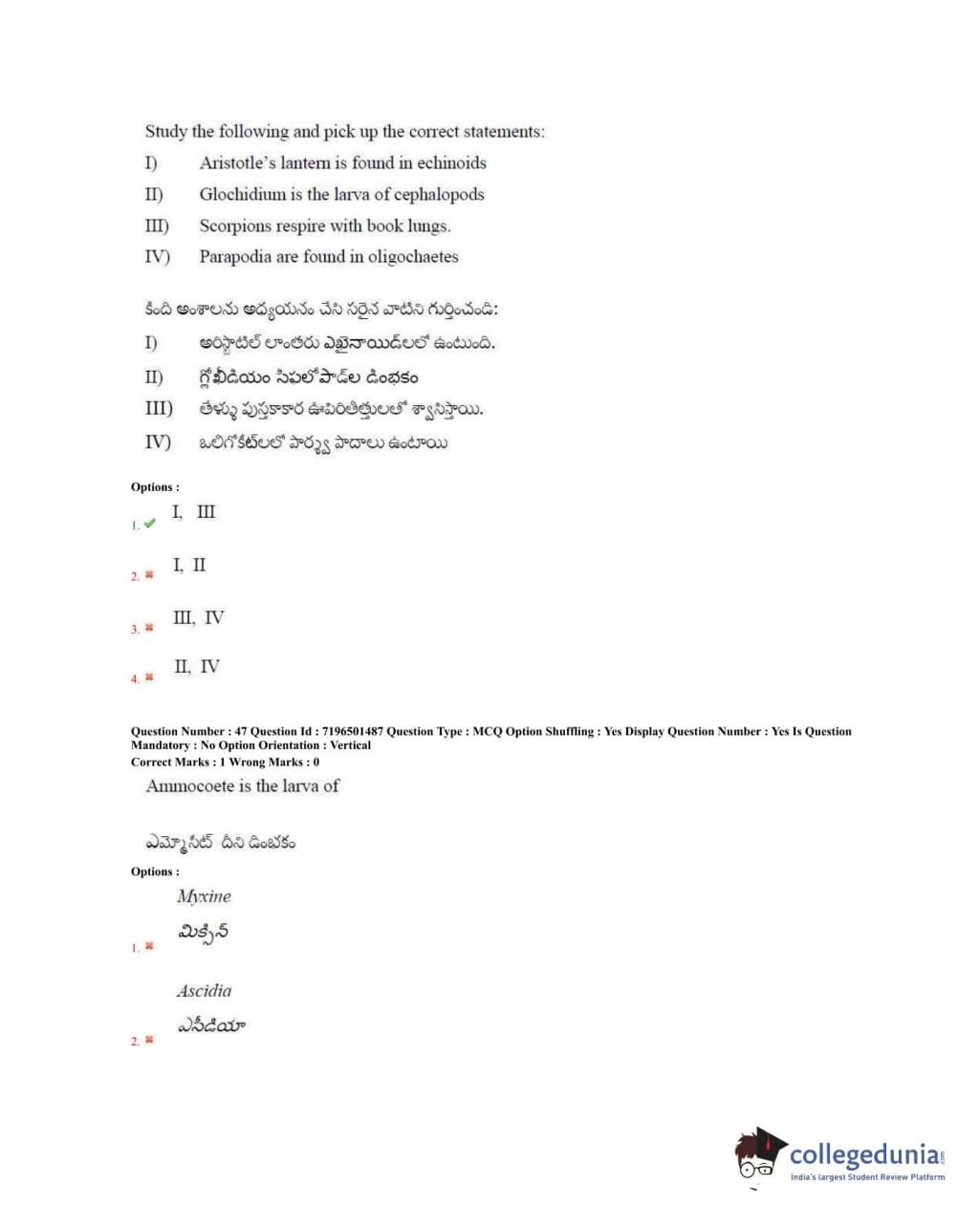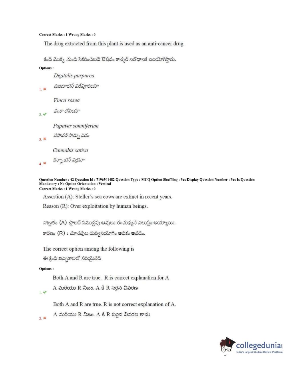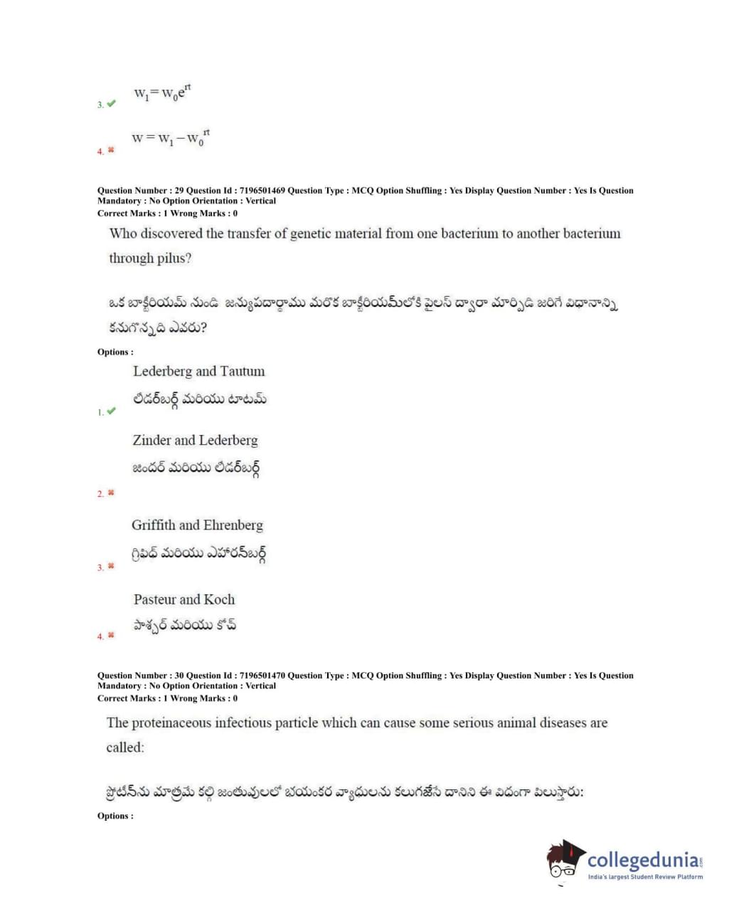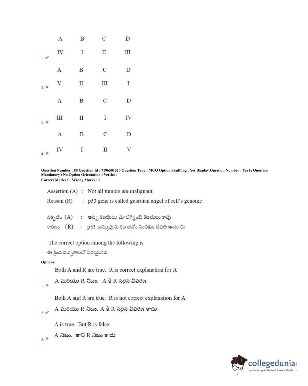 TS EAMCET 2020 Agriculture and Medical Question Paper with Answer Key PDFs Forenoon Session