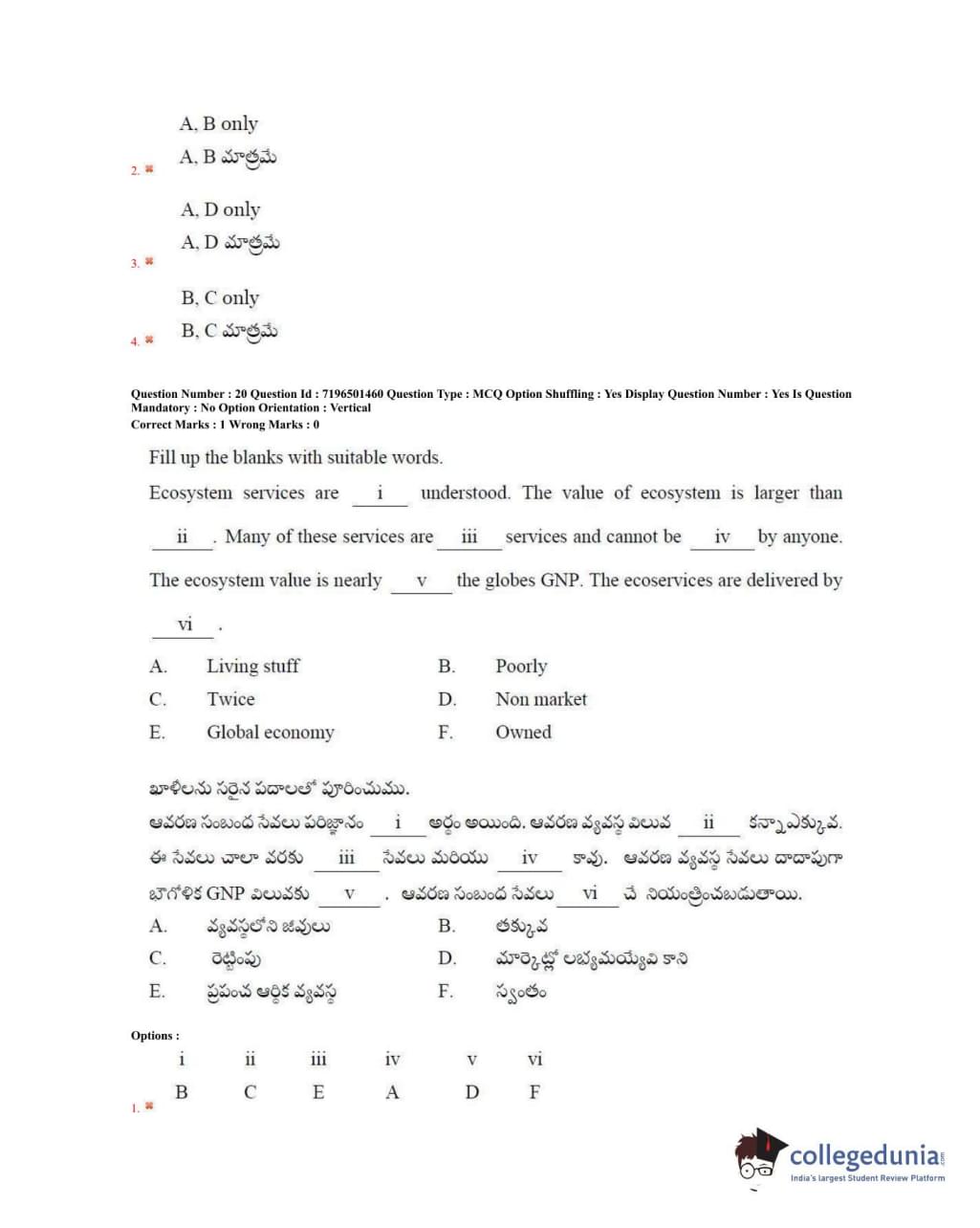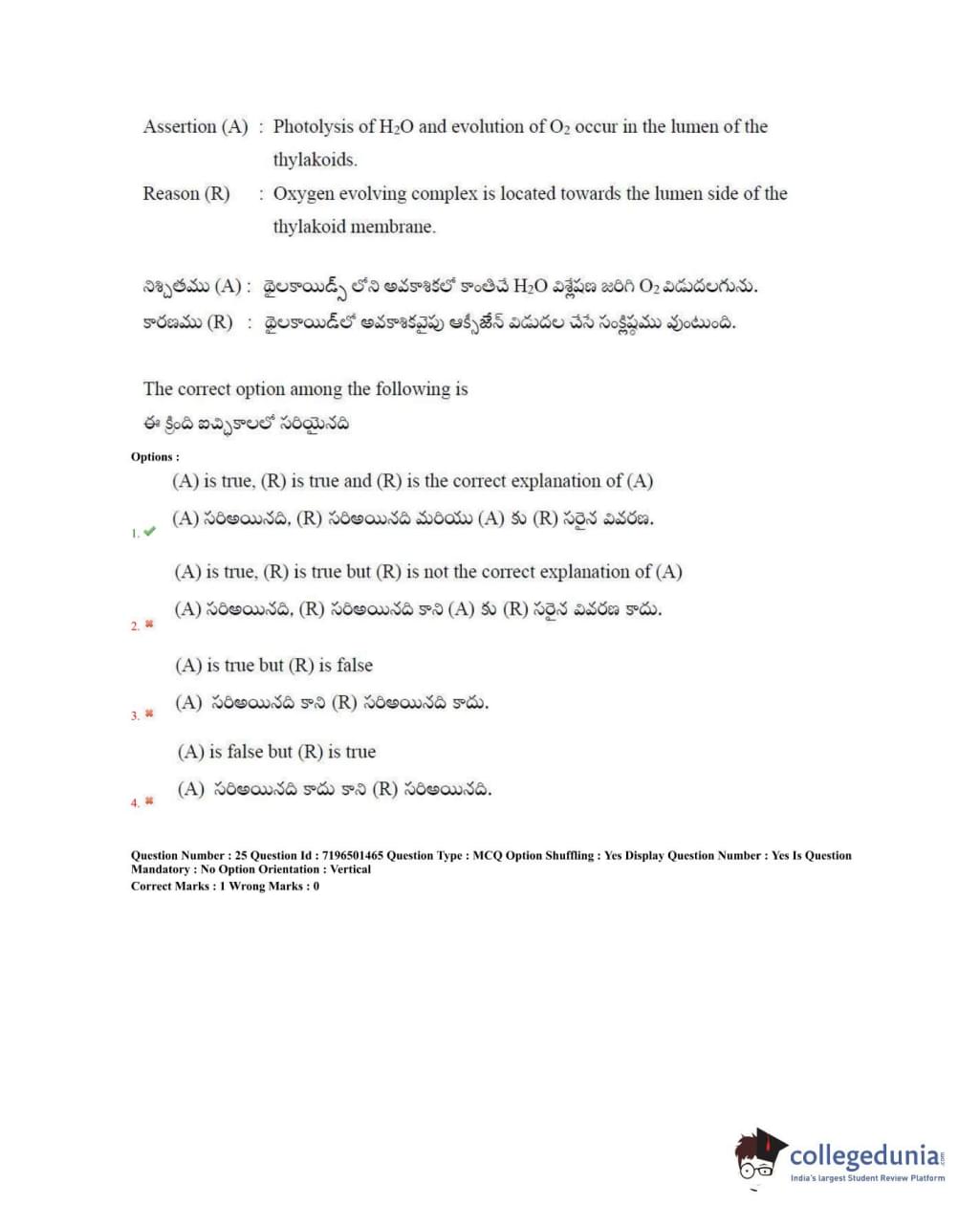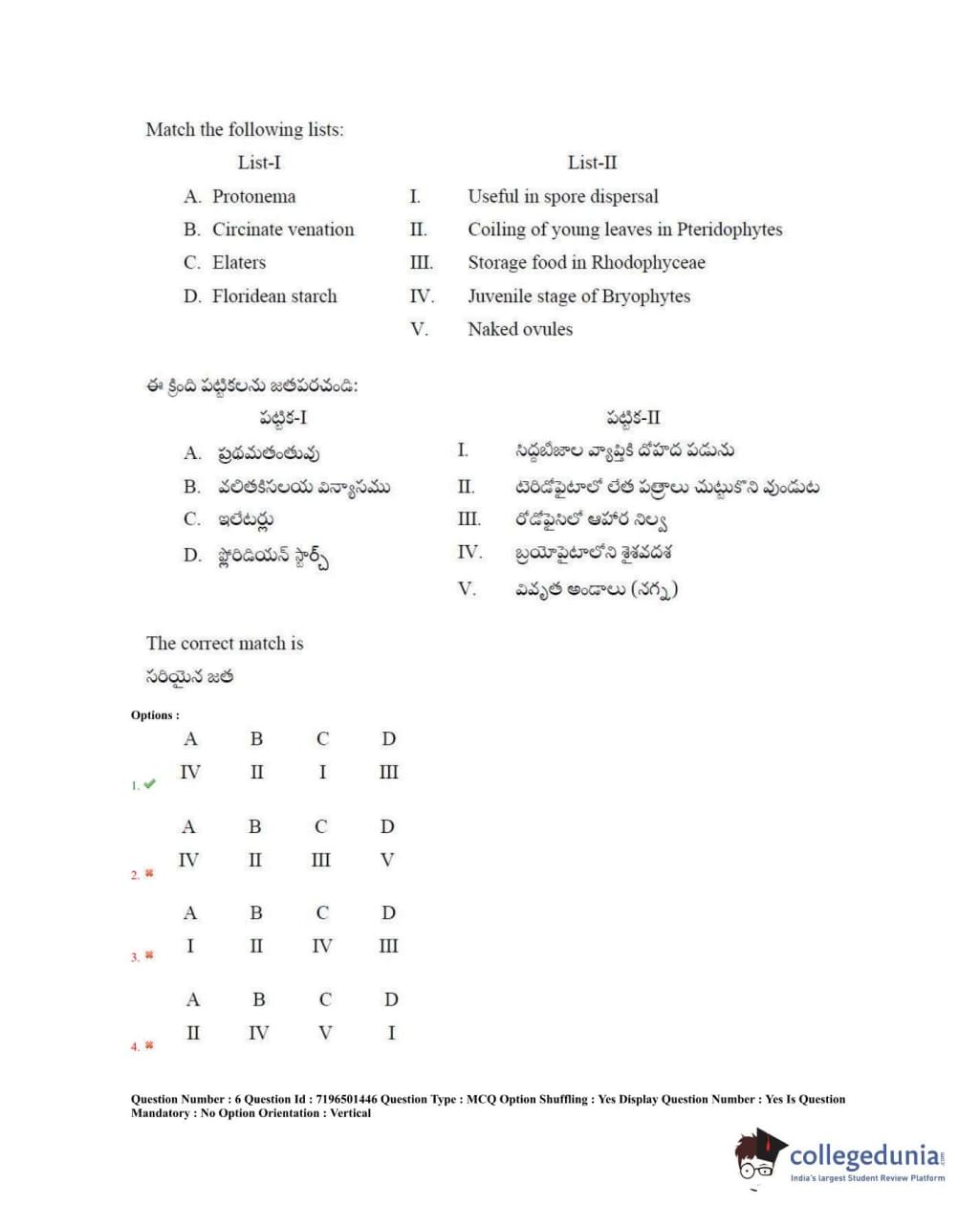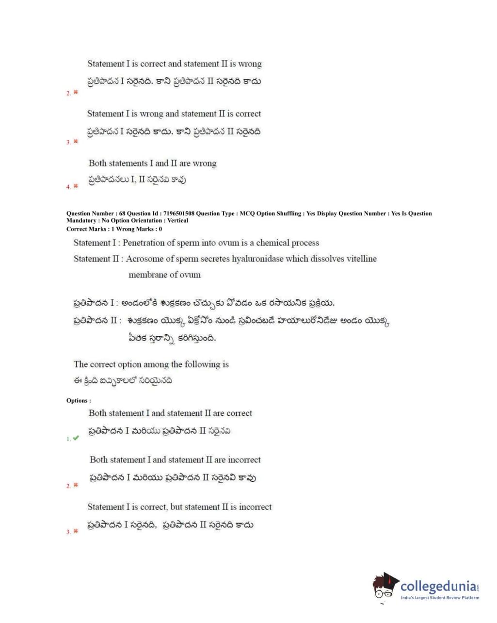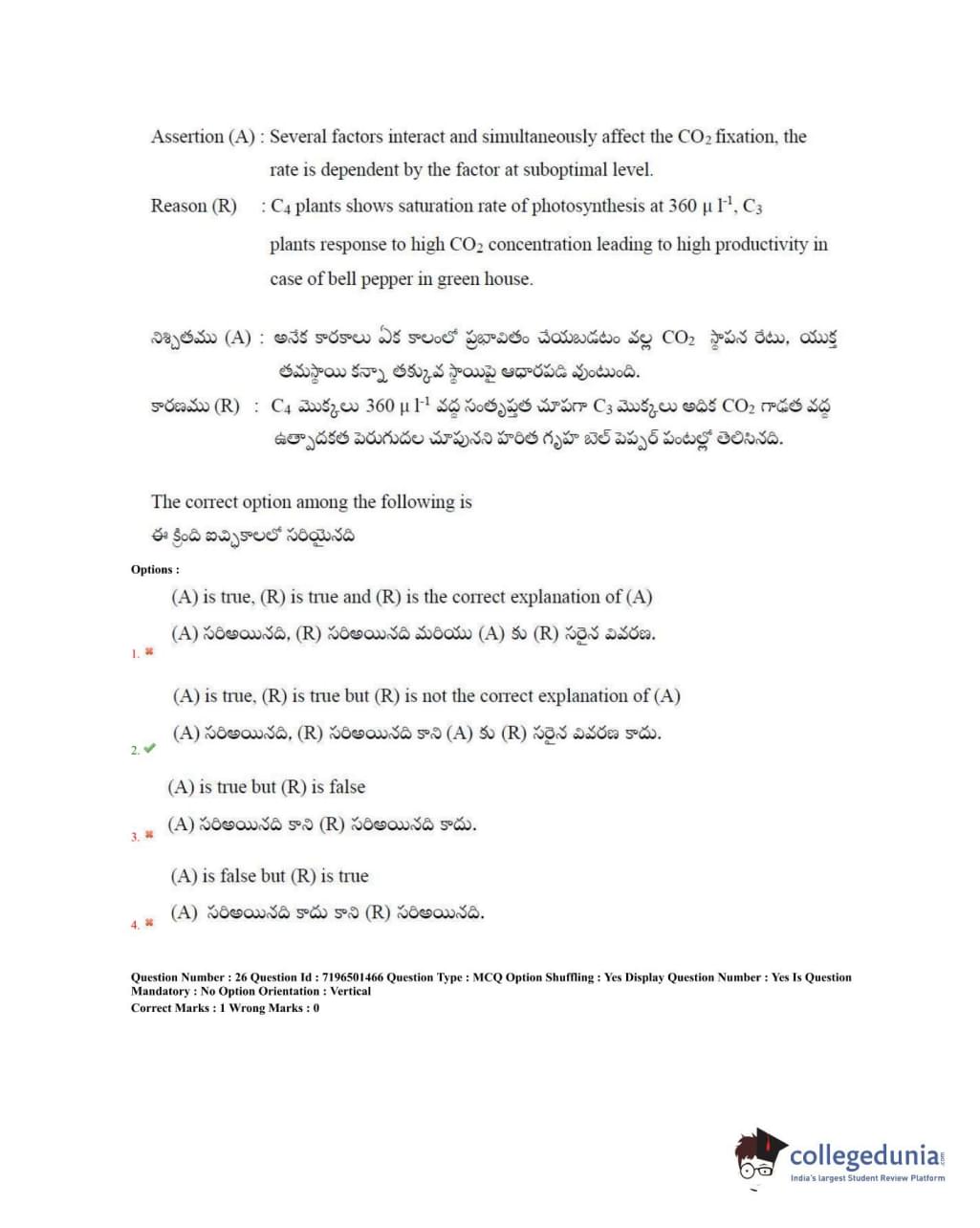 TS EAMCET 2020 Agriculture and Medical Question Paper with Answer Key PDFs Forenoon Session