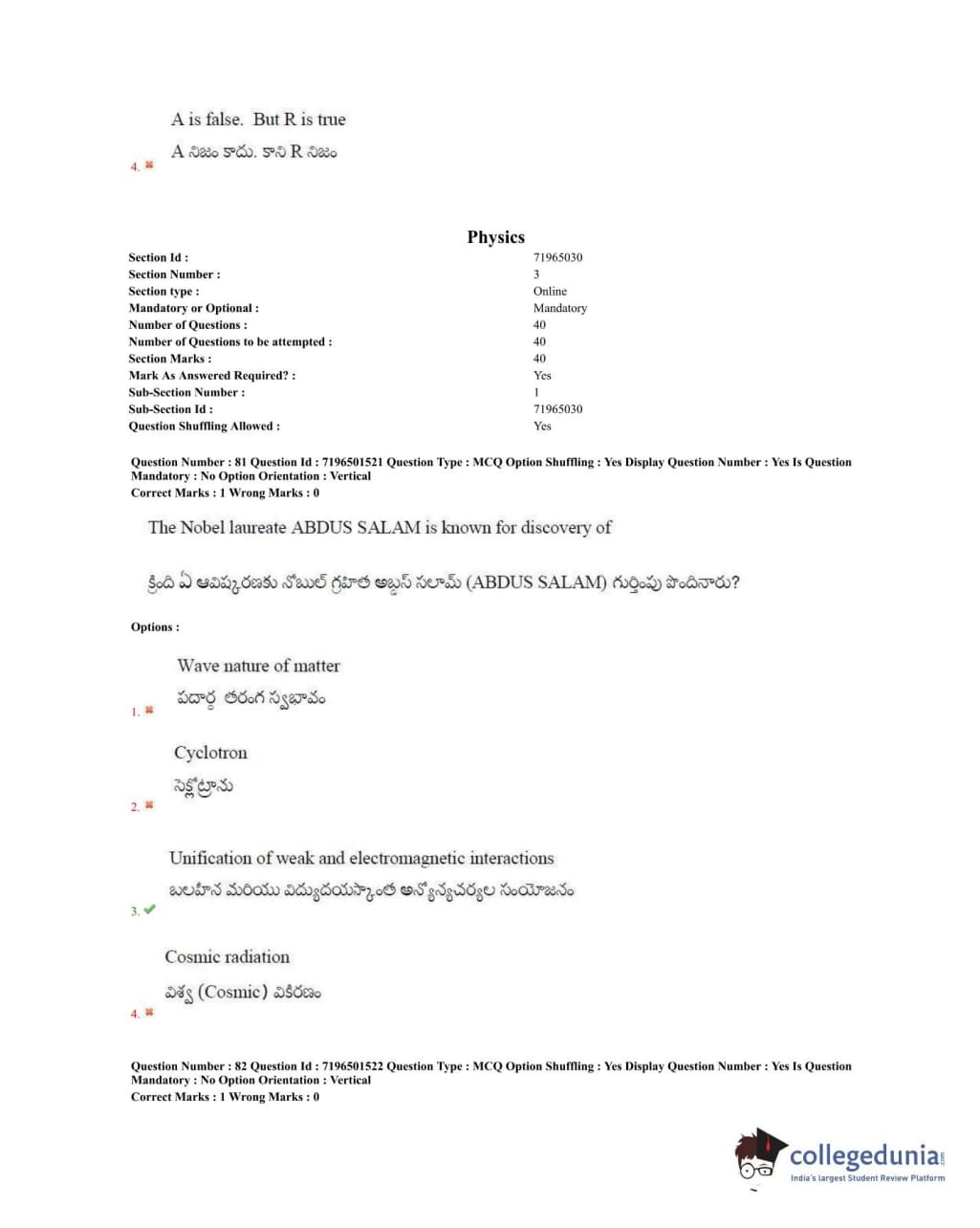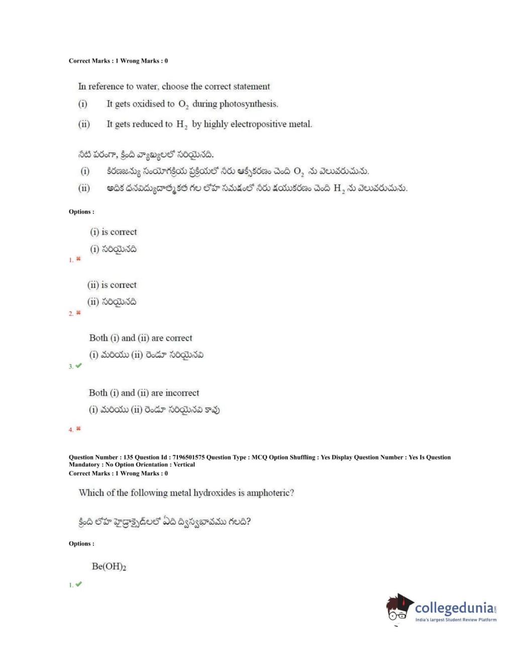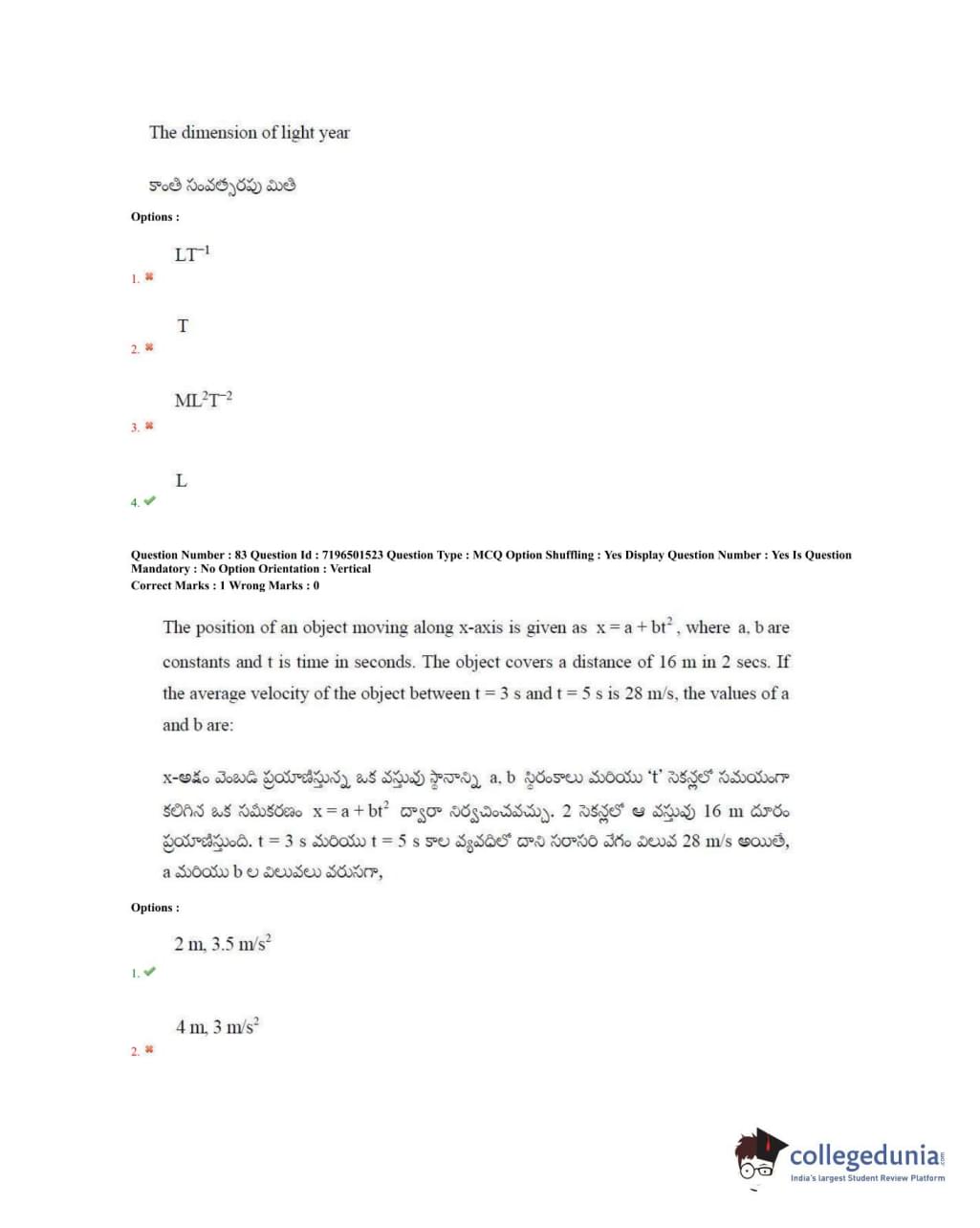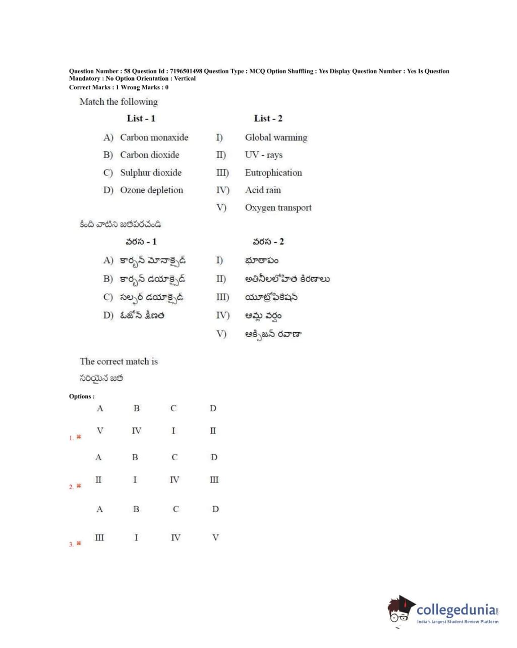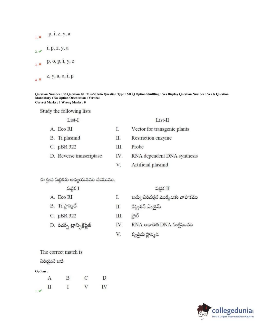 TS EAMCET 2020 Agriculture and Medical Question Paper with Answer Key PDFs Forenoon Session