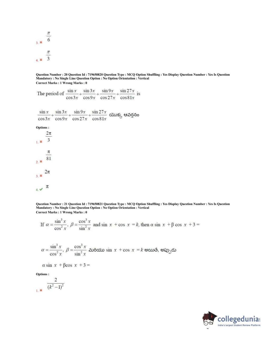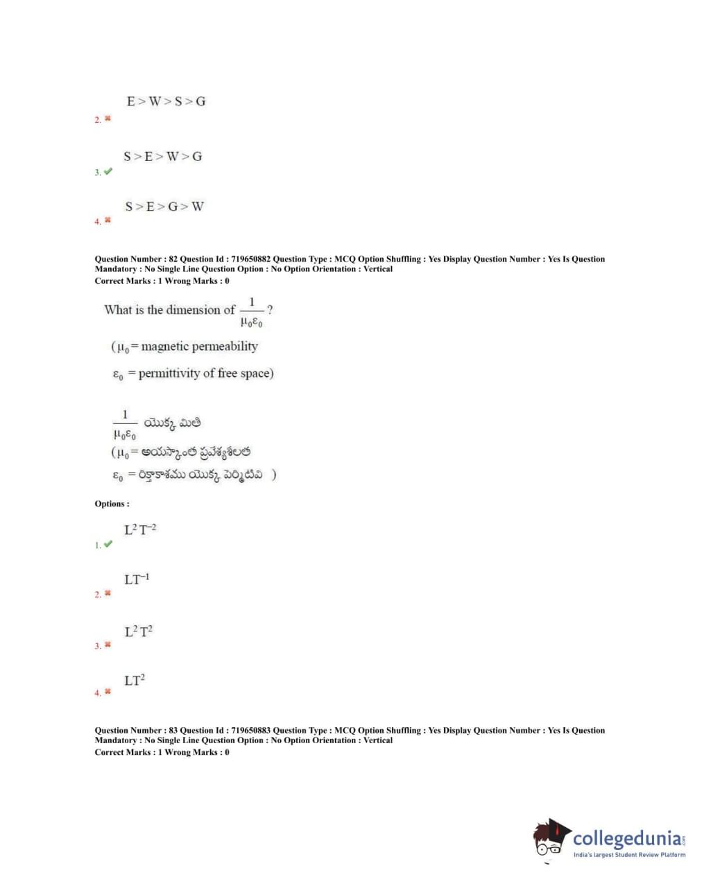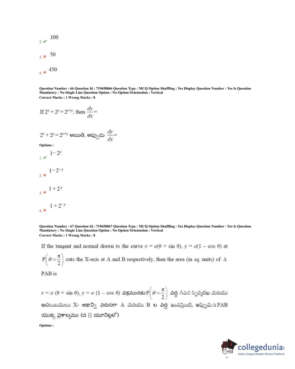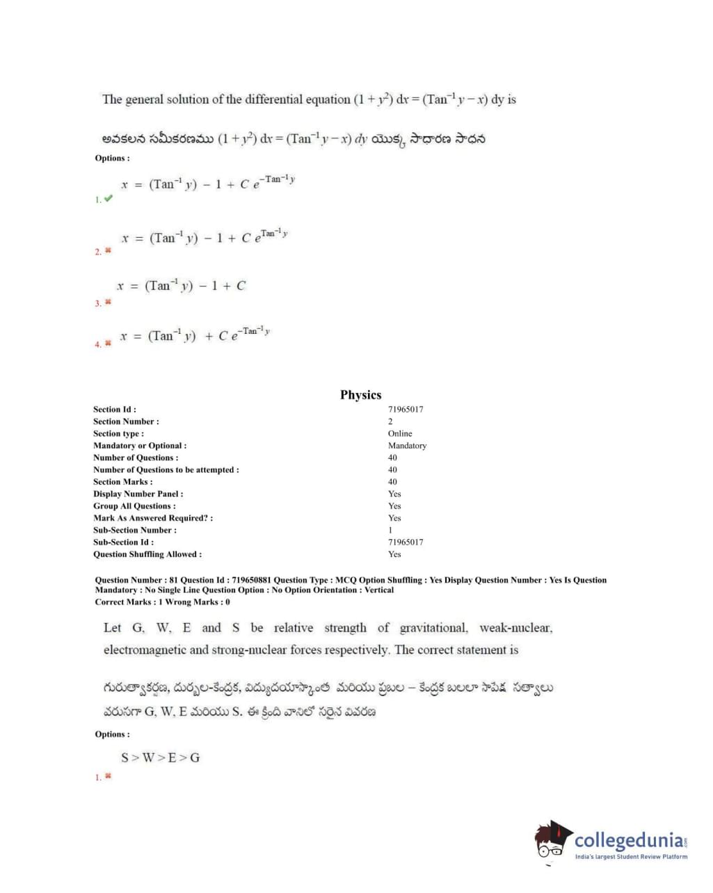 TS EAMCET 2020 Engineering Question Paper with Answer Key PDFs Forenoon Session