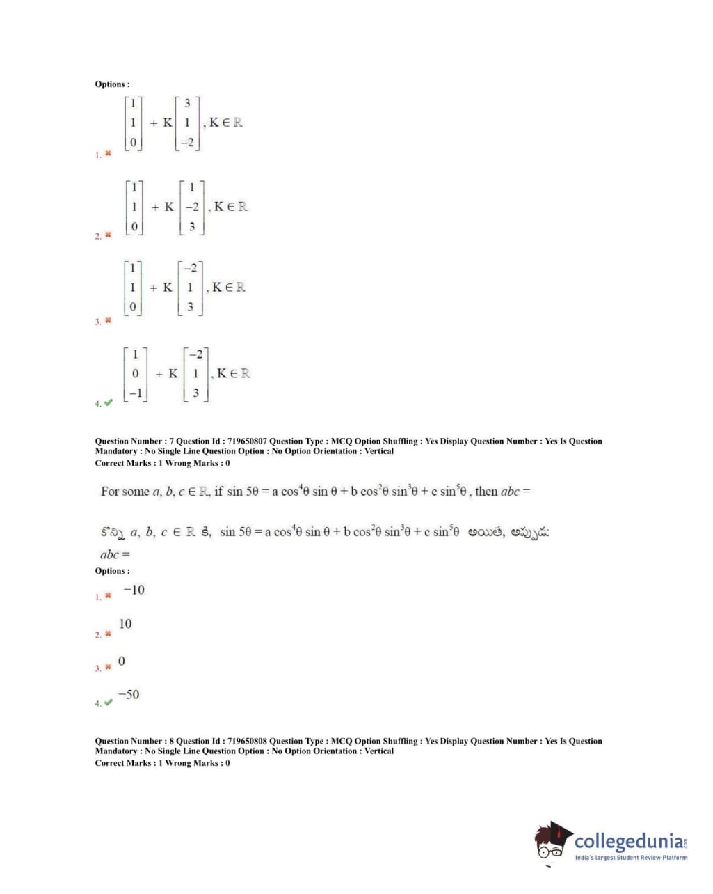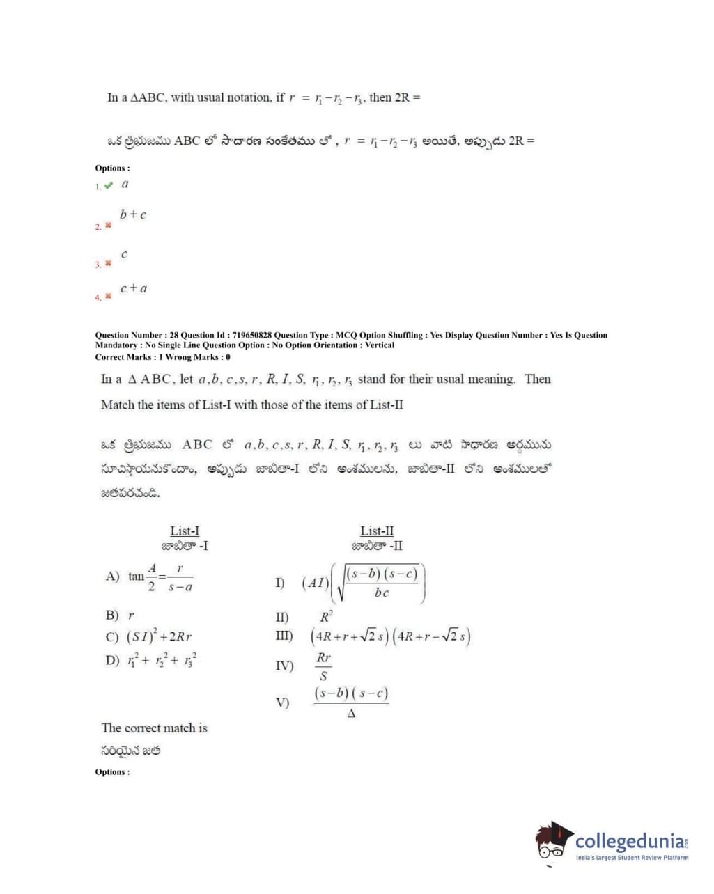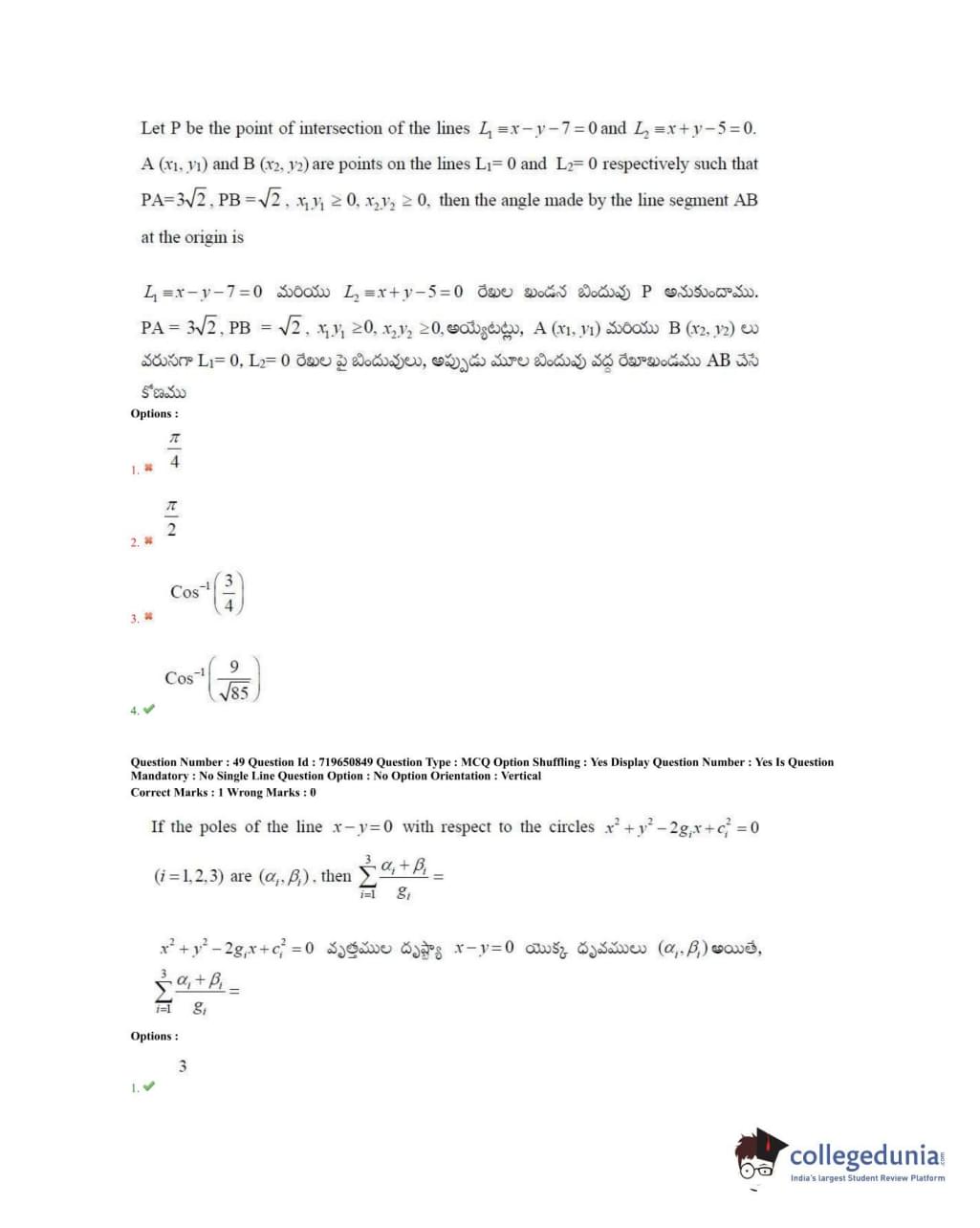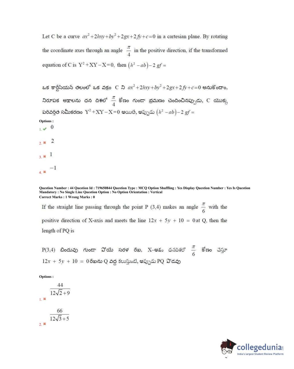 TS EAMCET 2020 Engineering Question Paper with Answer Key PDFs Forenoon Session