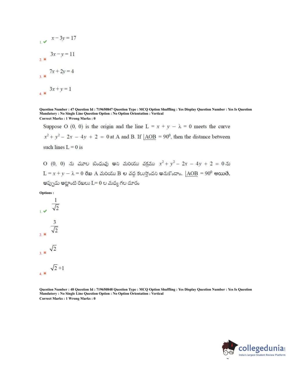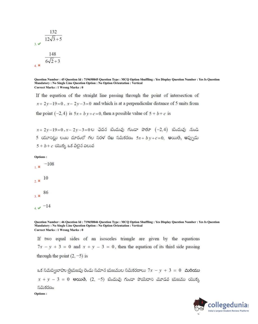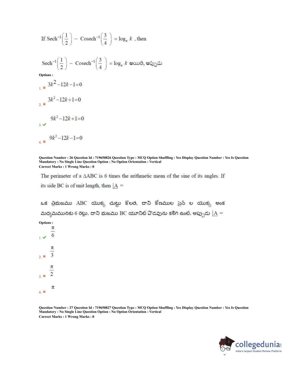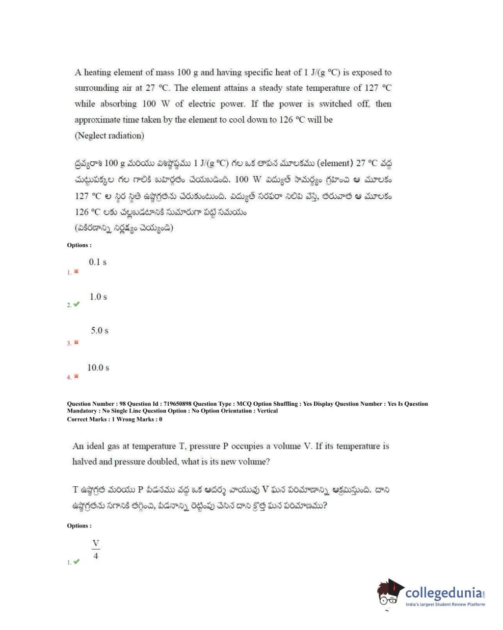 TS EAMCET 2020 Engineering Question Paper with Answer Key PDFs Forenoon Session