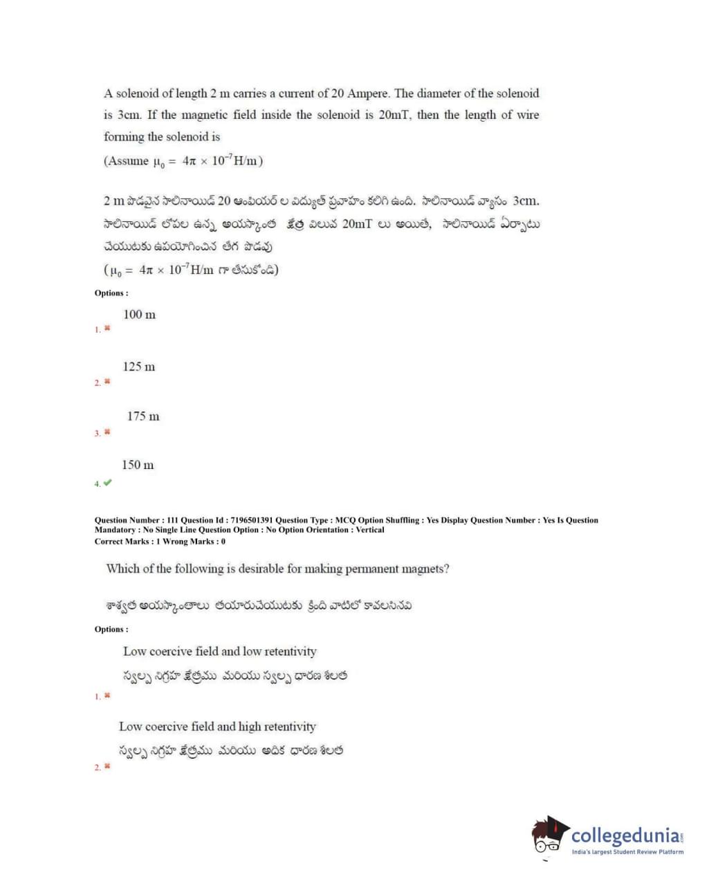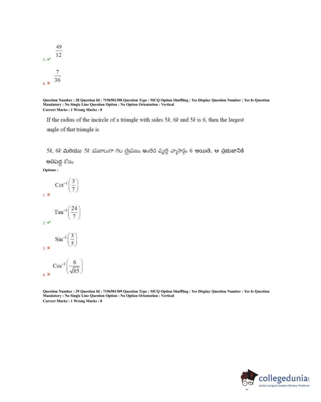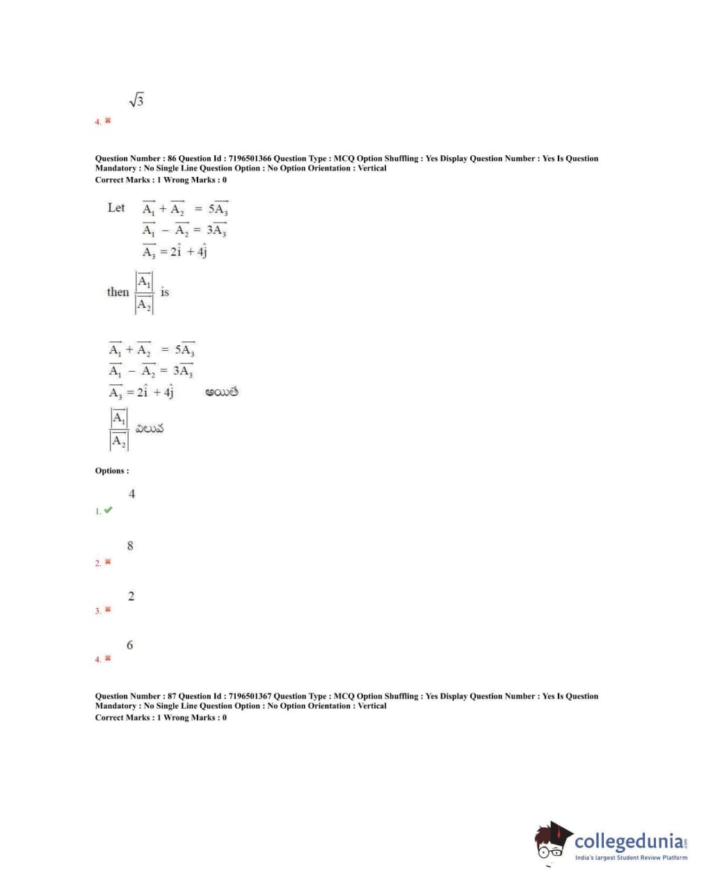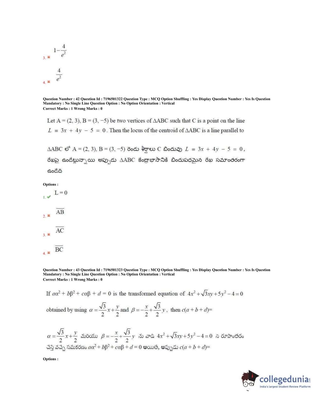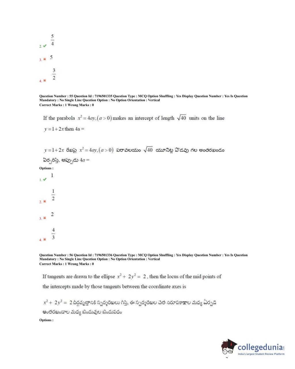 TS EAMCET 2020 Engineering Question Paper with Answer Key PDFs Afternoon Session