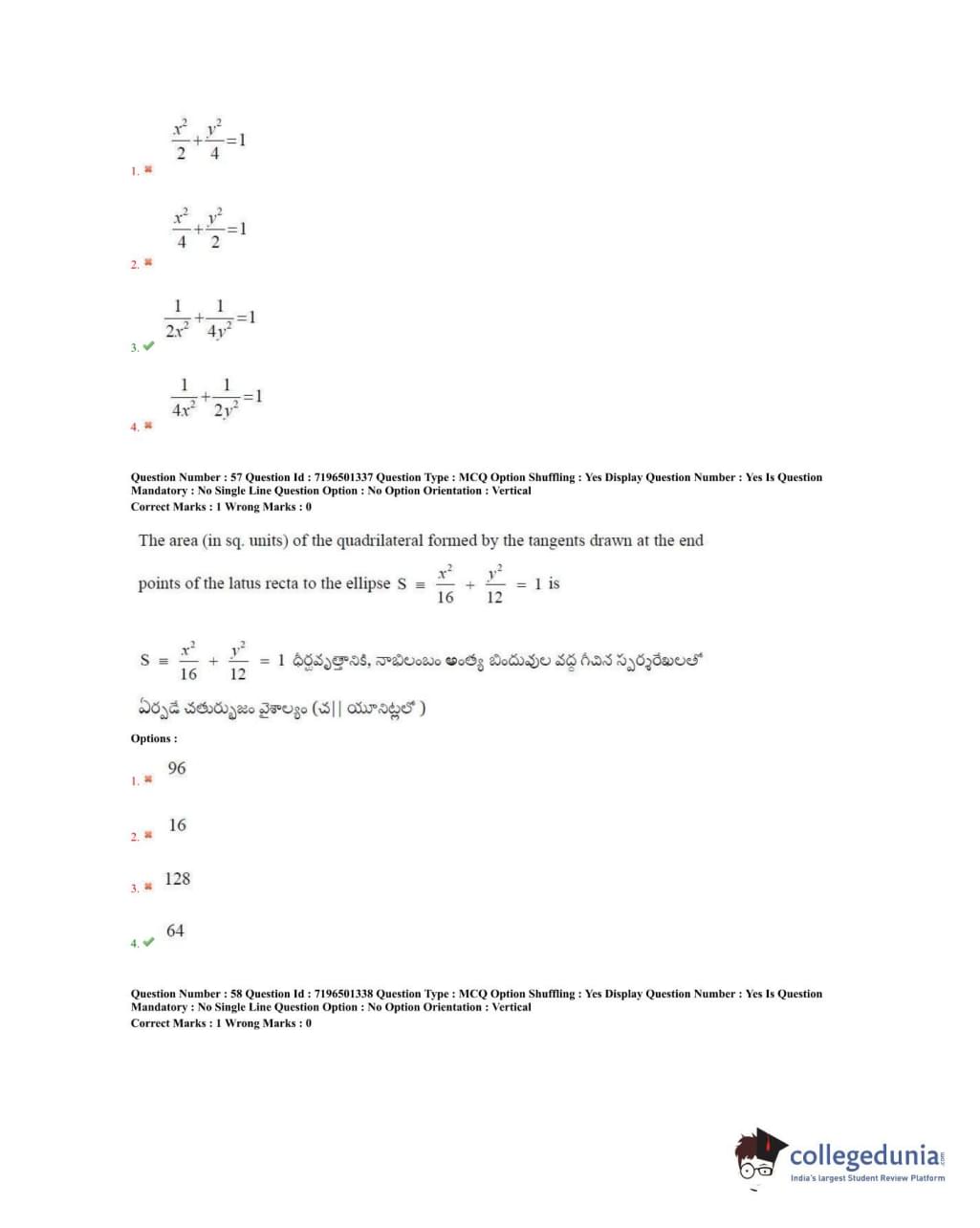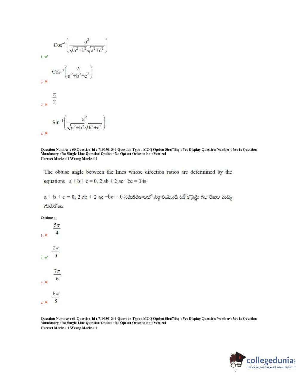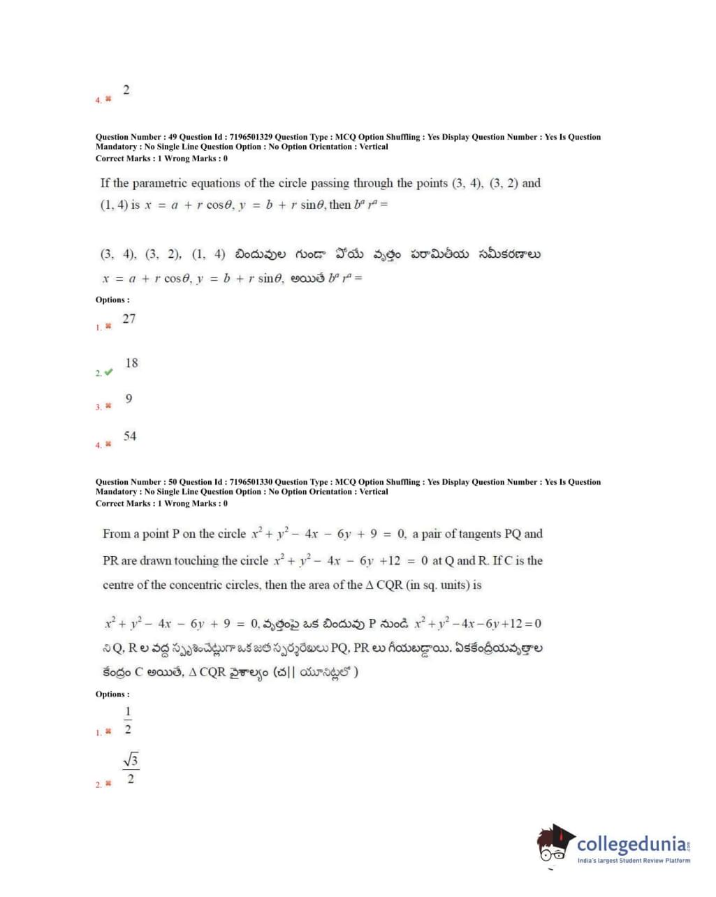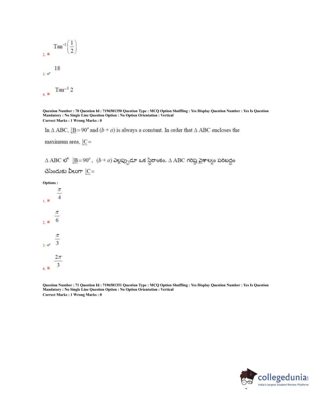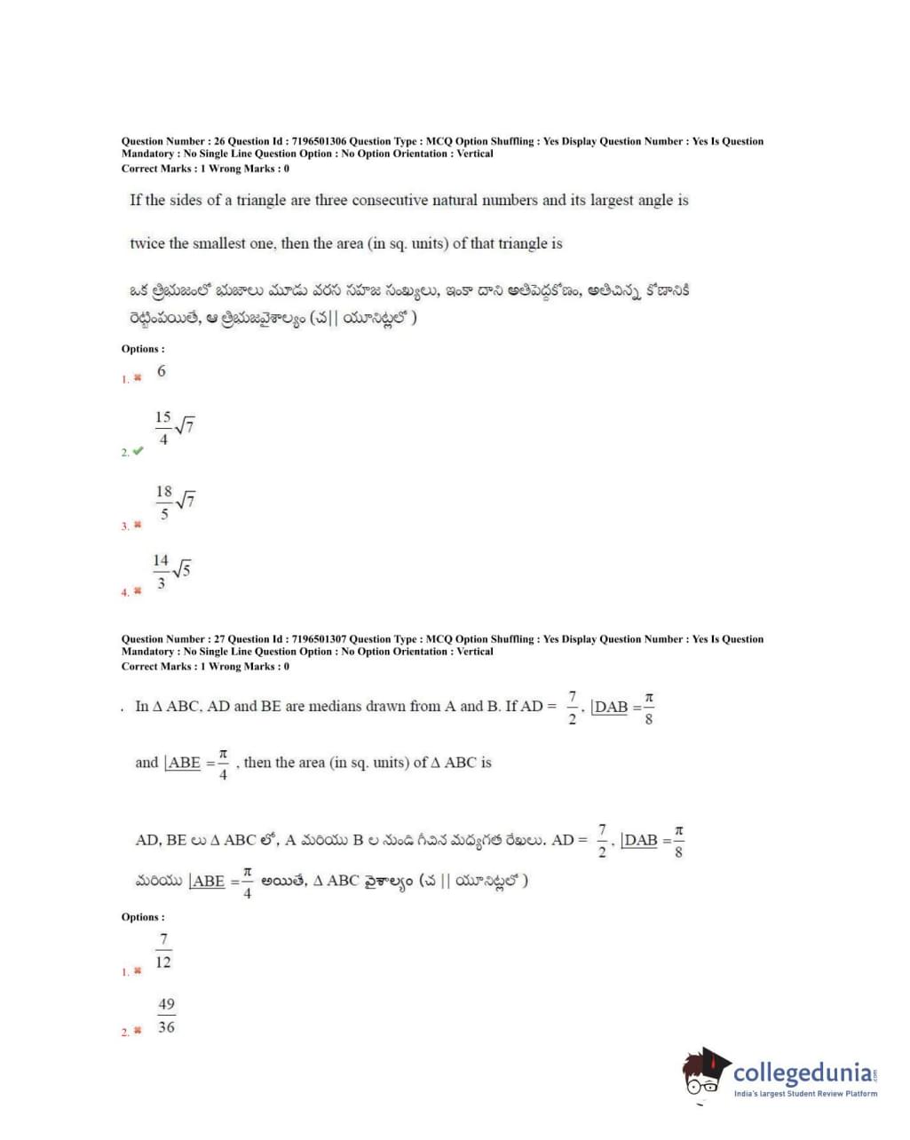 TS EAMCET 2020 Engineering Question Paper with Answer Key PDFs Afternoon Session