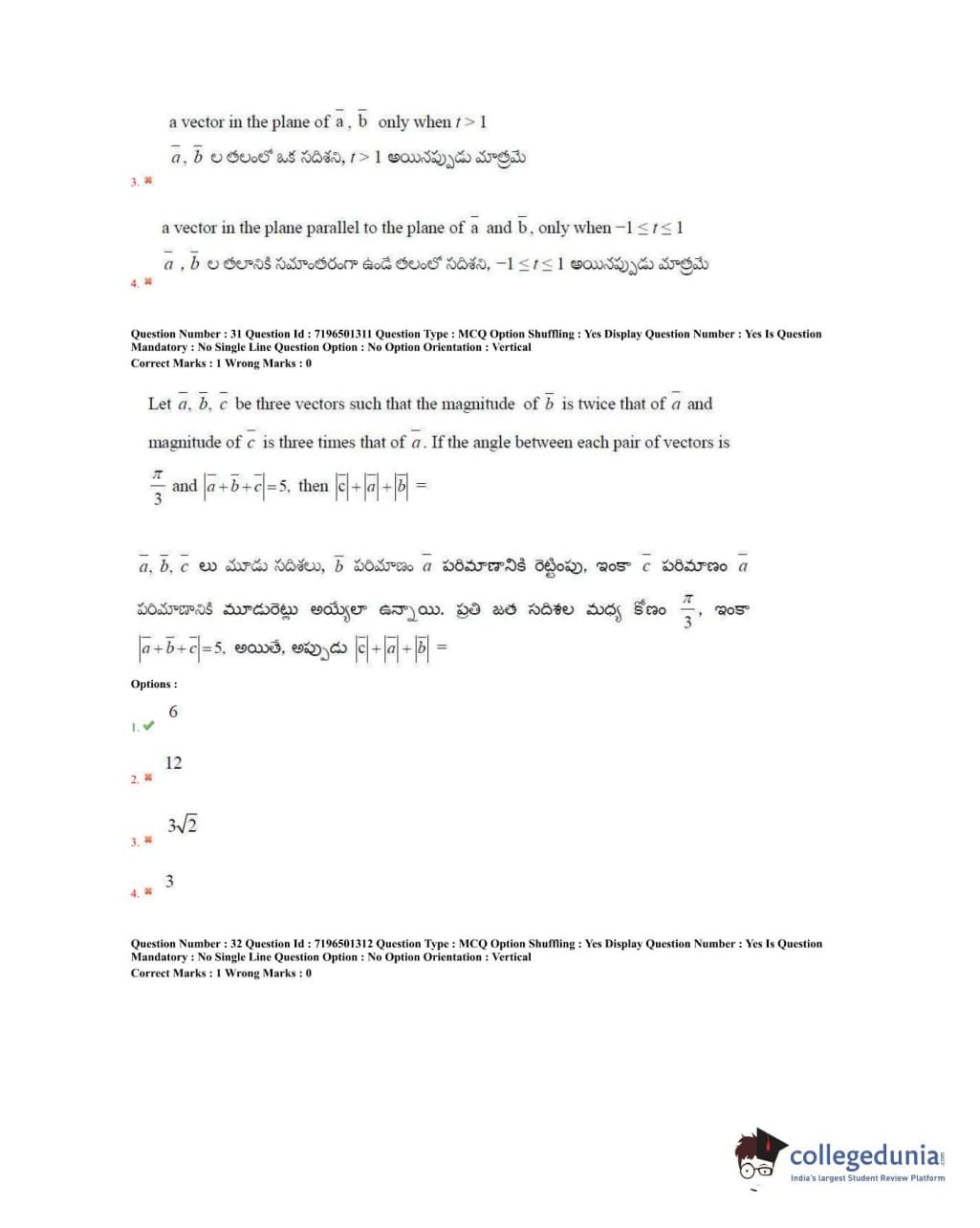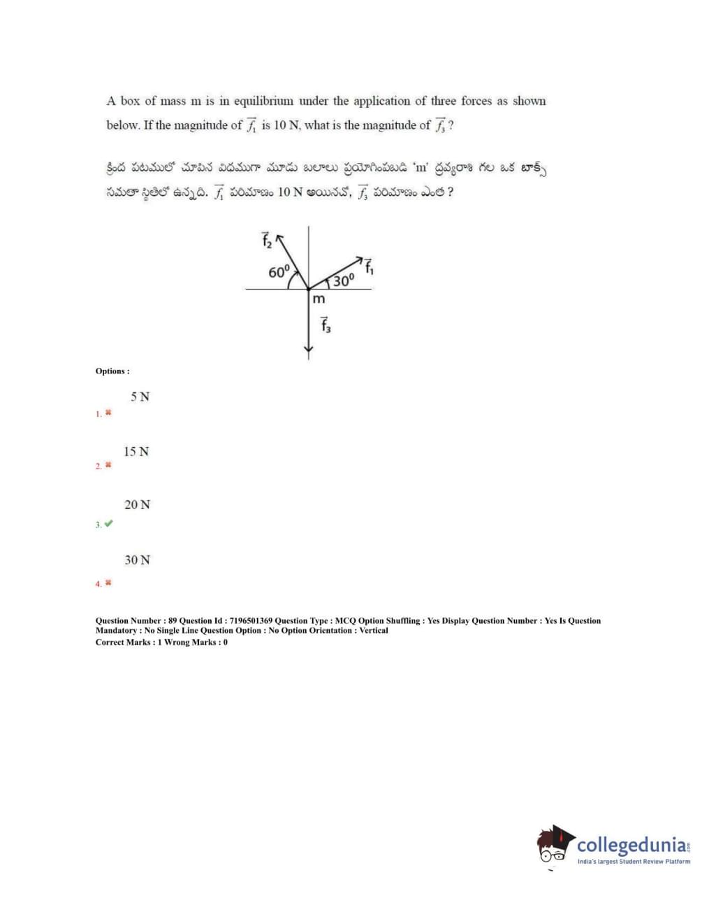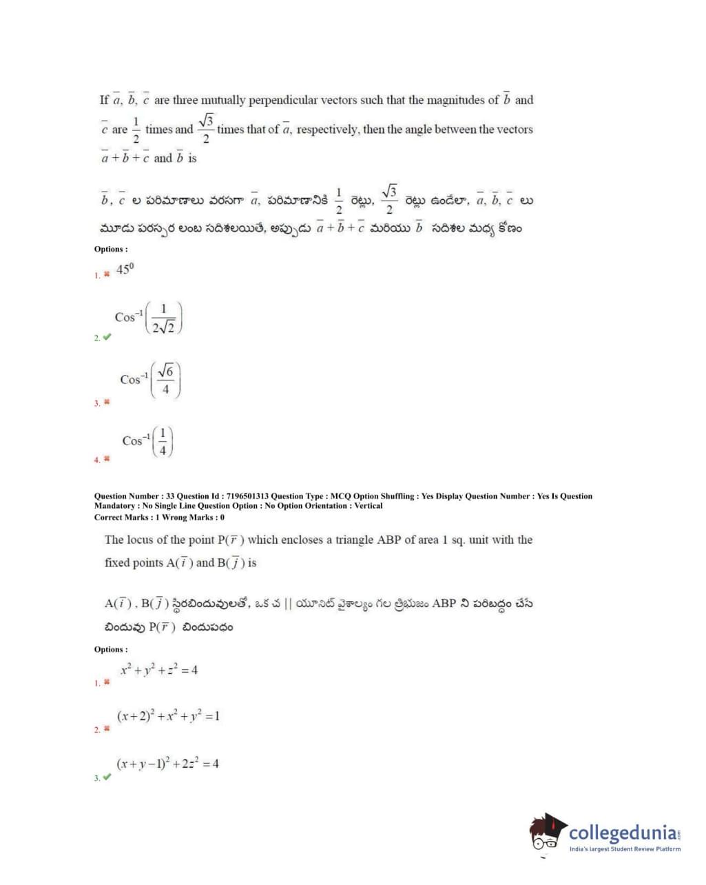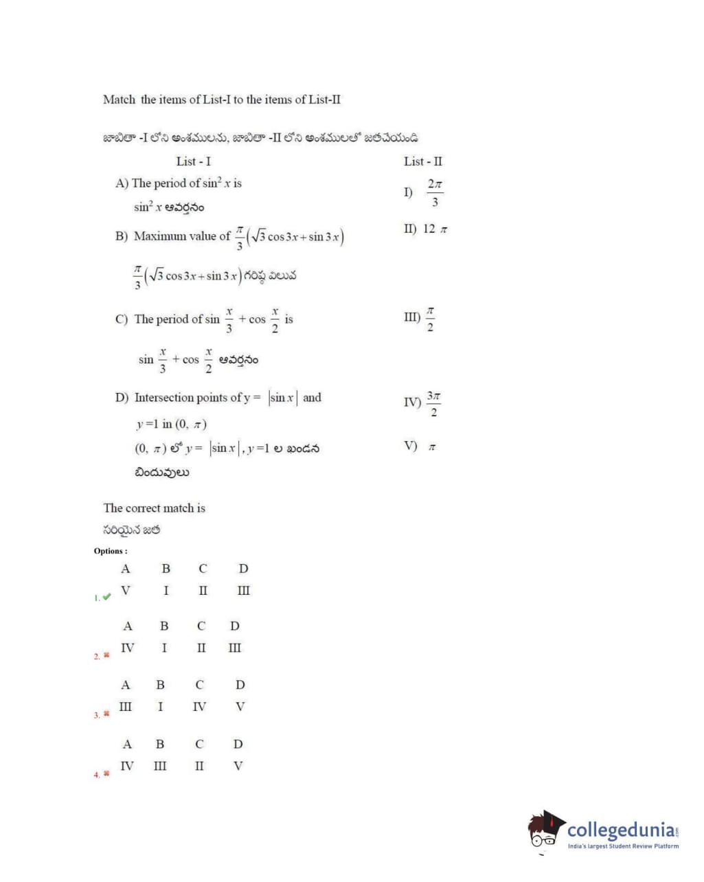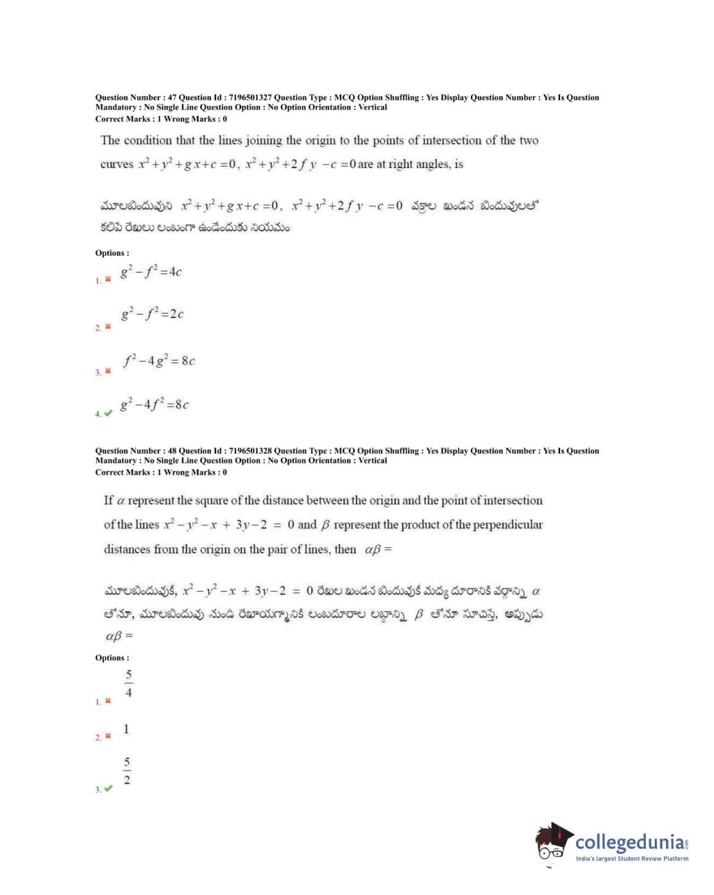 TS EAMCET 2020 Engineering Question Paper with Answer Key PDFs Afternoon Session