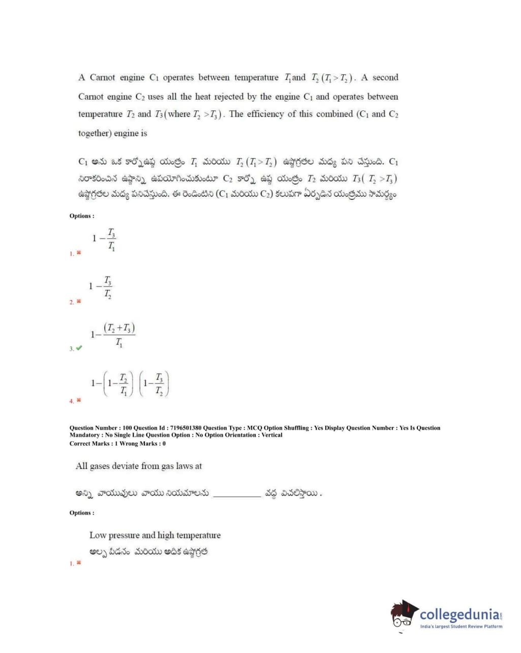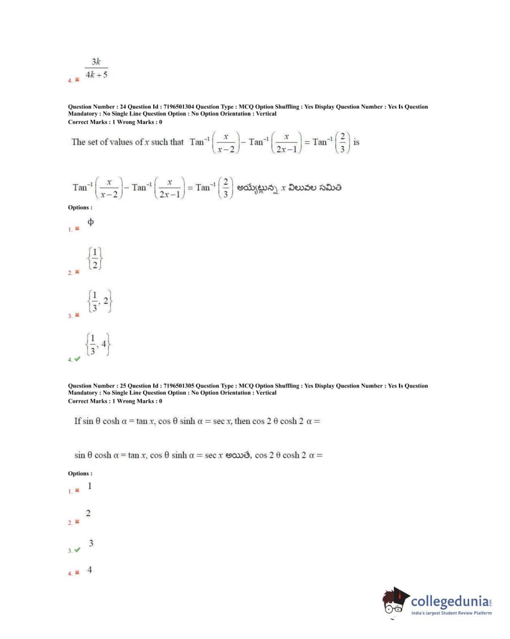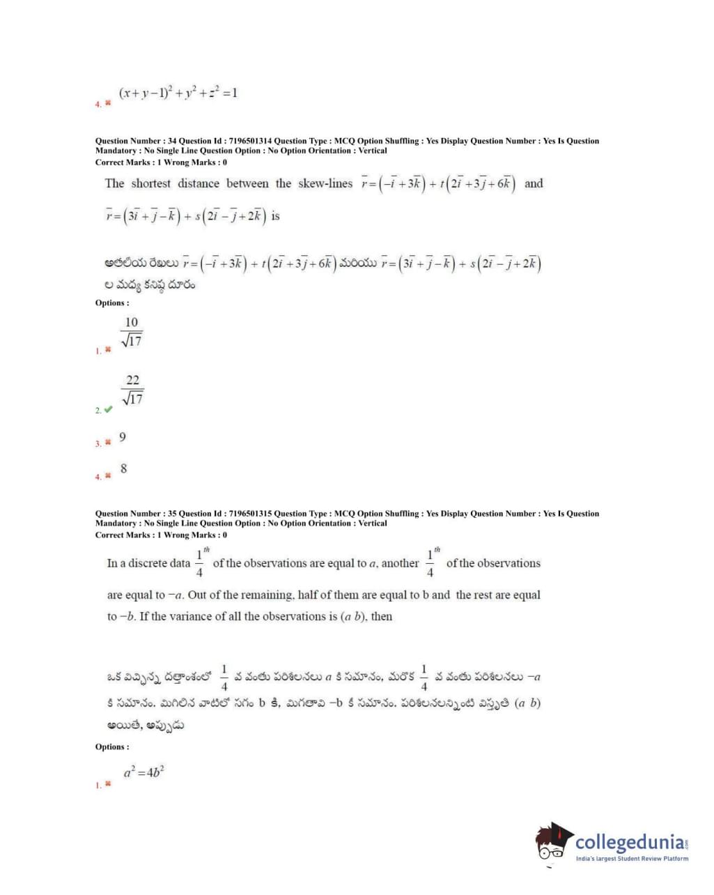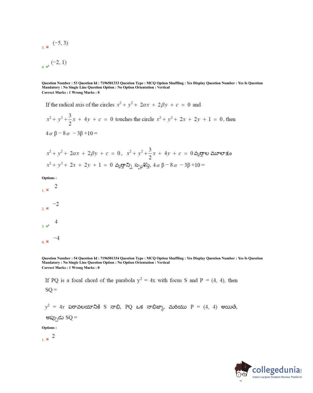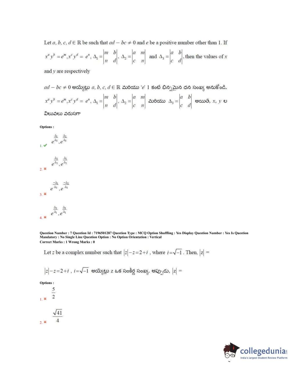 TS EAMCET 2020 Engineering Question Paper with Answer Key PDFs Afternoon Session