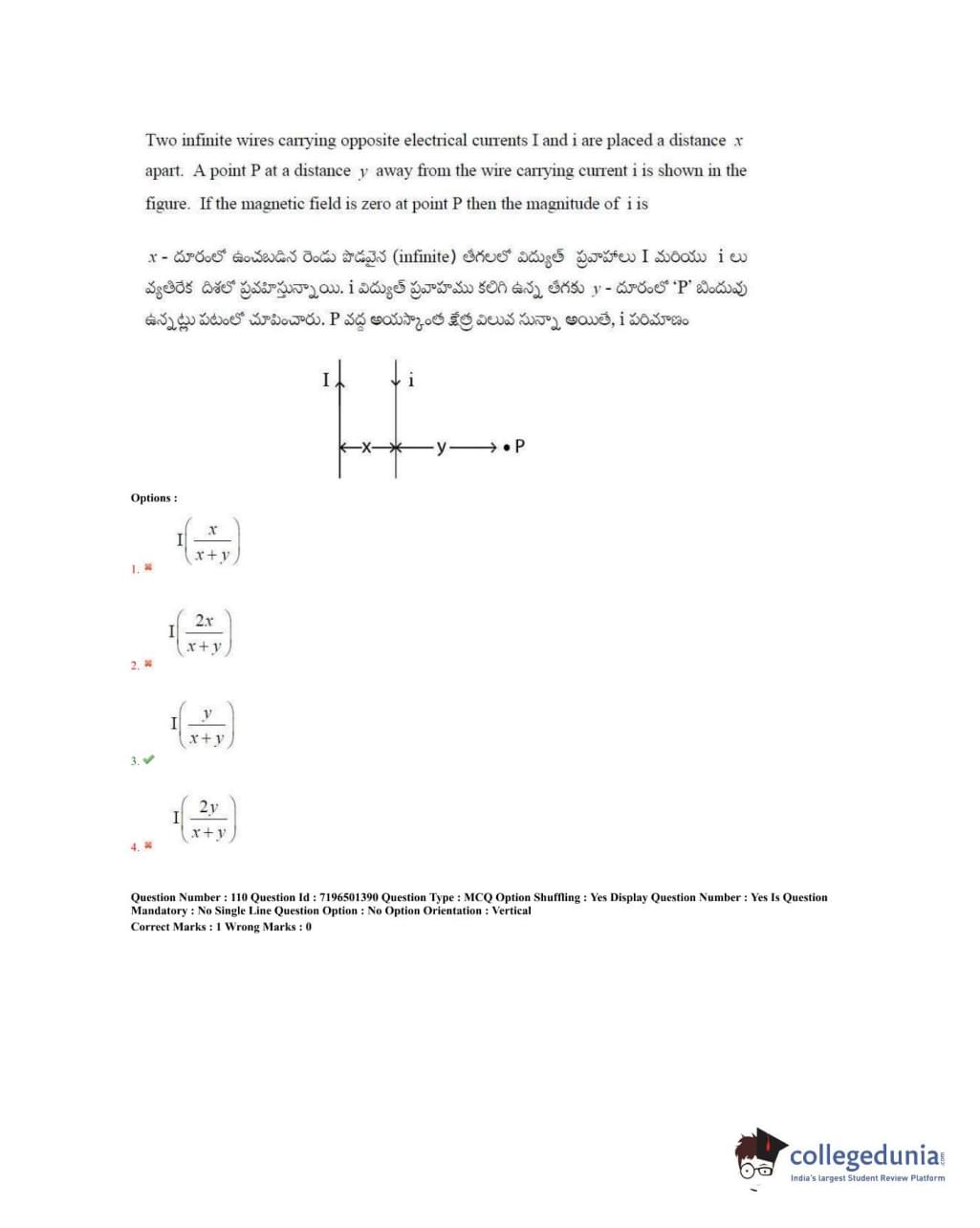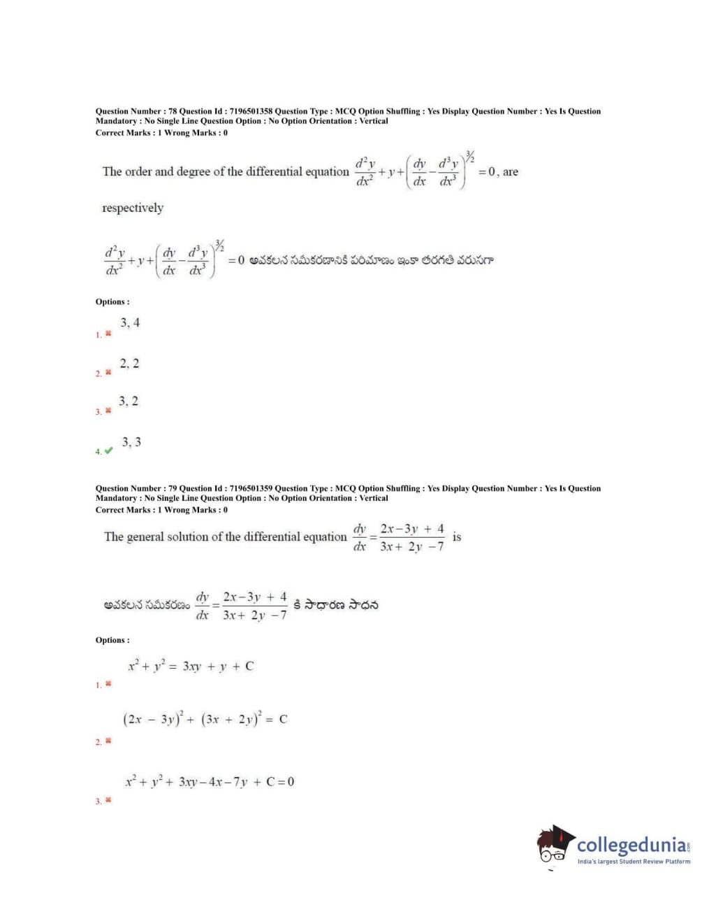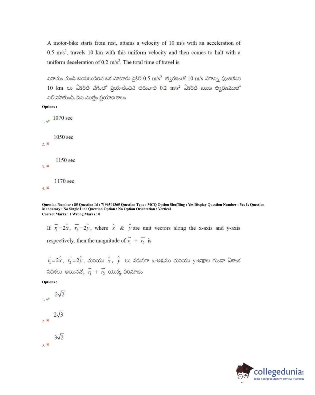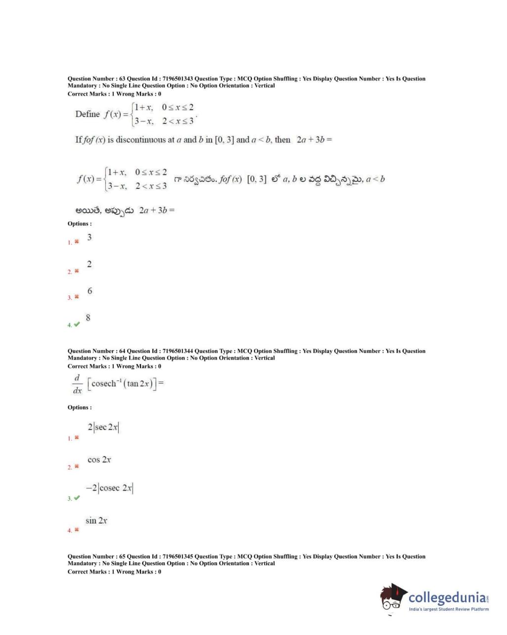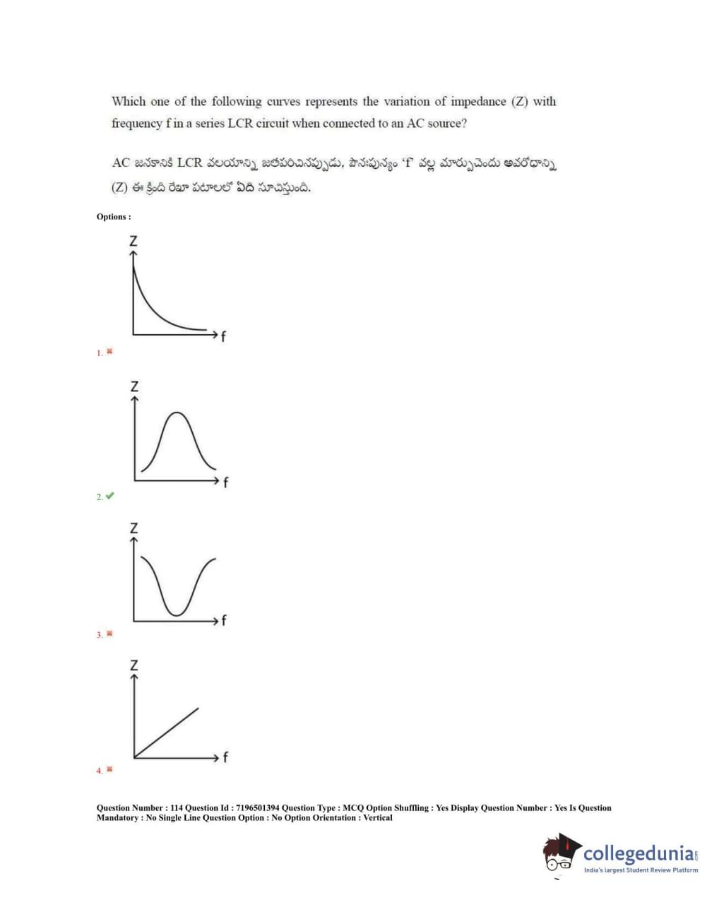 TS EAMCET 2020 Engineering Question Paper with Answer Key PDFs Afternoon Session