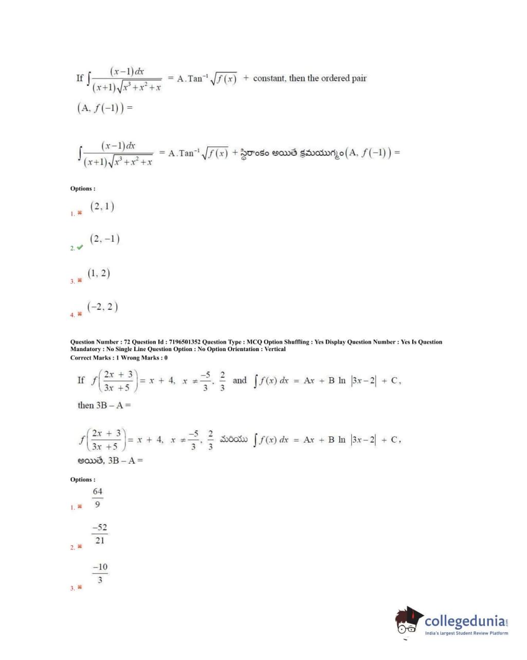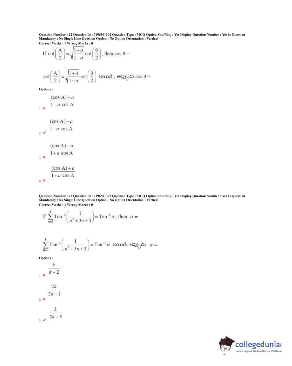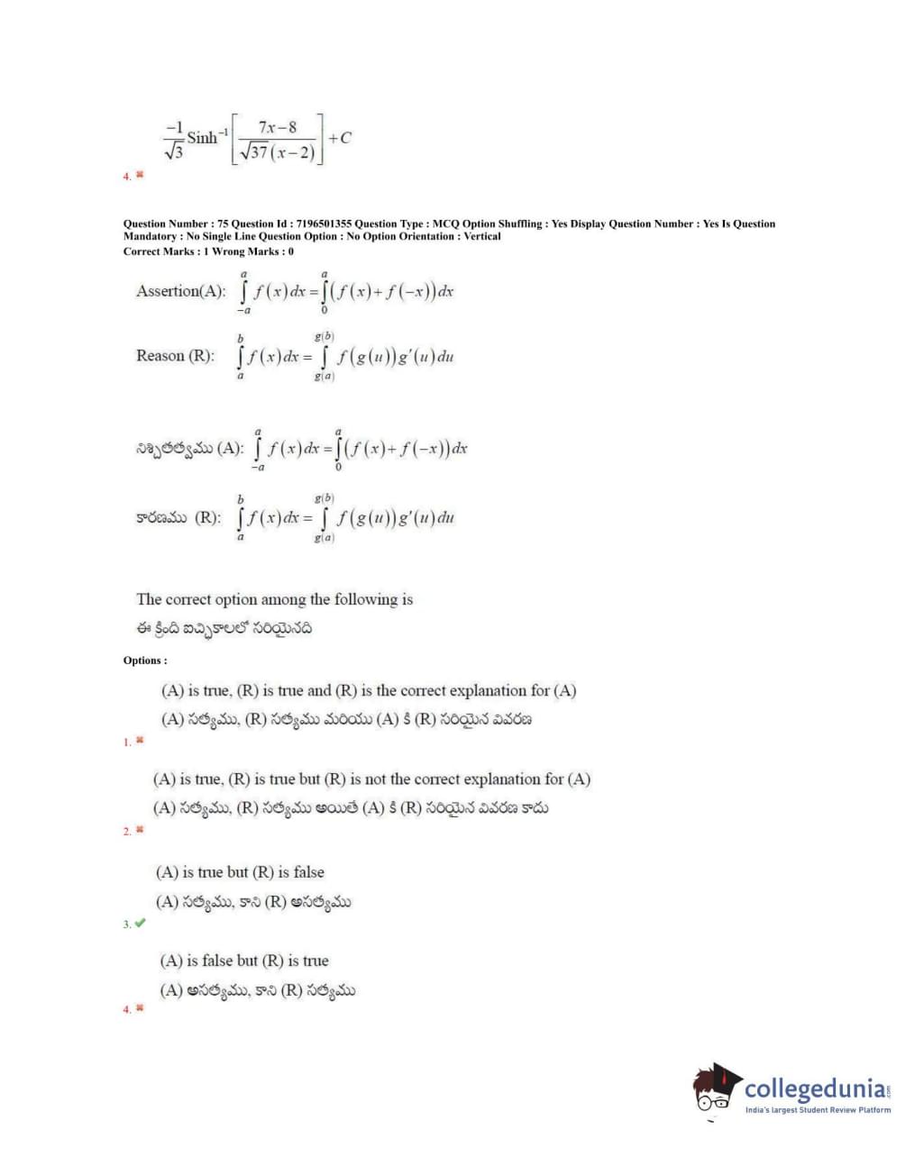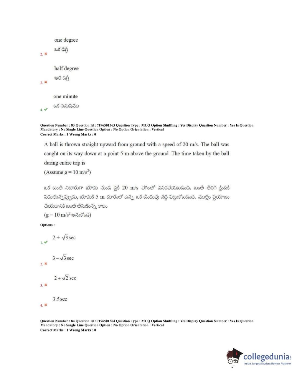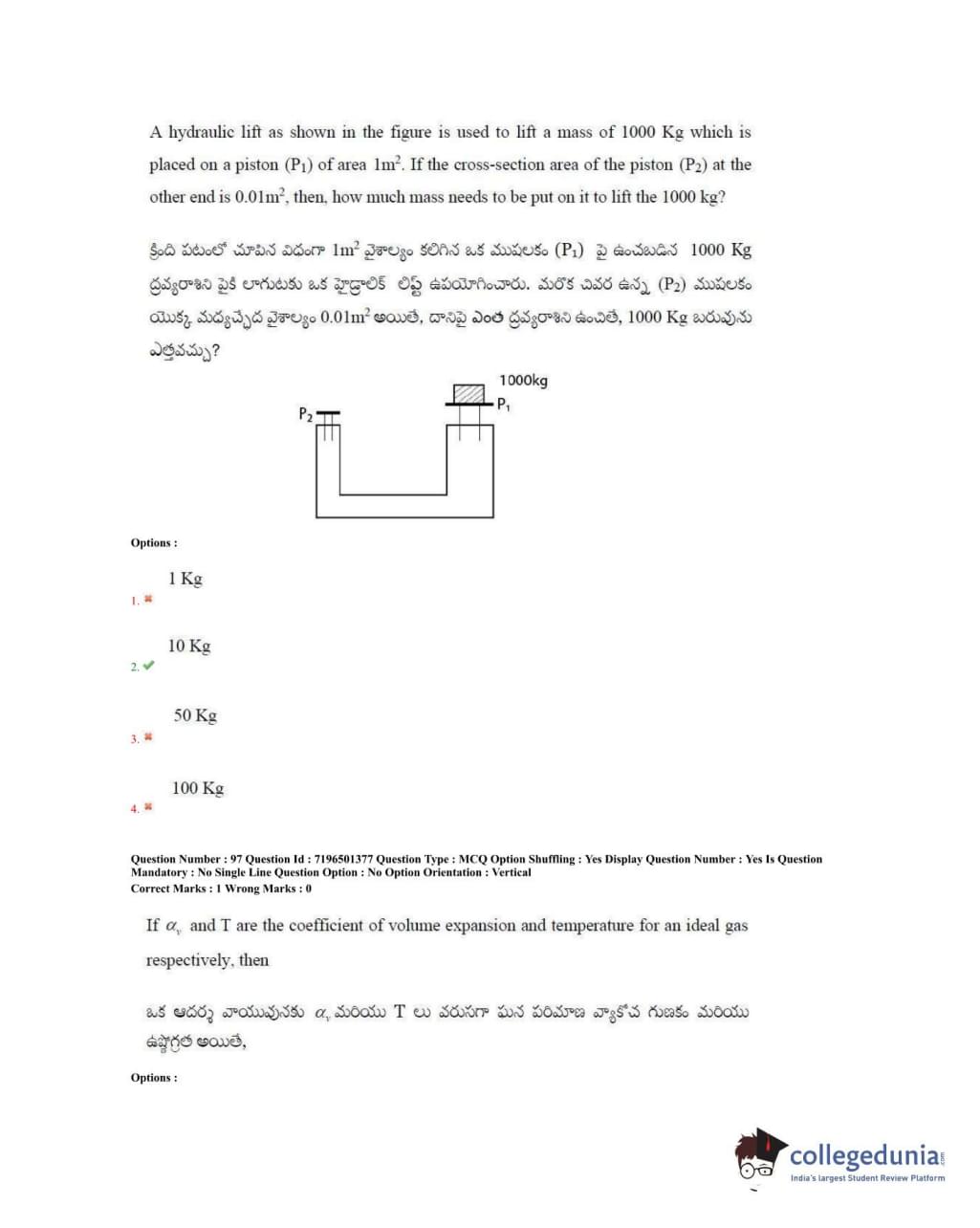 TS EAMCET 2020 Engineering Question Paper with Answer Key PDFs Afternoon Session