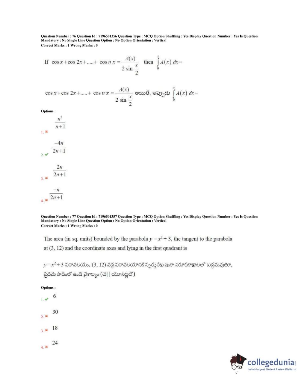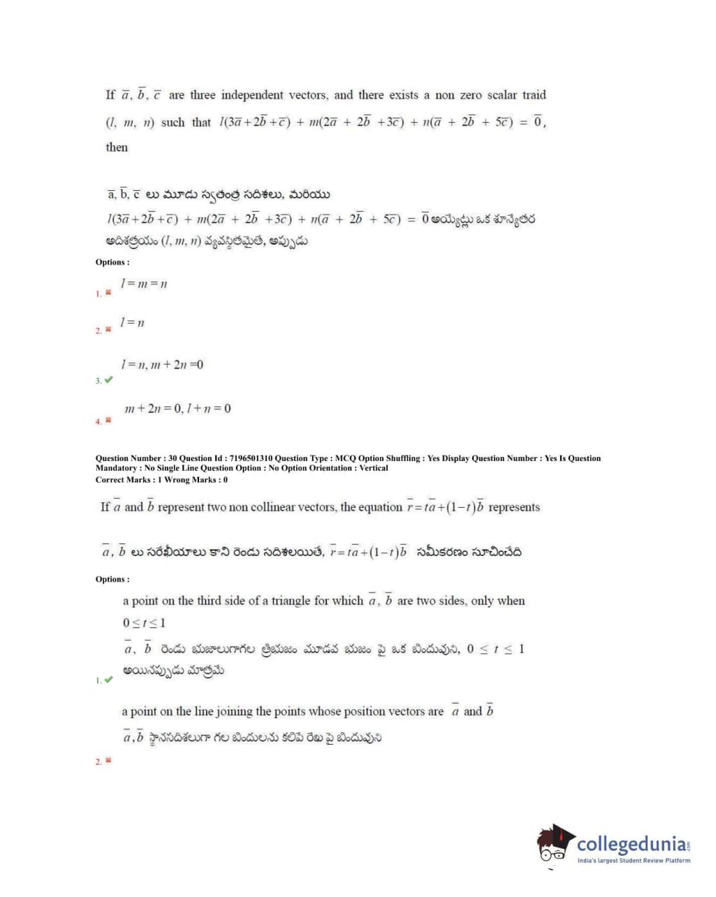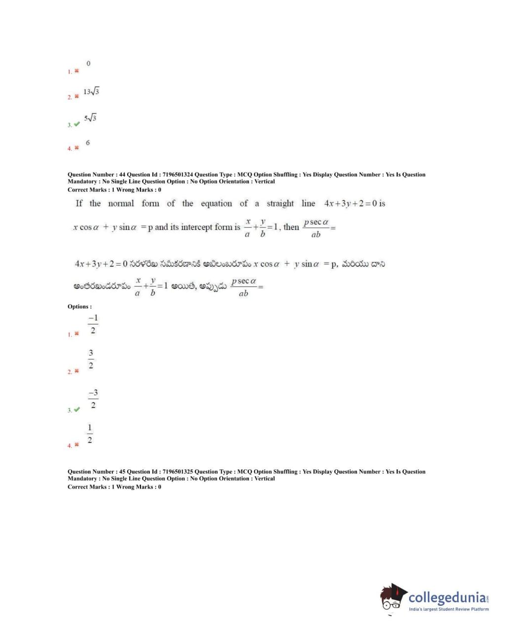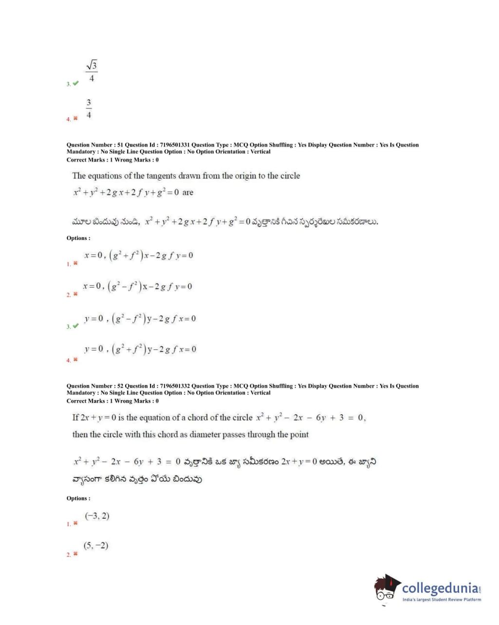 TS EAMCET 2020 Engineering Question Paper with Answer Key PDFs Afternoon Session