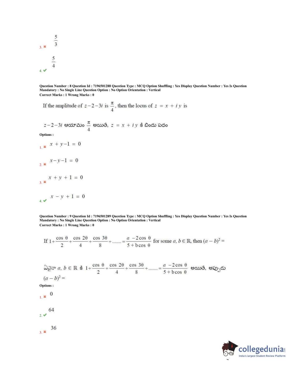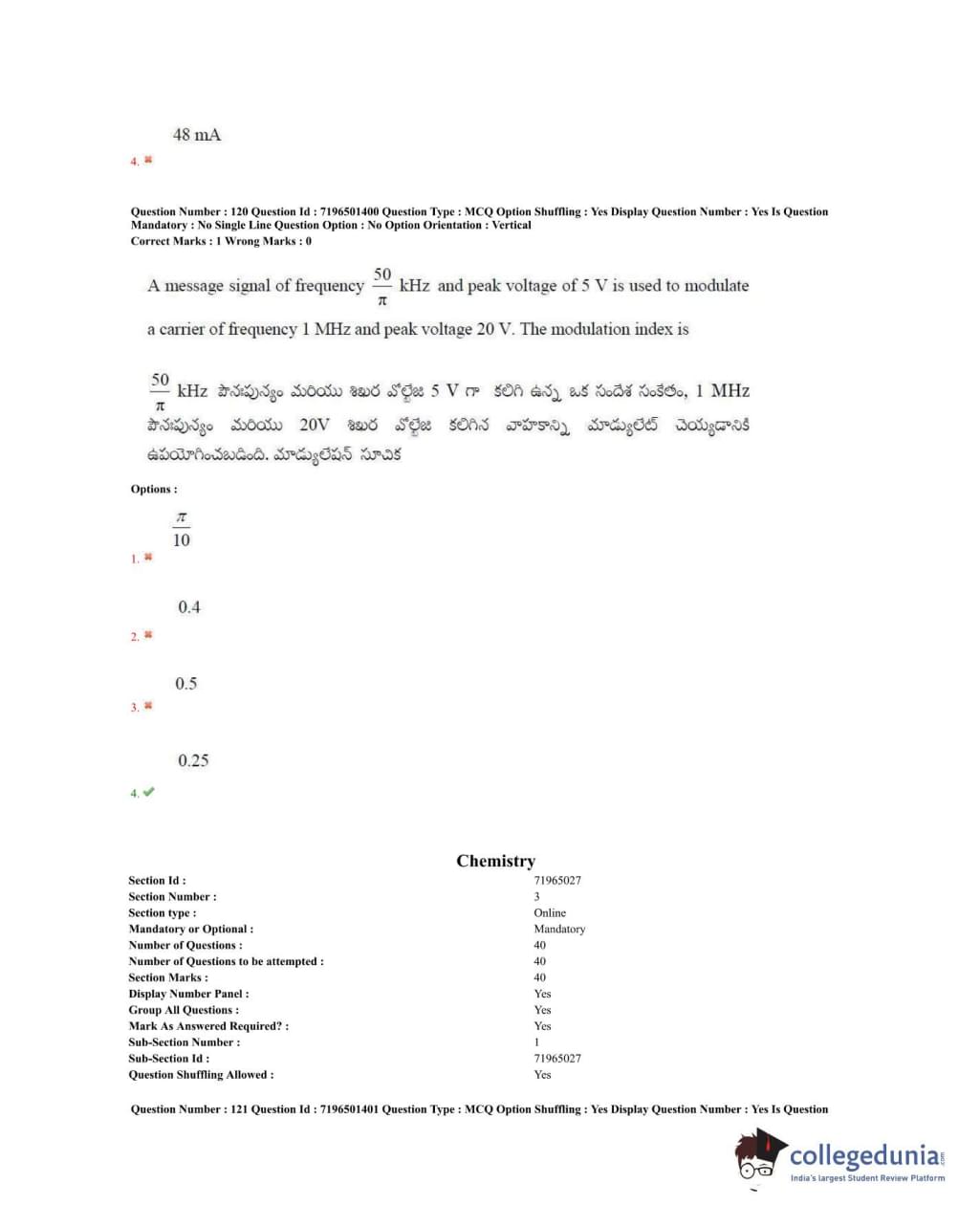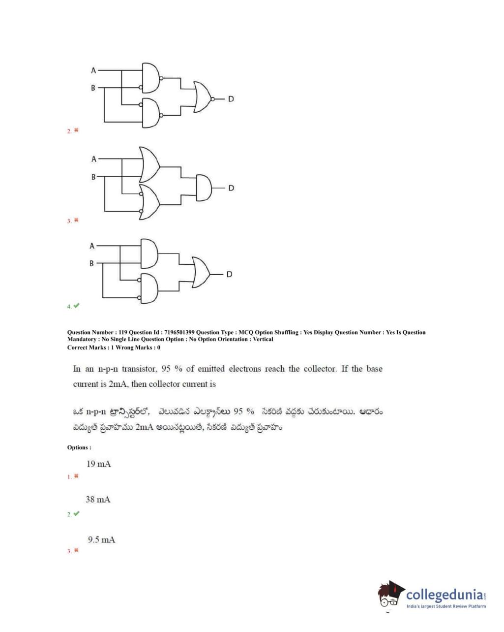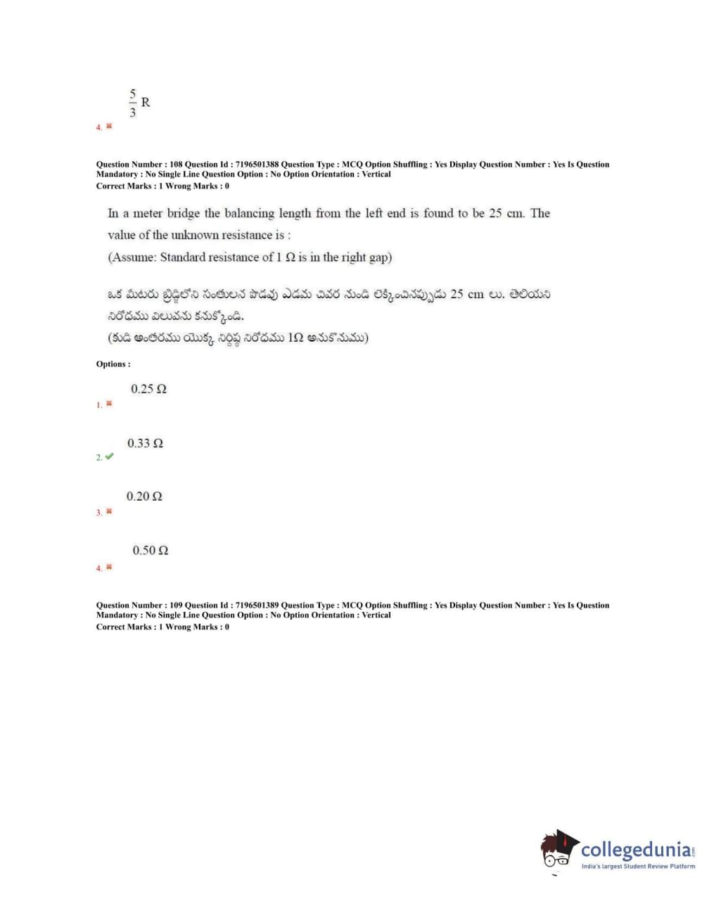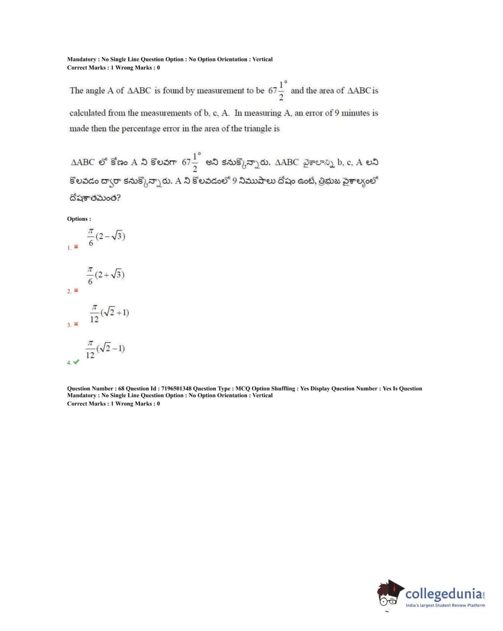 TS EAMCET 2020 Engineering Question Paper with Answer Key PDFs Afternoon Session