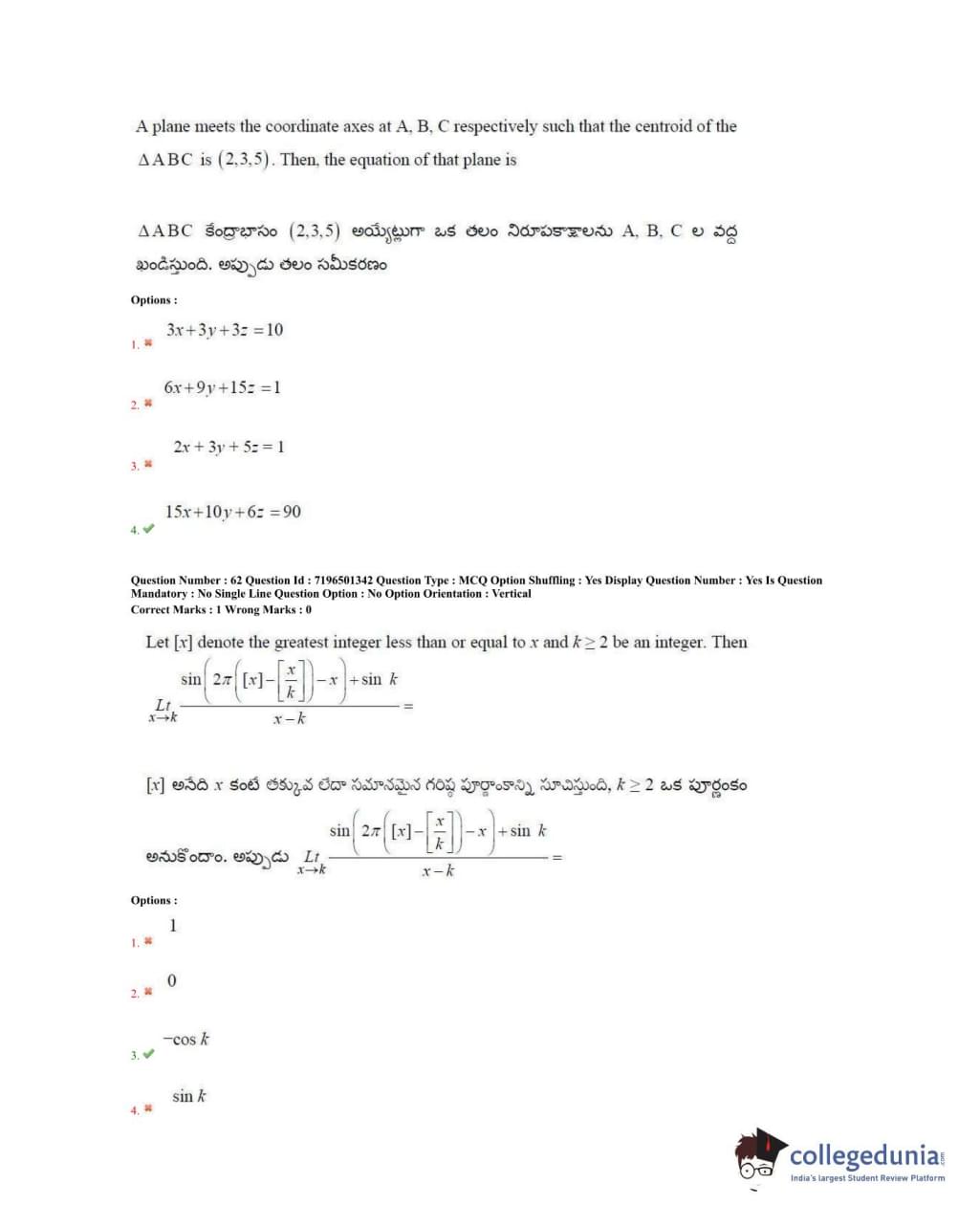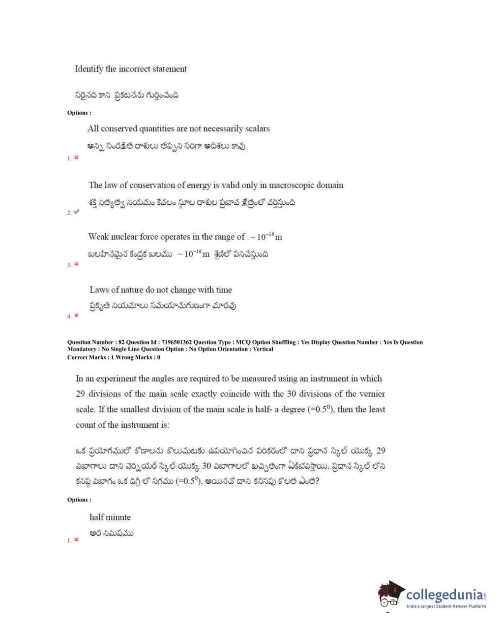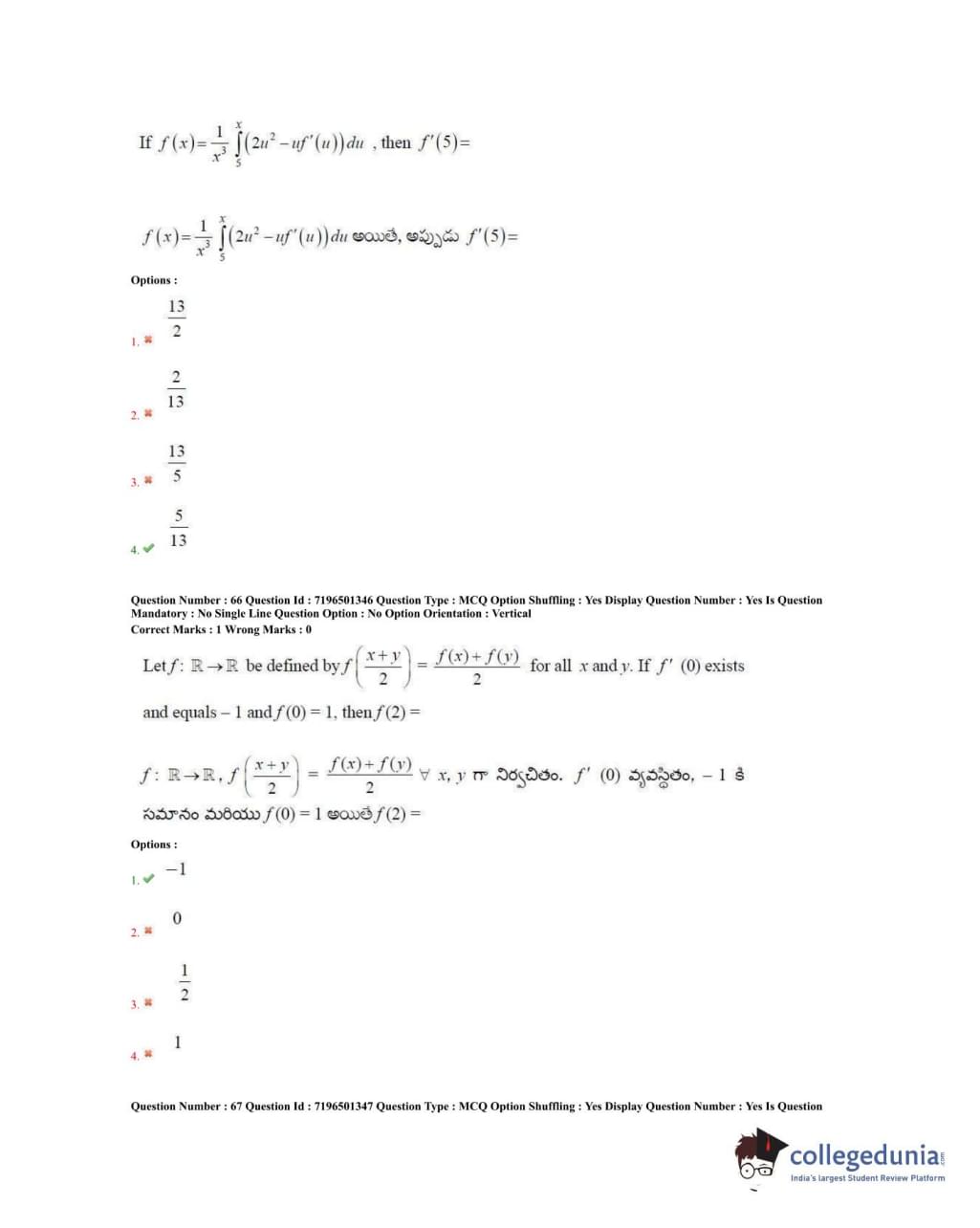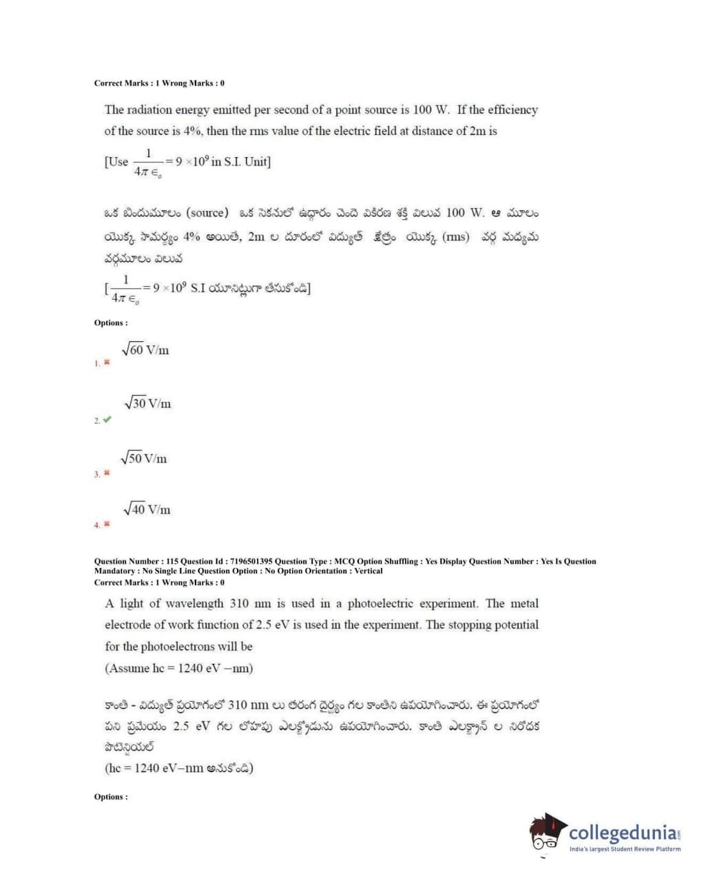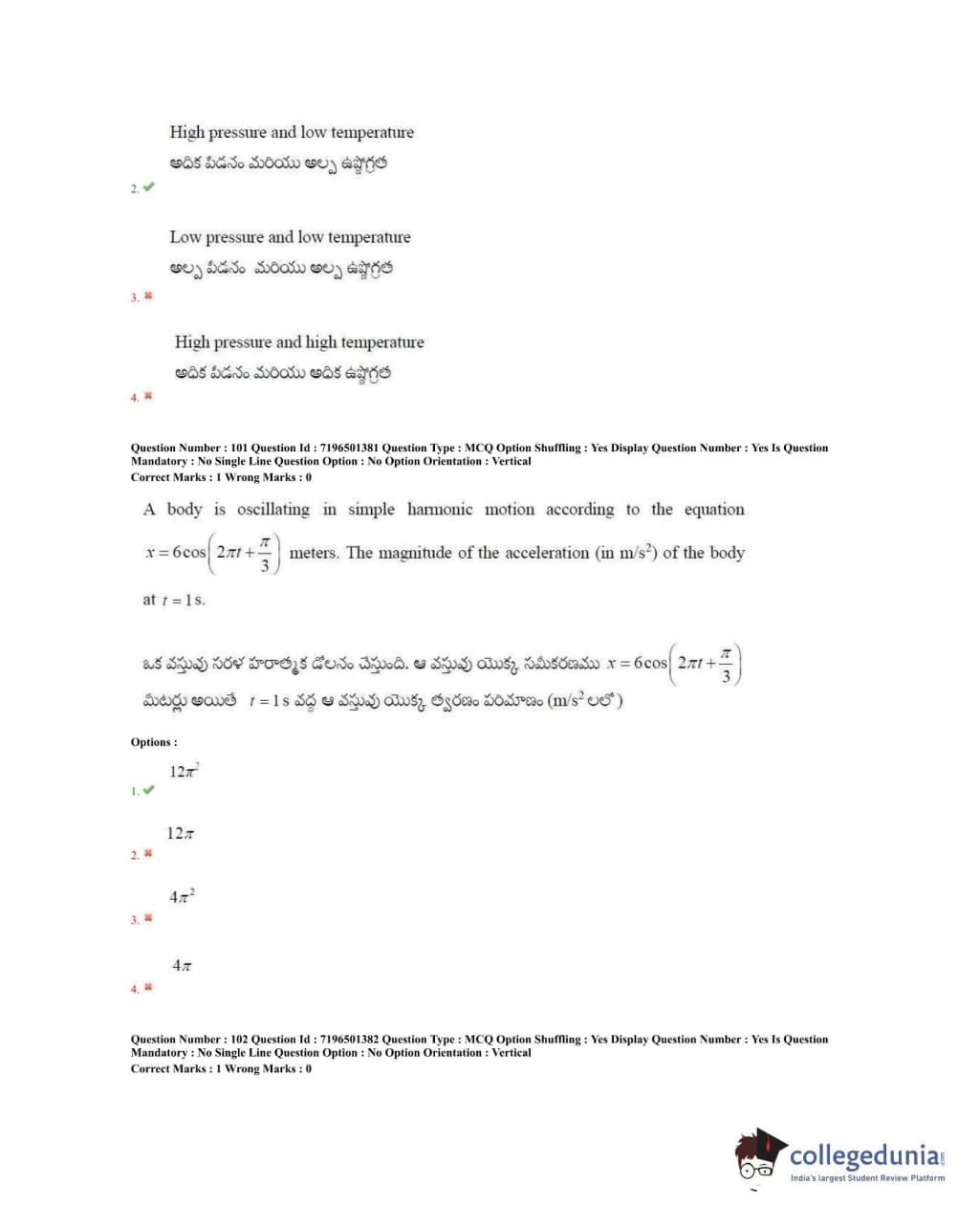 TS EAMCET 2020 Engineering Question Paper with Answer Key PDFs Afternoon Session