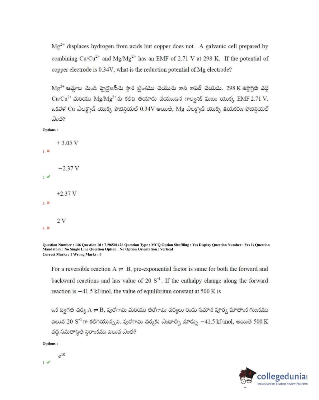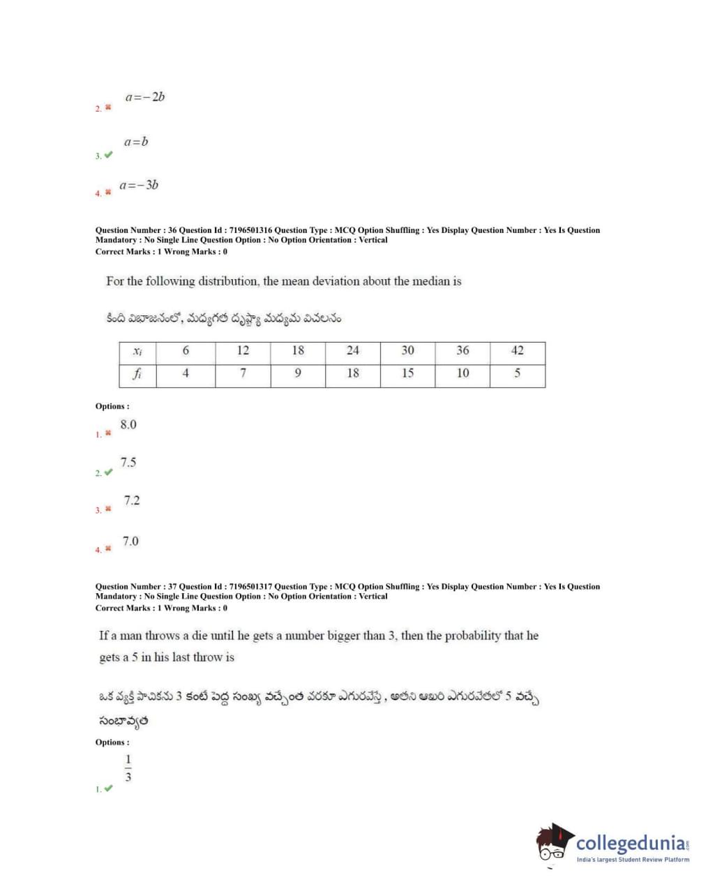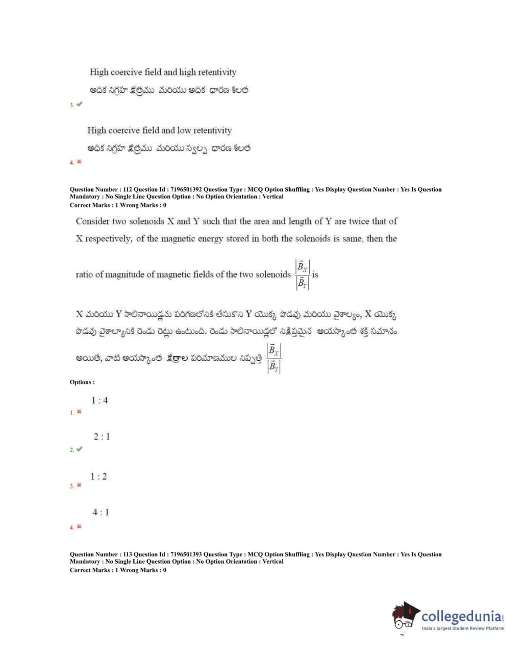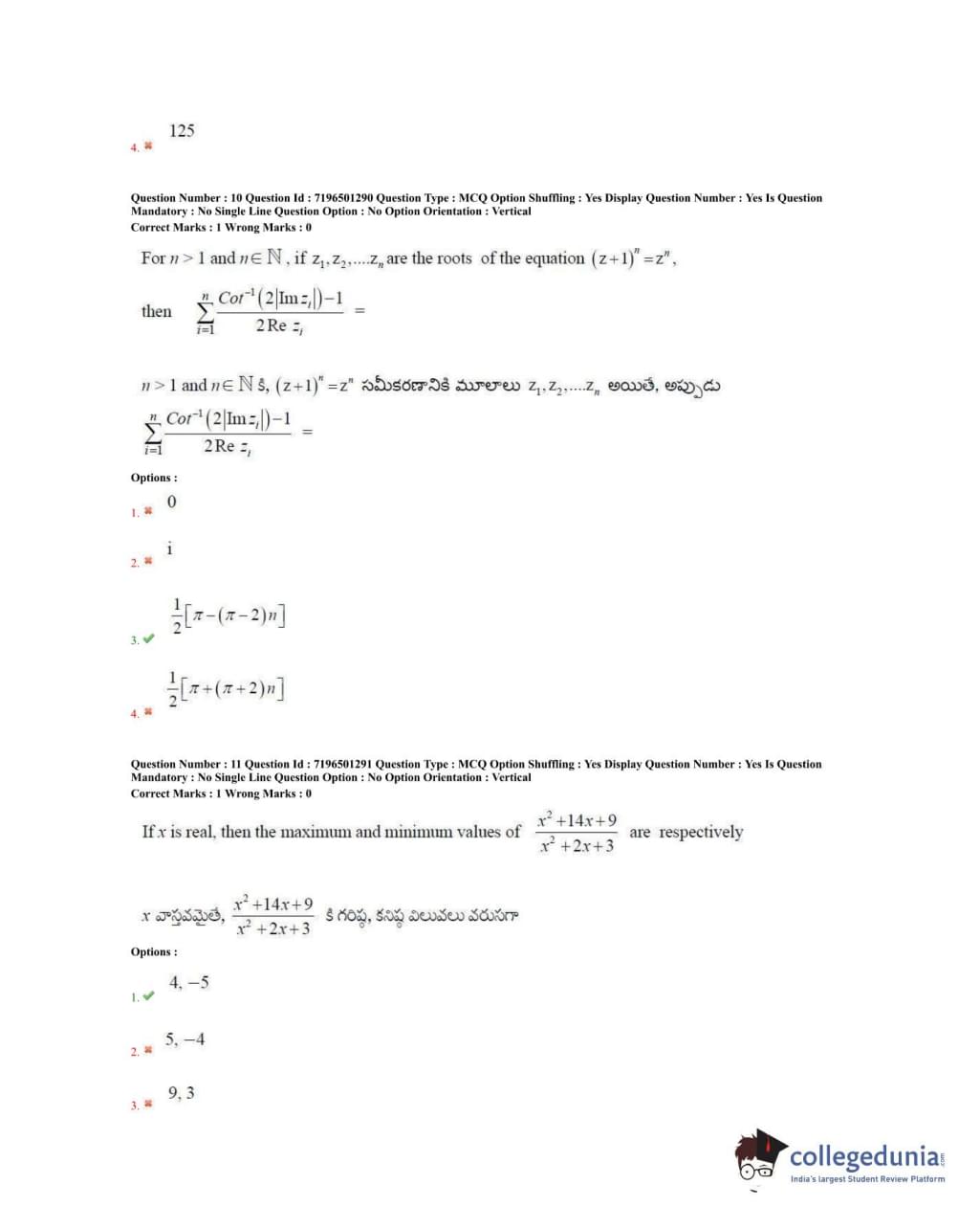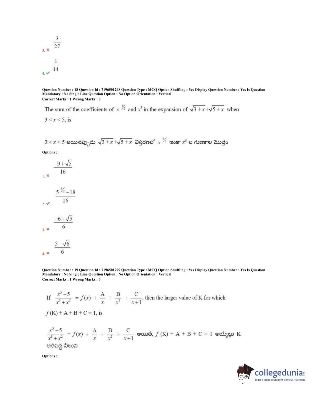 TS EAMCET 2020 Engineering Question Paper with Answer Key PDFs Afternoon Session
