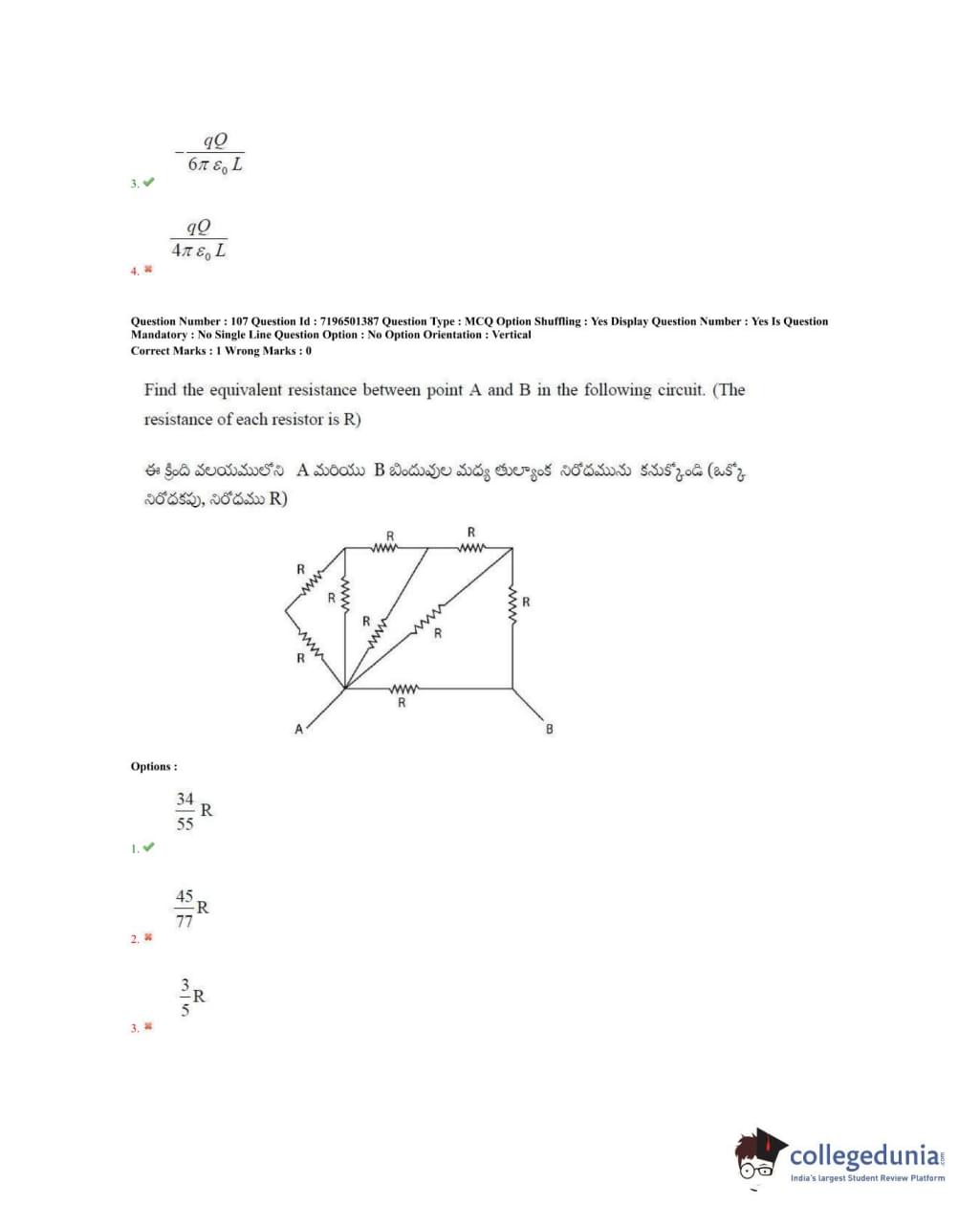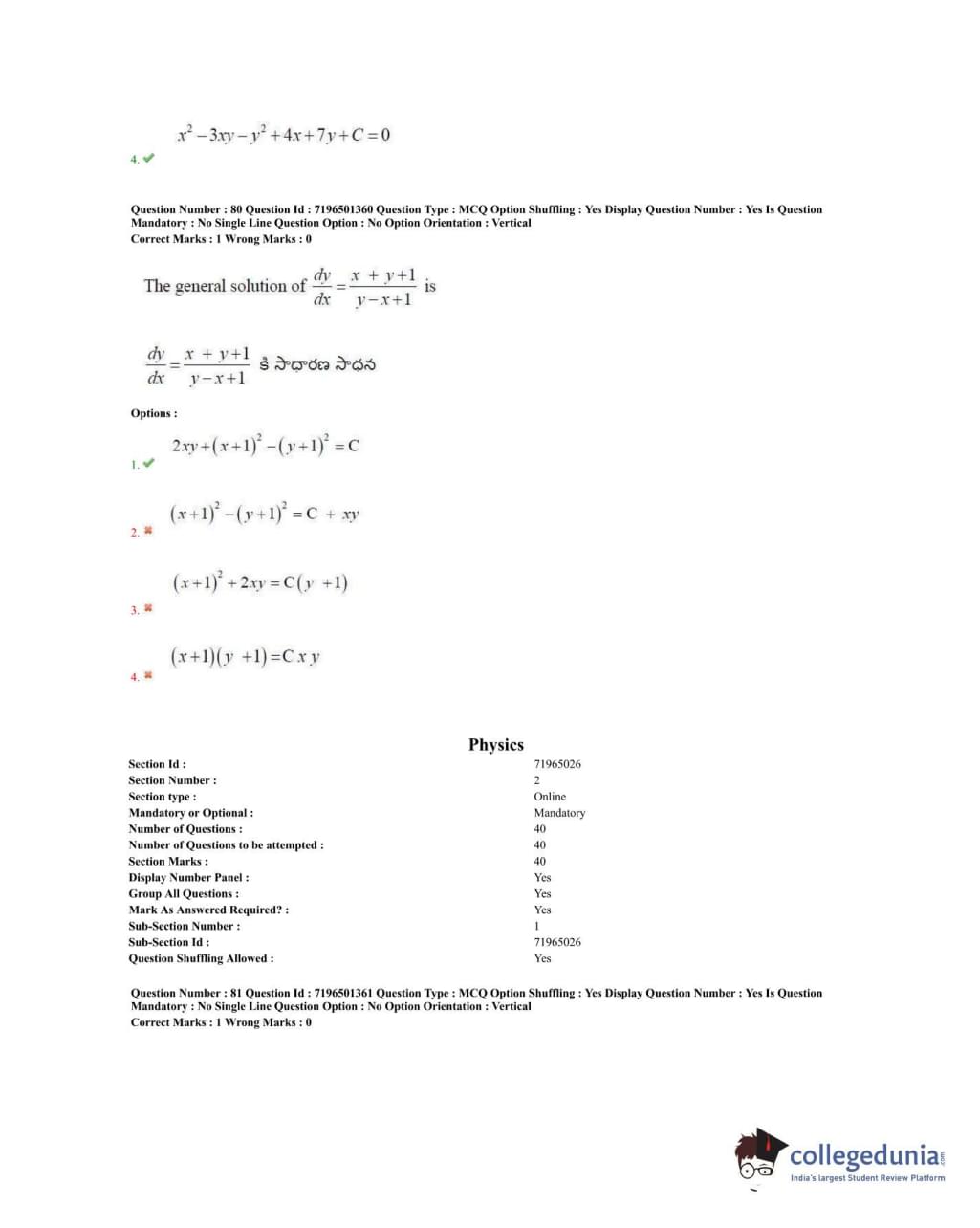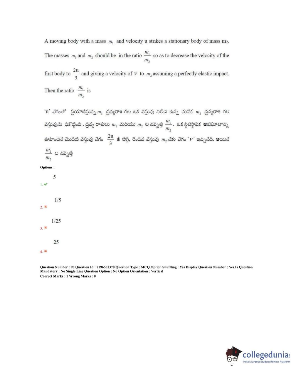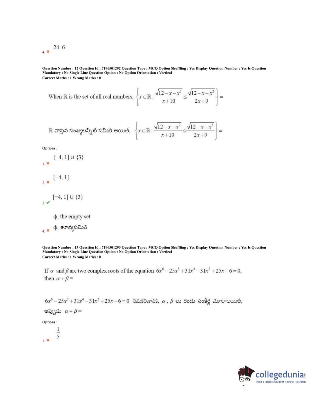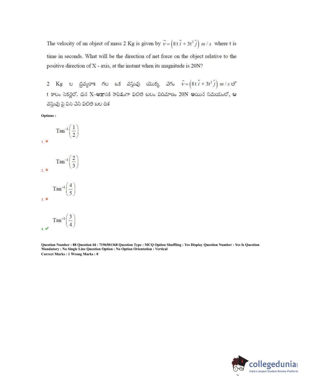 TS EAMCET 2020 Engineering Question Paper with Answer Key PDFs Afternoon Session