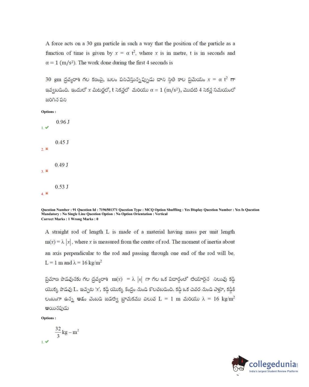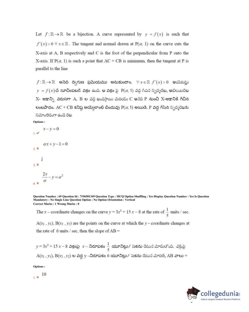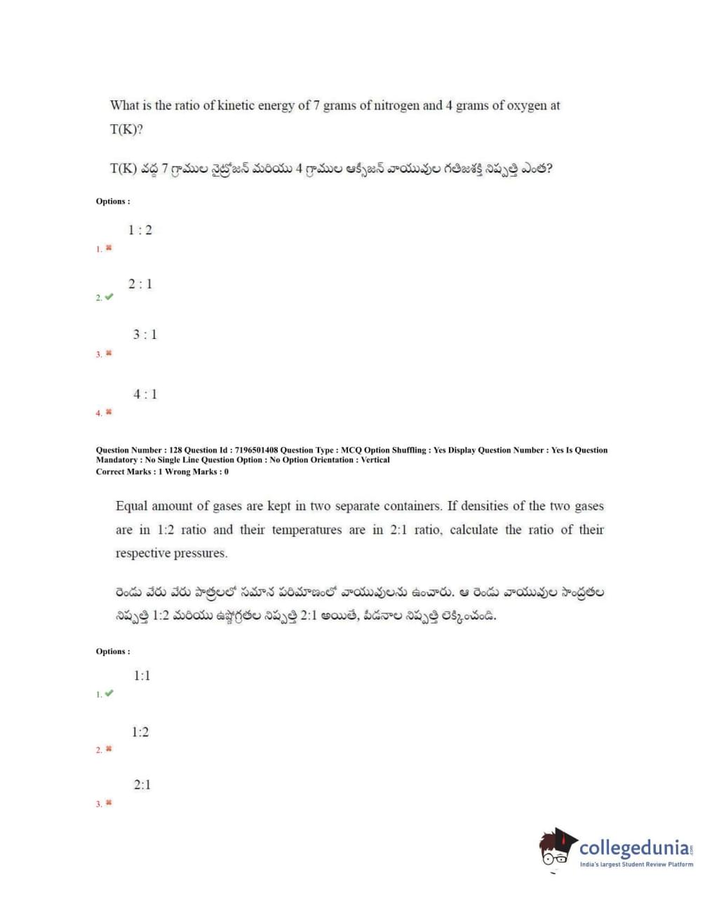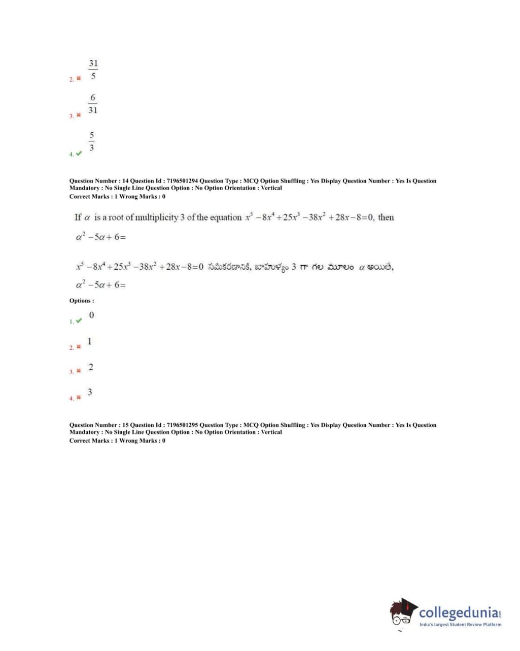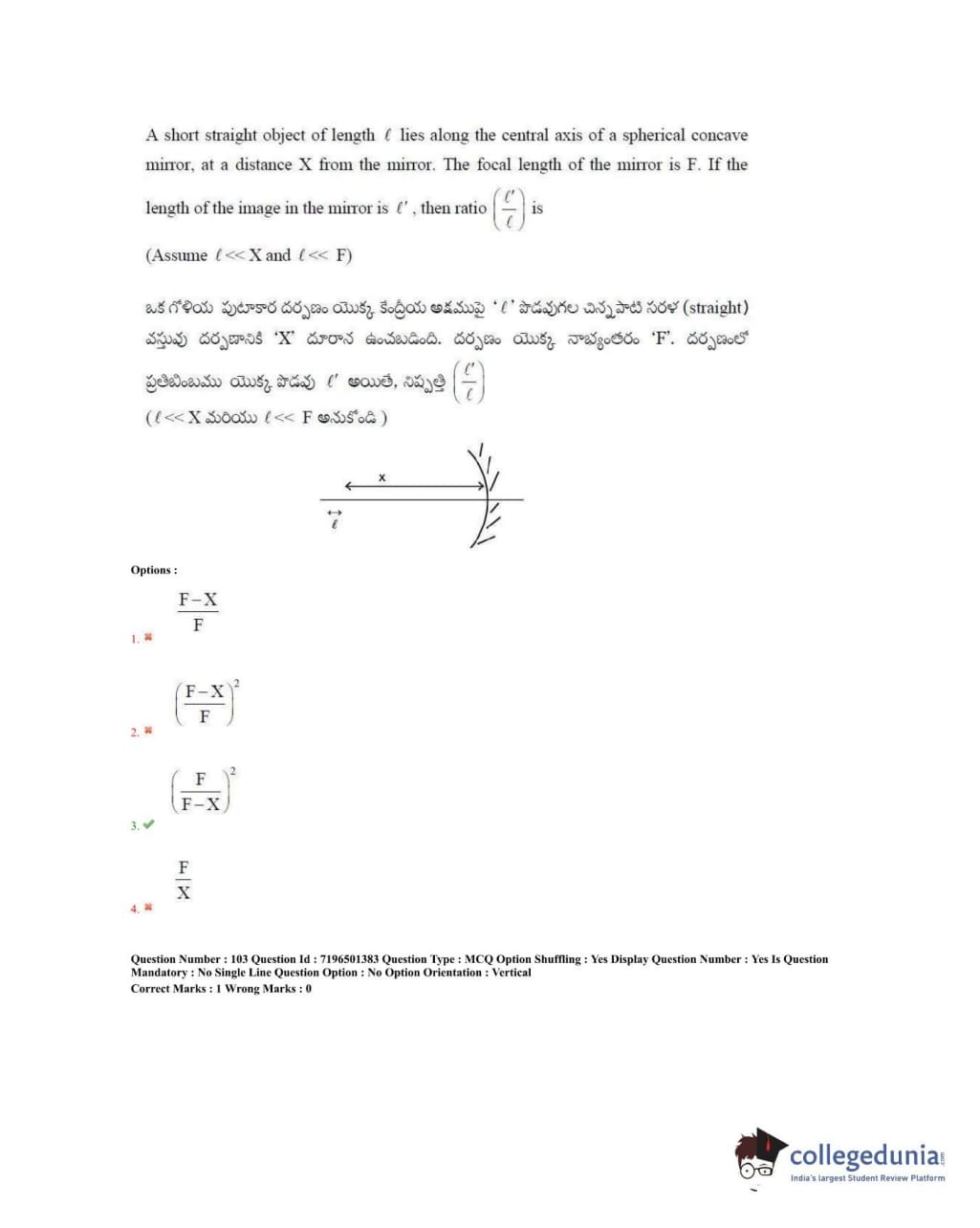 TS EAMCET 2020 Engineering Question Paper with Answer Key PDFs Afternoon Session
