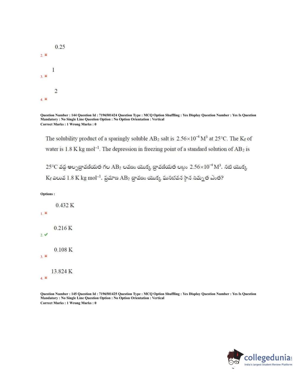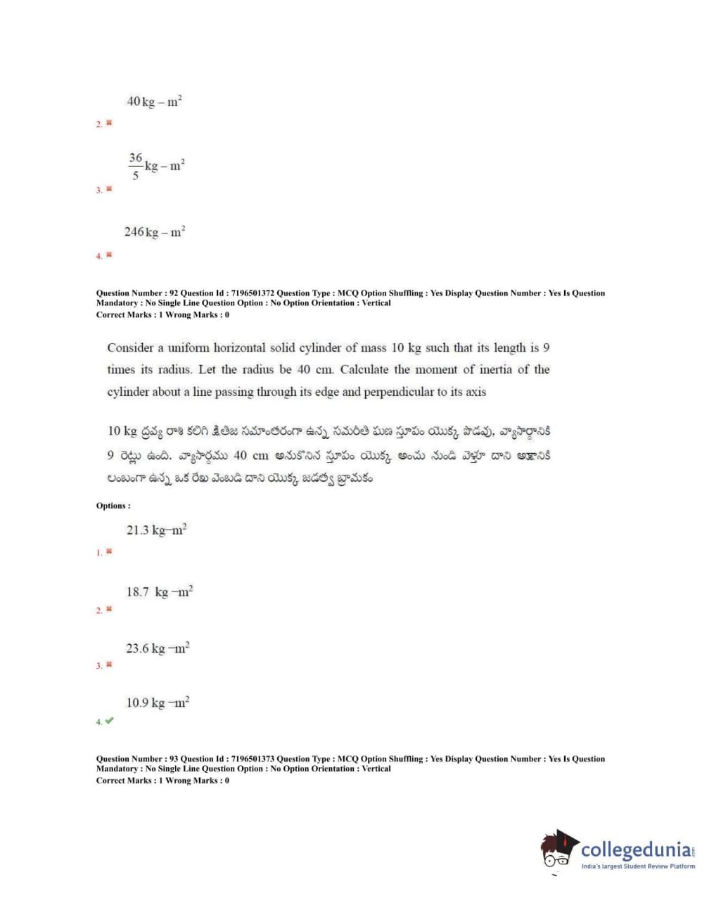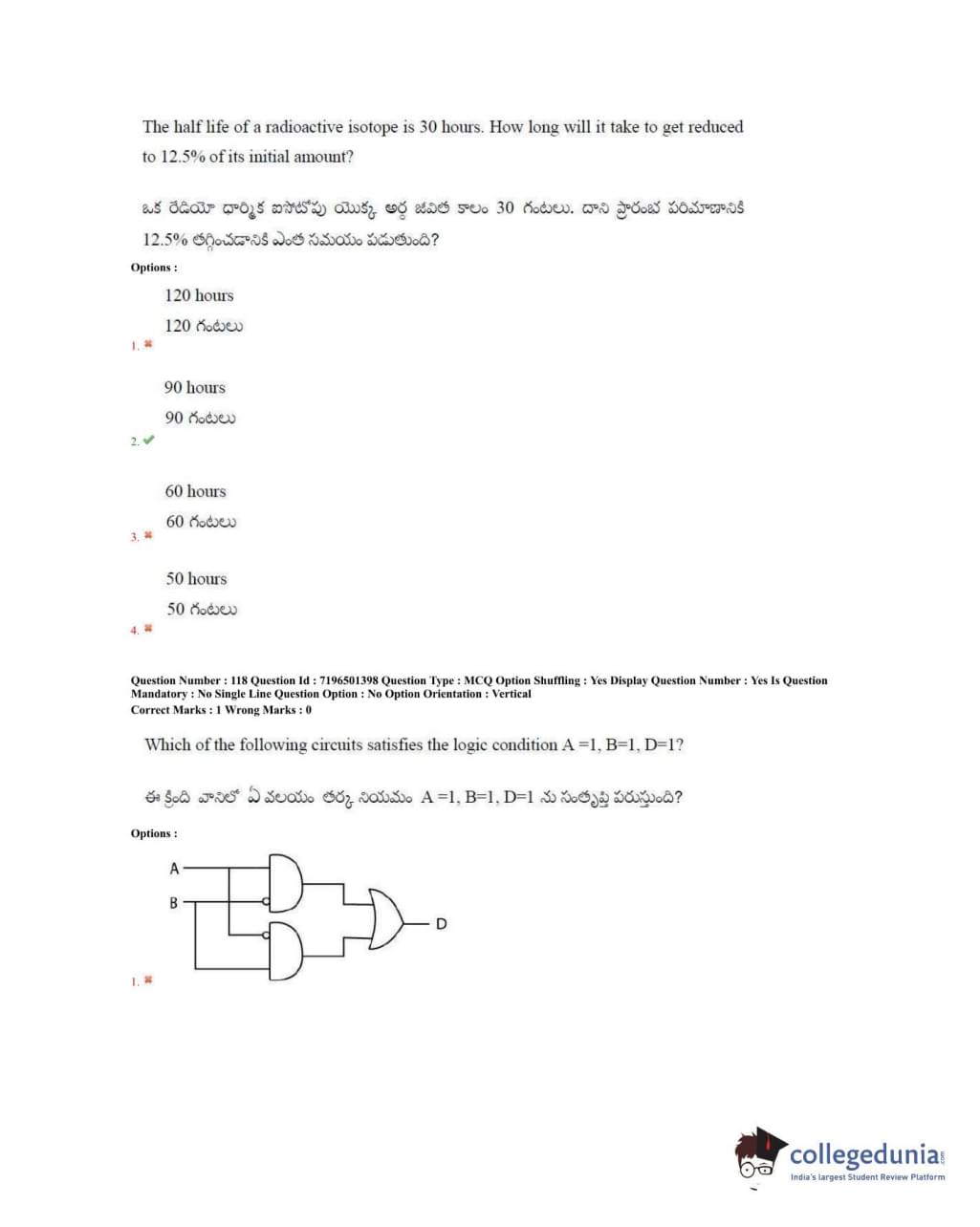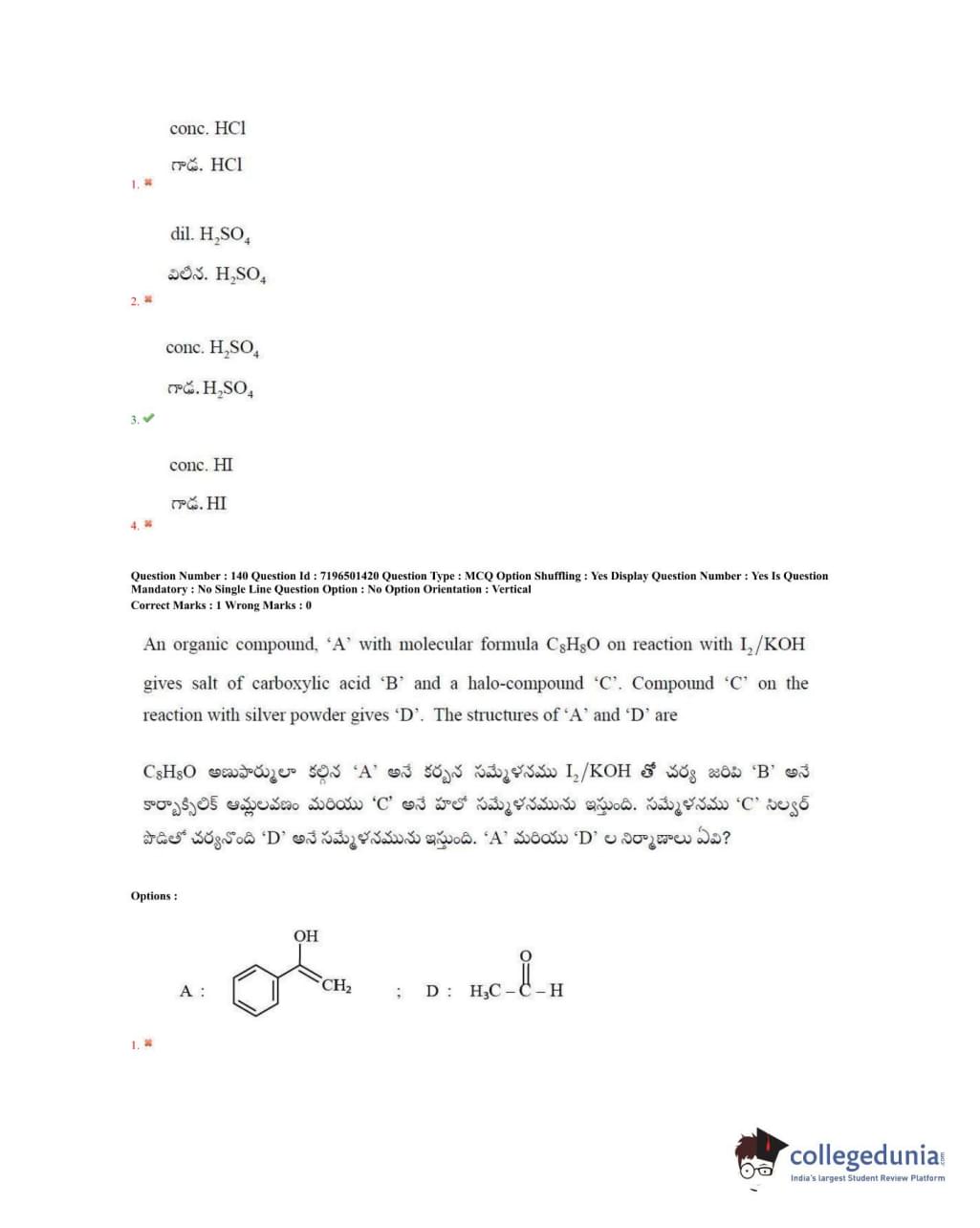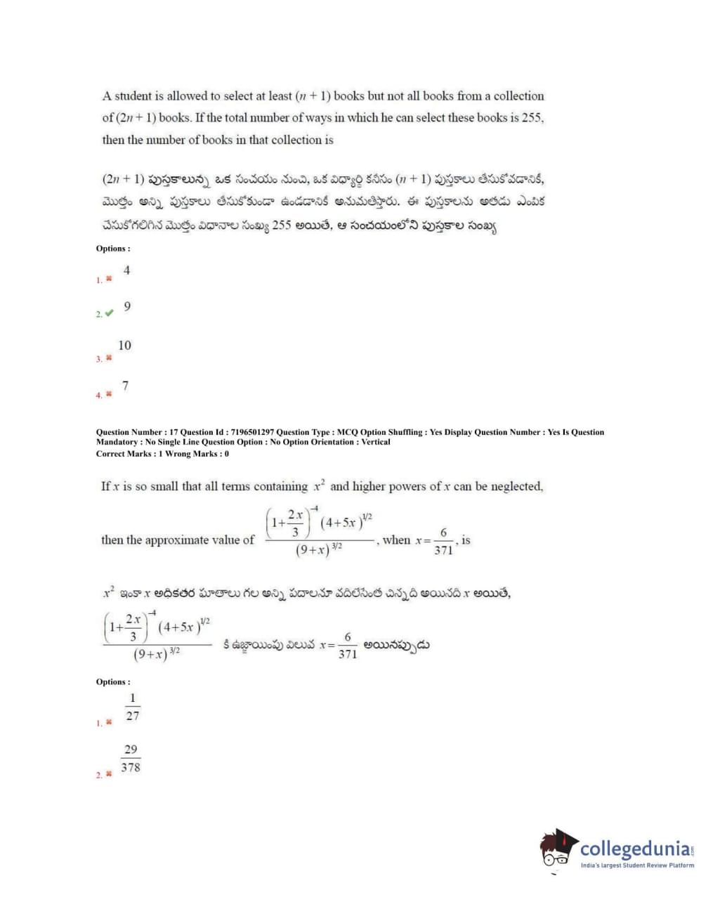TS EAMCET 2020 Engineering Question Paper with Answer Key PDFs Afternoon Session