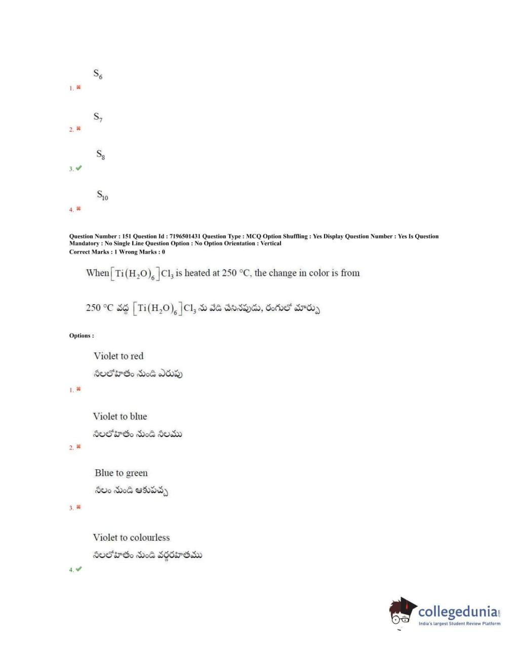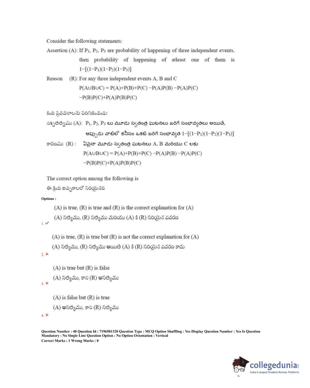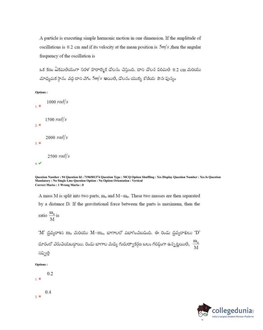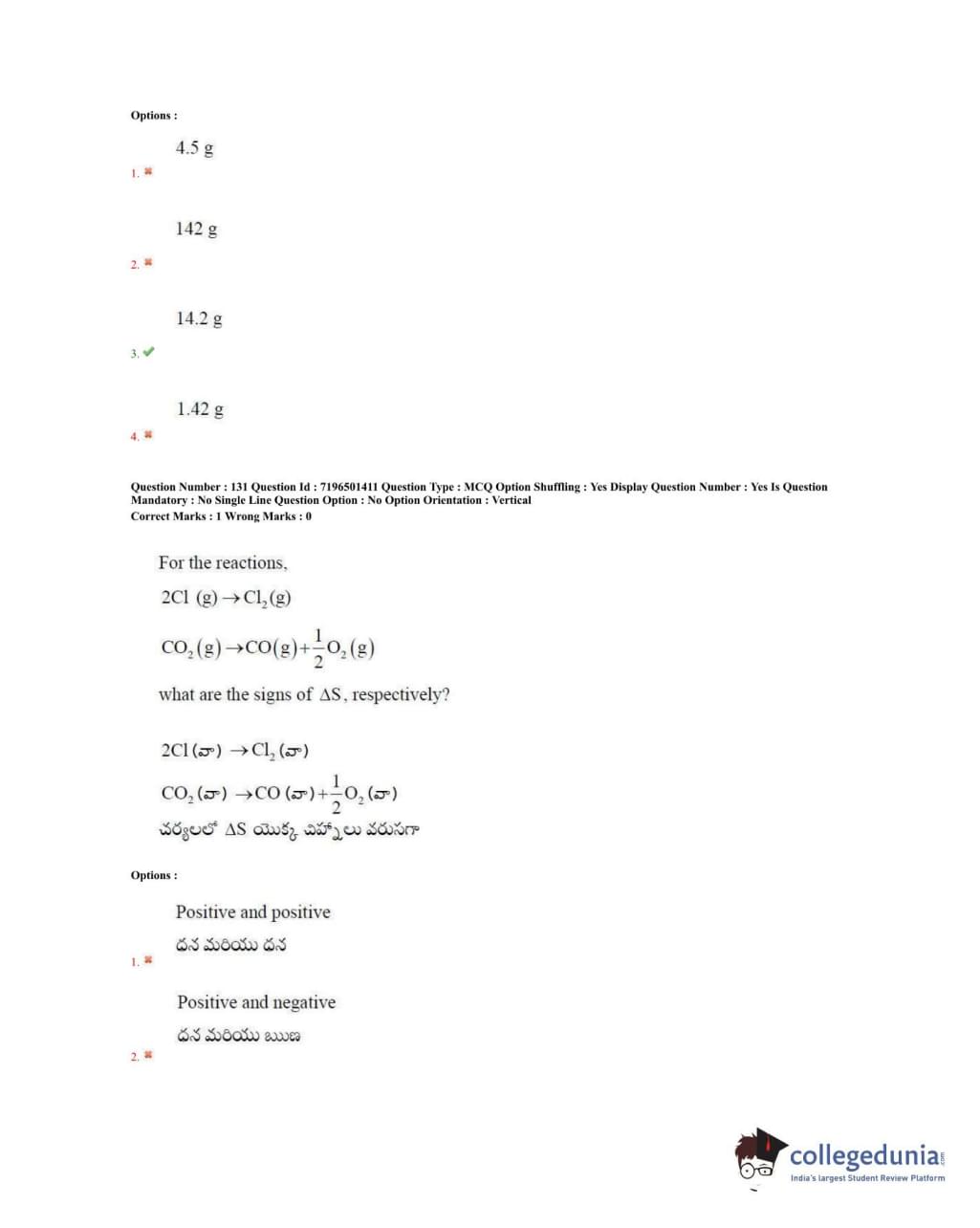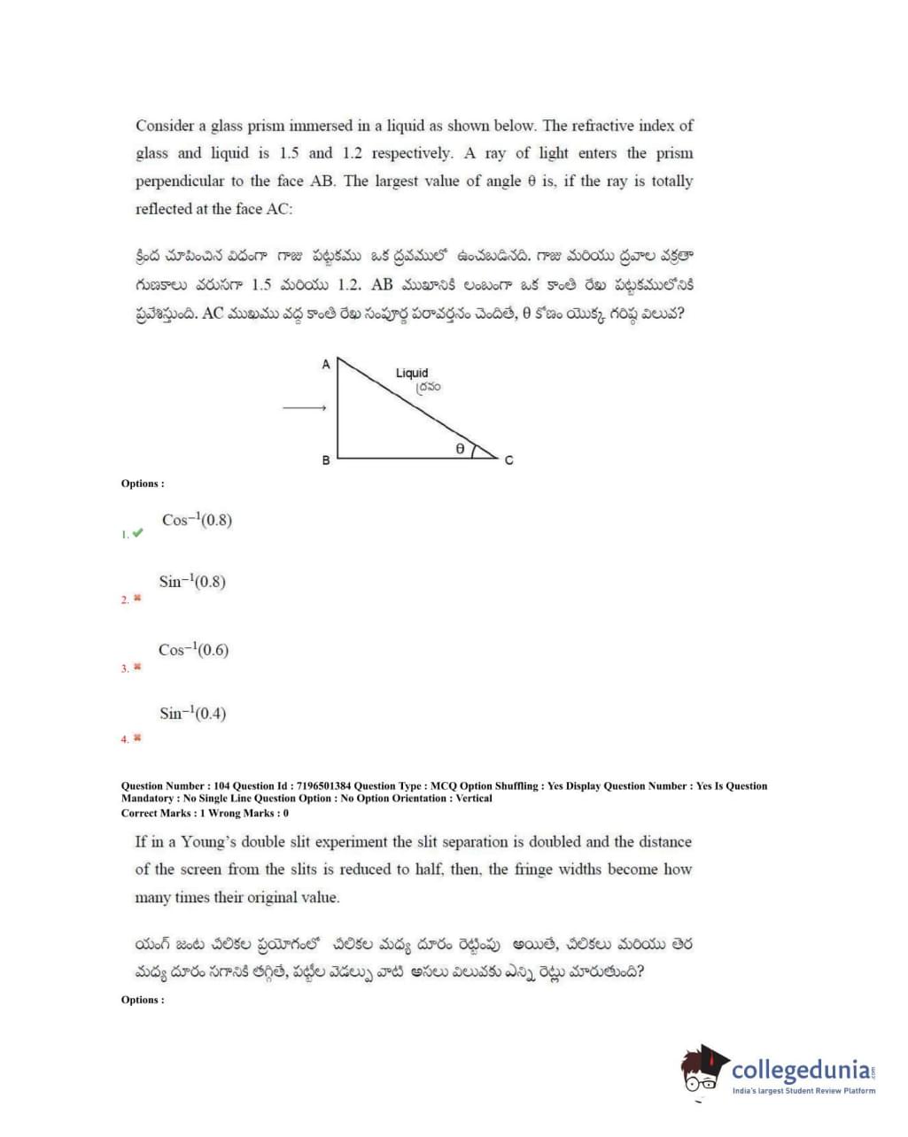 TS EAMCET 2020 Engineering Question Paper with Answer Key PDFs Afternoon Session