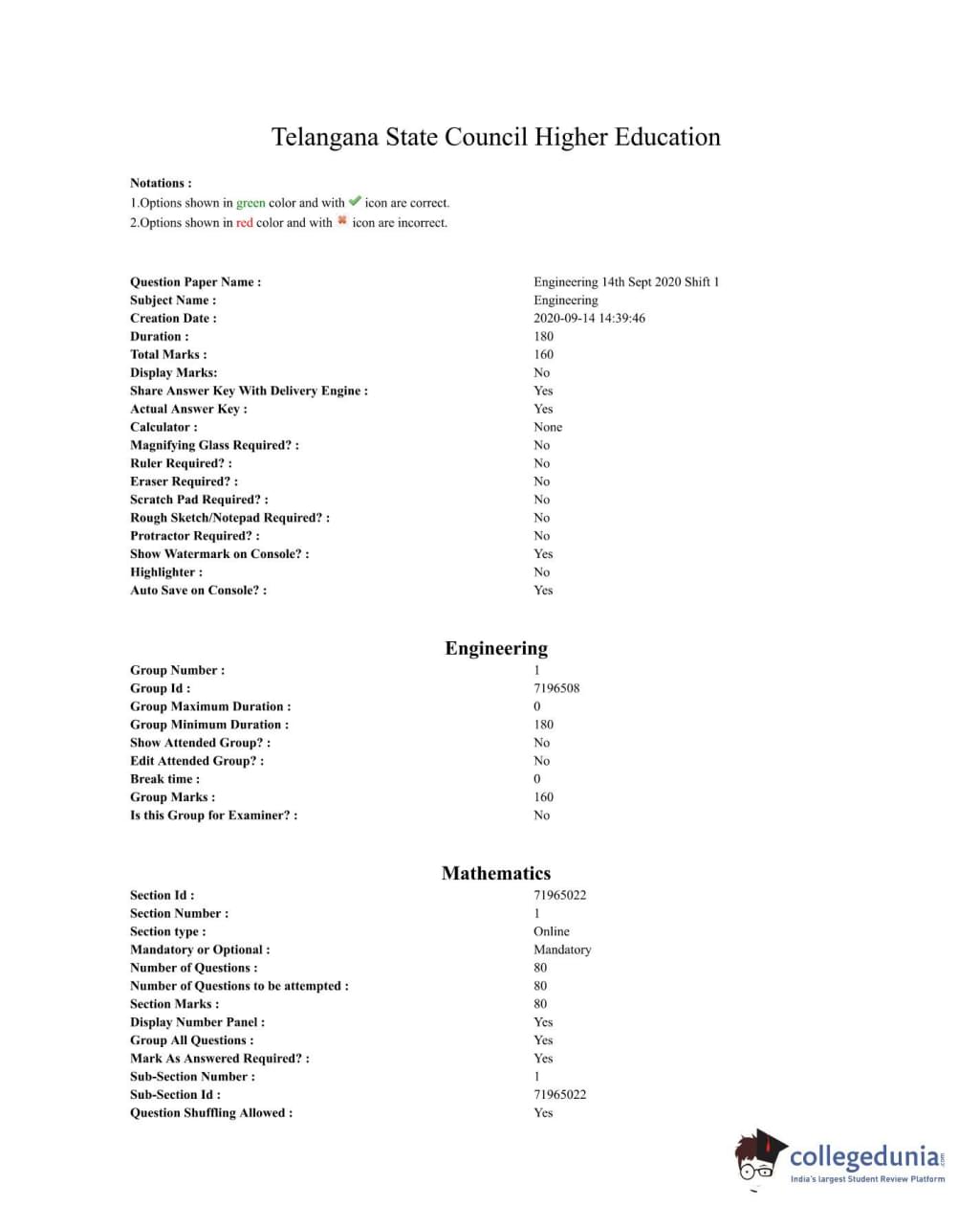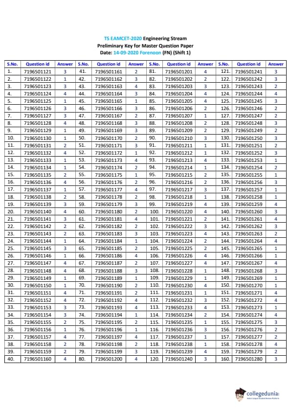 | TS EAMCET 2020 Engineering Question Paper PDF | TS EAMCET 2020 Engineering Answer Key PDF |