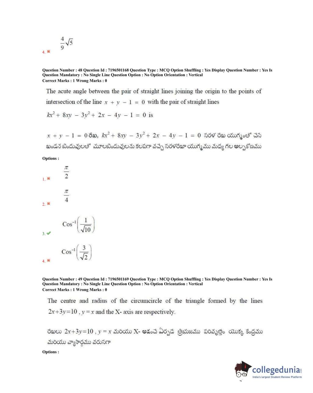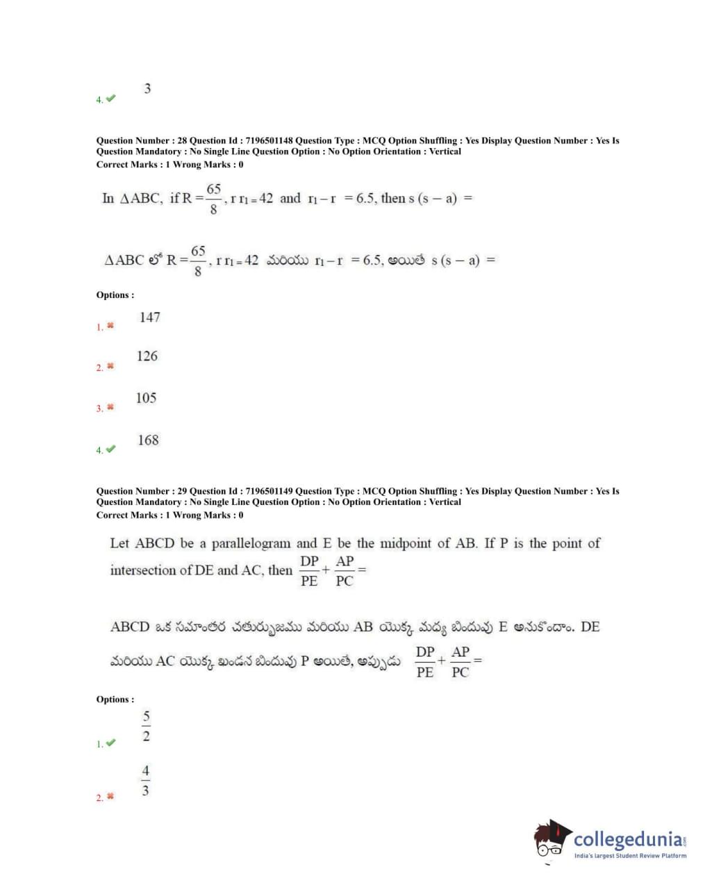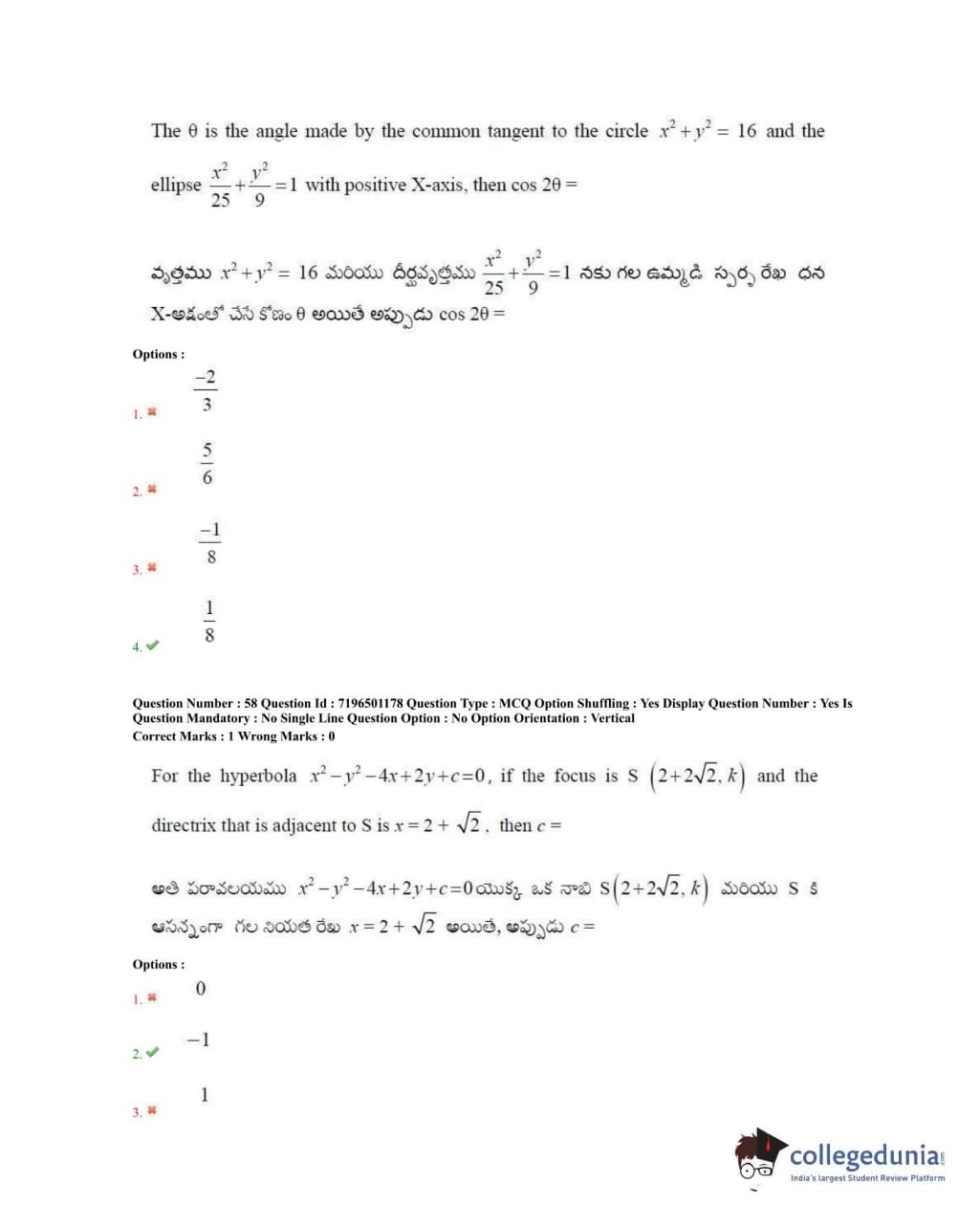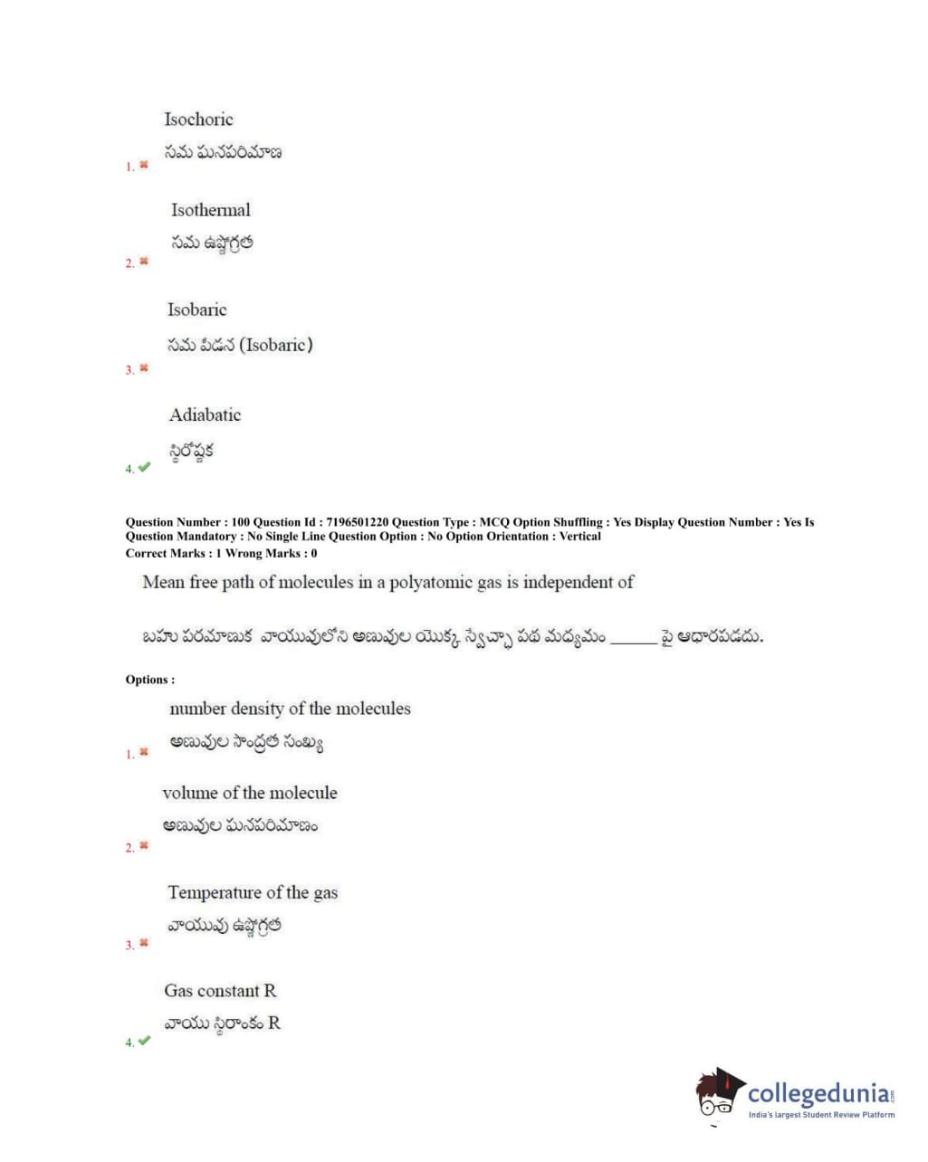TS EAMCET 2020 Engineering Question Paper with Answer Key PDFs Forenoon Session