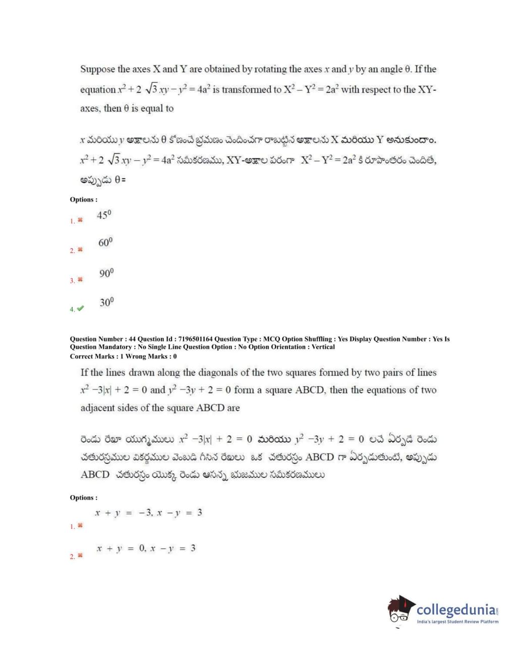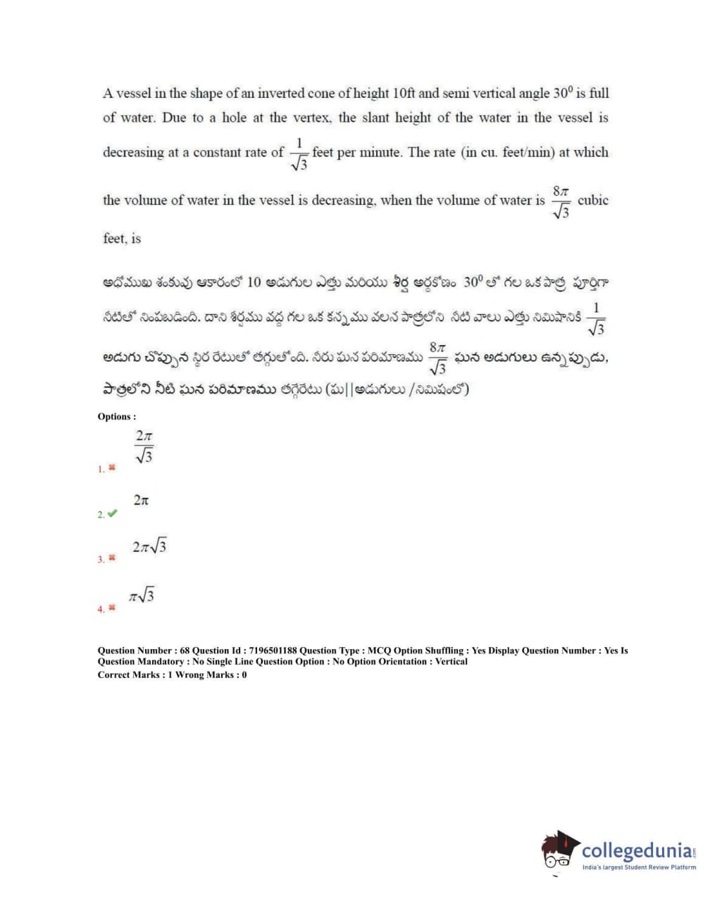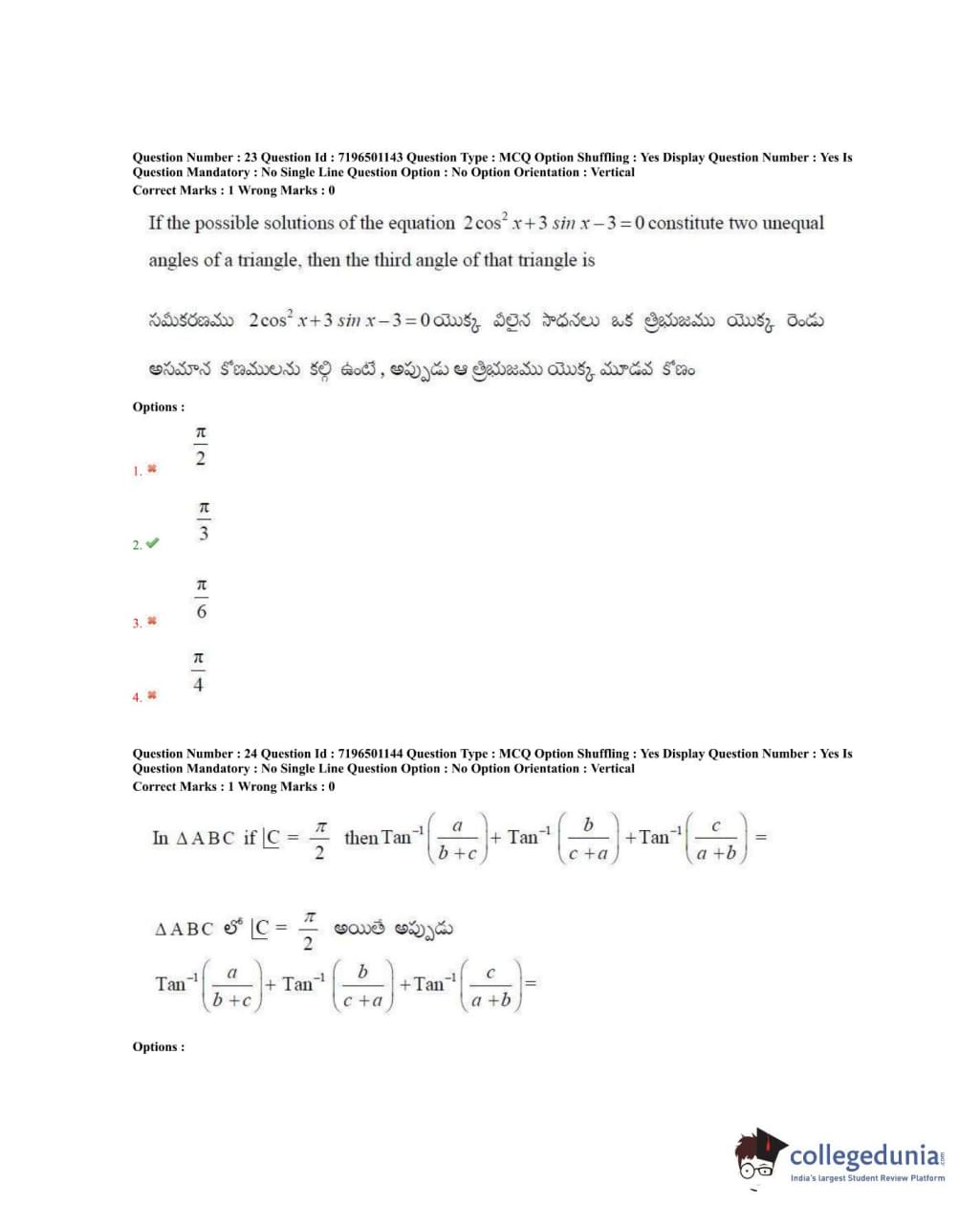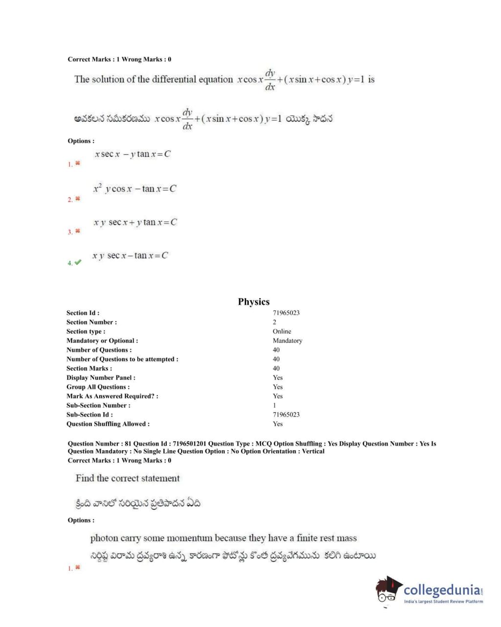TS EAMCET 2020 Engineering Question Paper with Answer Key PDFs Forenoon Session