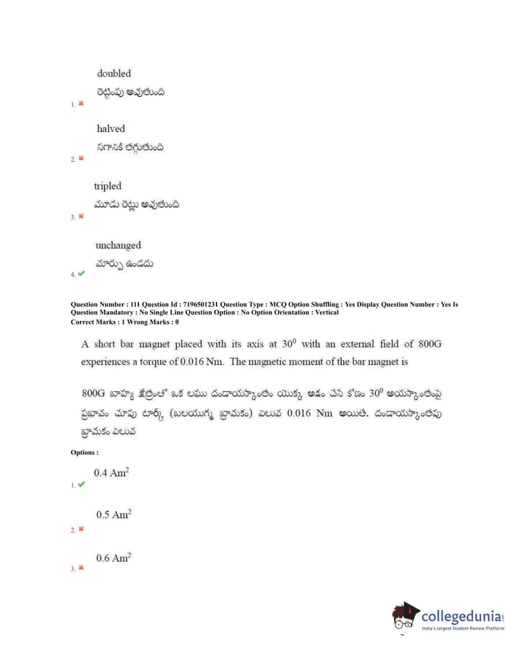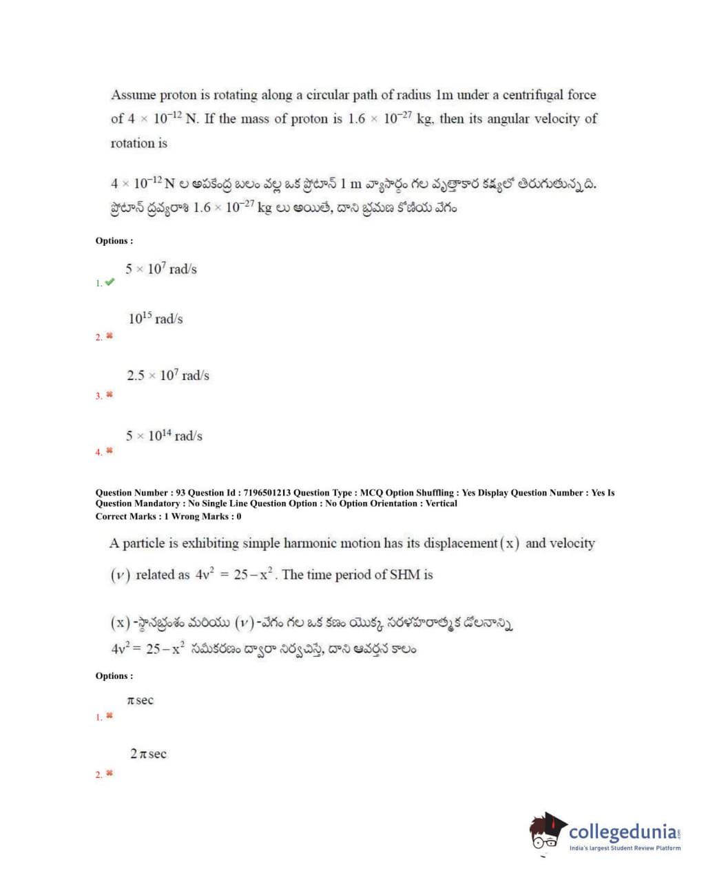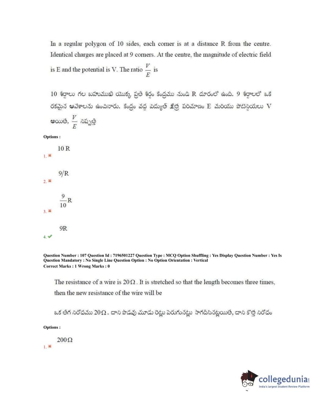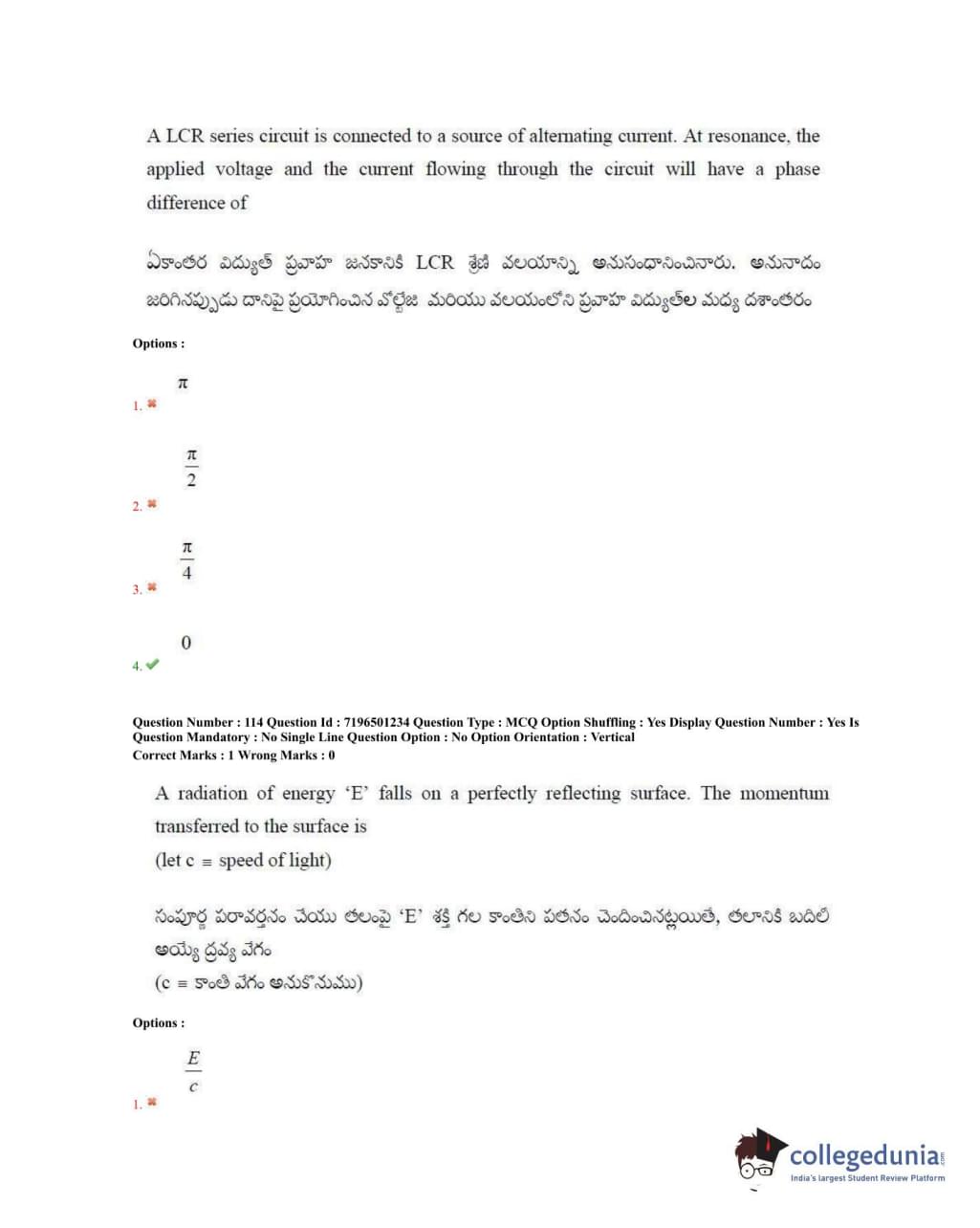 TS EAMCET 2020 Engineering Question Paper with Answer Key PDFs Forenoon Session