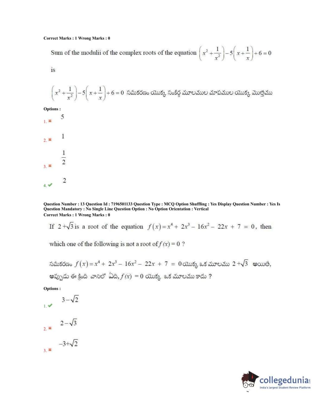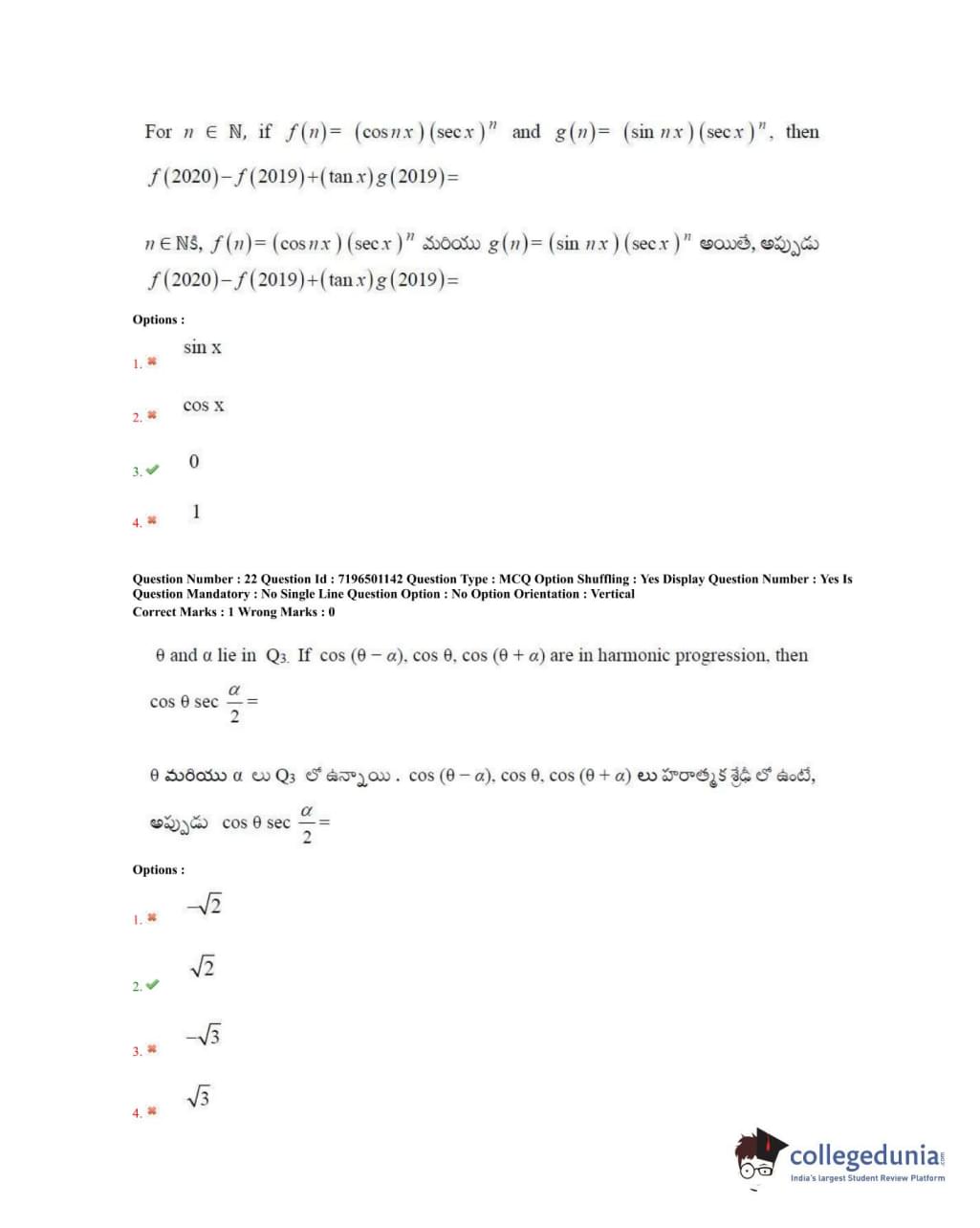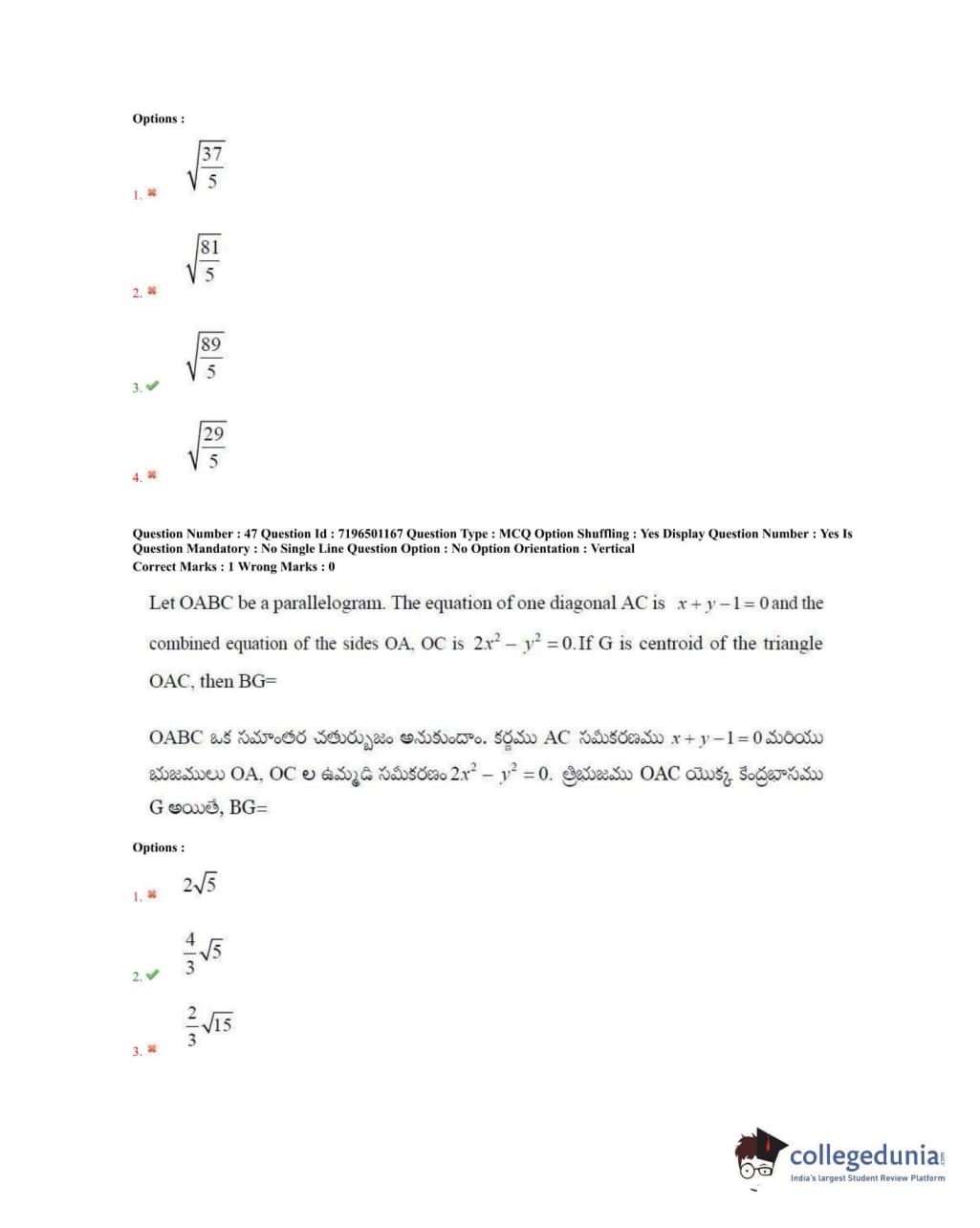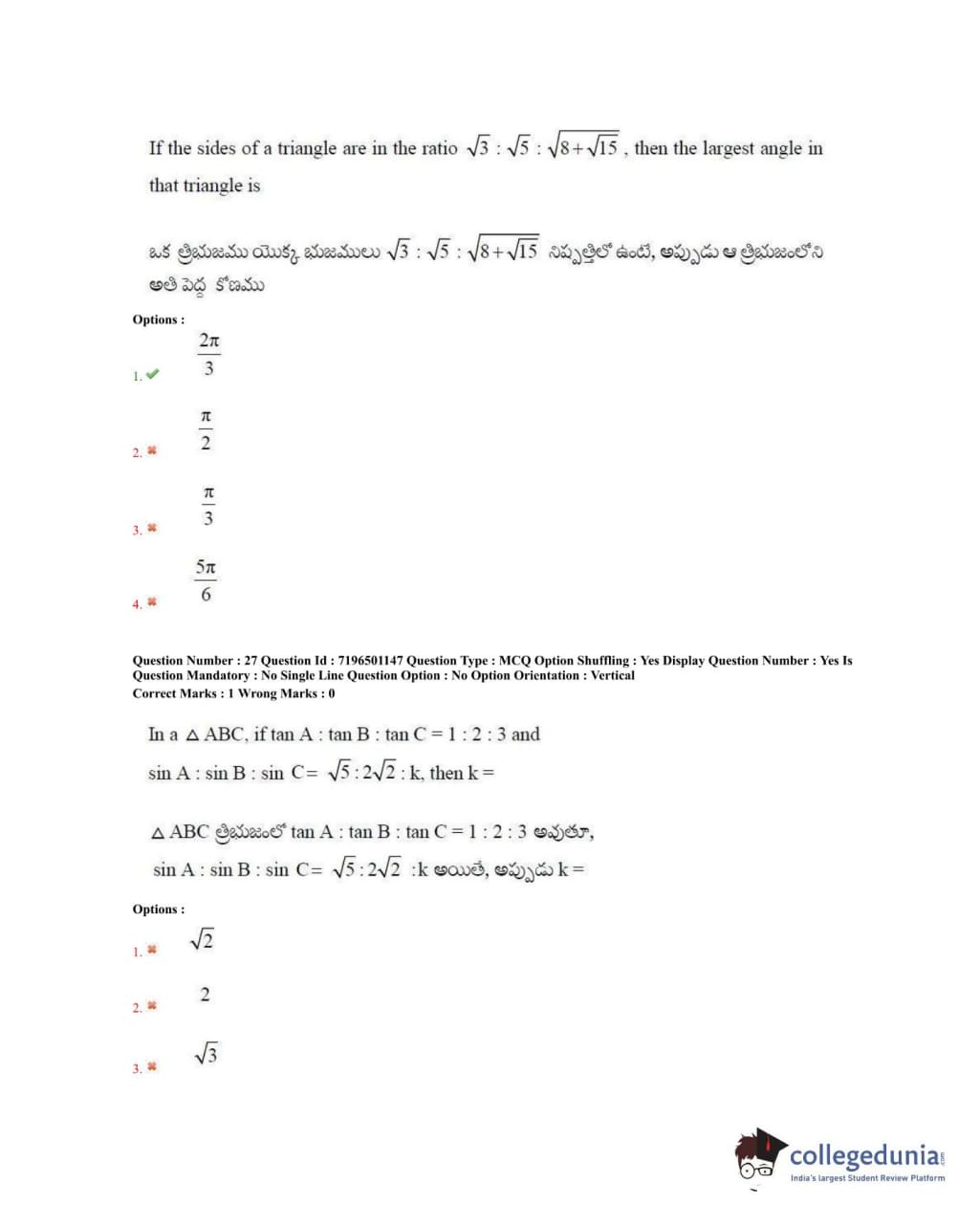 TS EAMCET 2020 Engineering Question Paper with Answer Key PDFs Forenoon Session