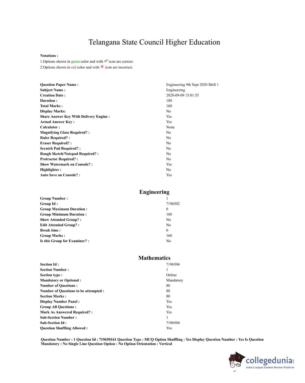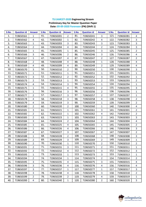 | TS EAMCET 2020 Engineering Question Paper PDF | TS EAMCET 2020 Engineering Answer Key PDF |