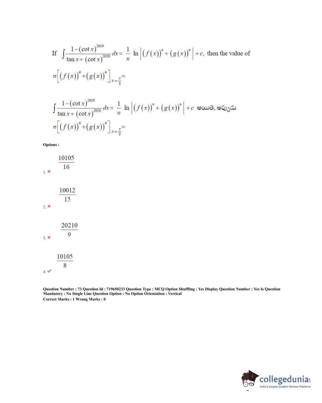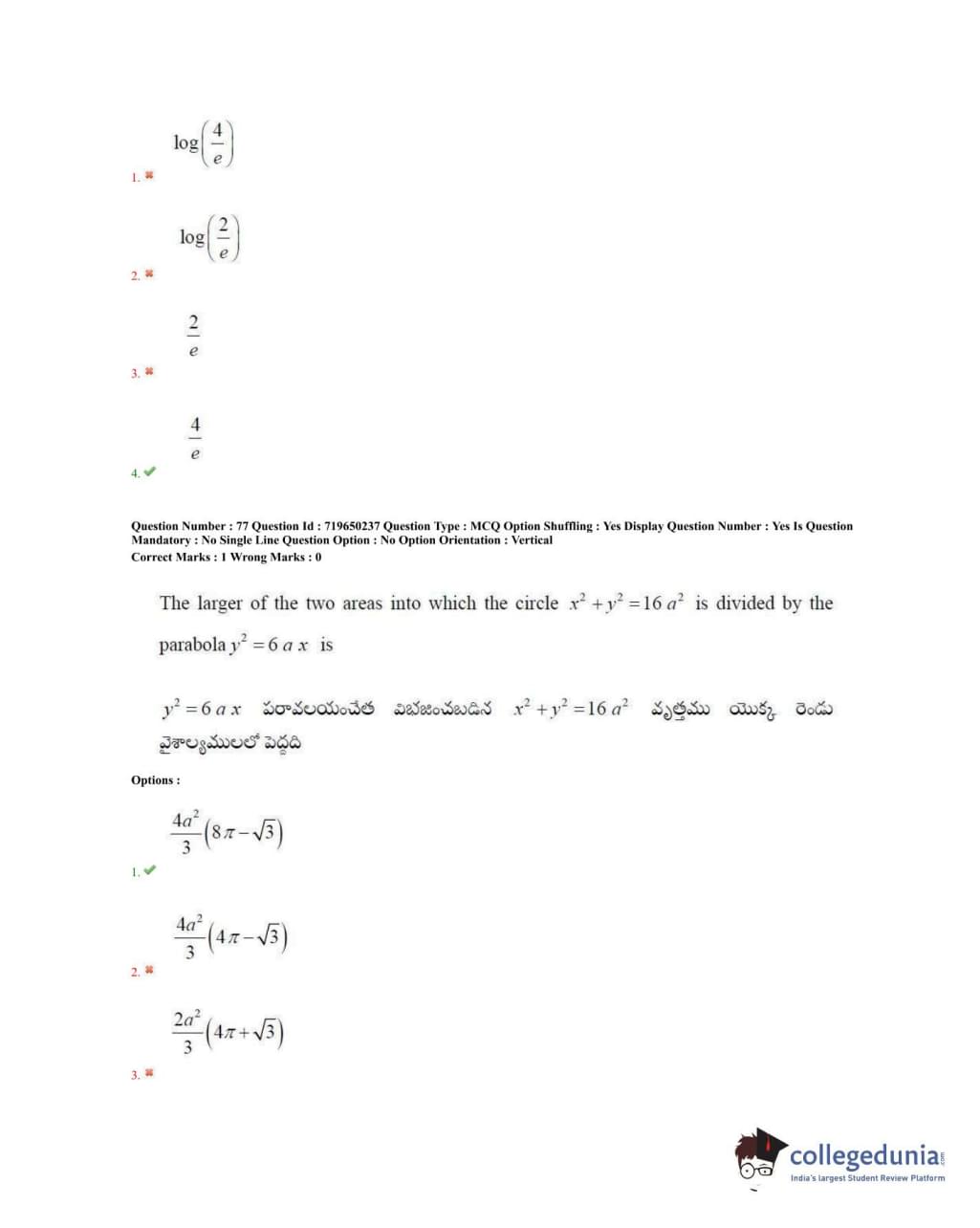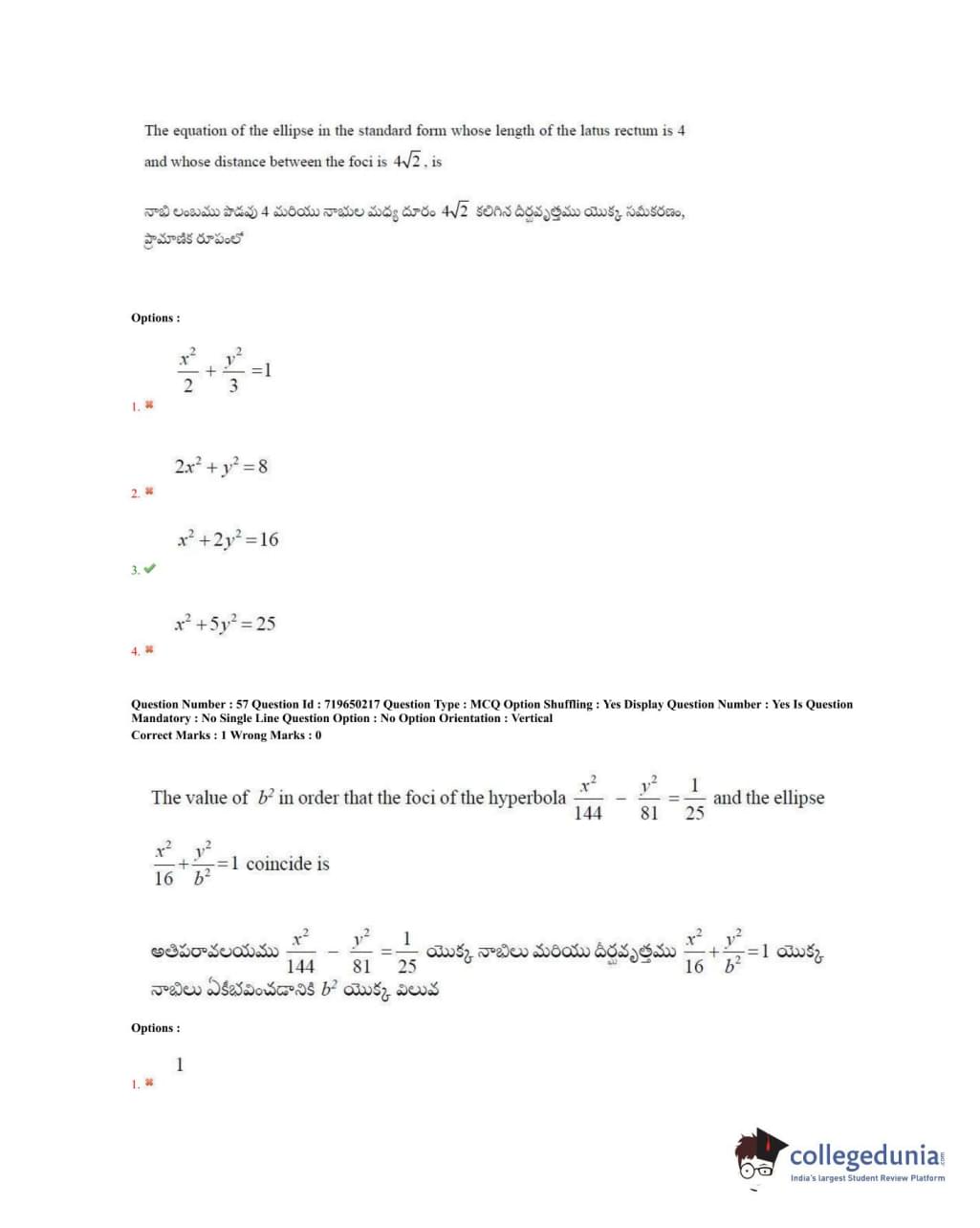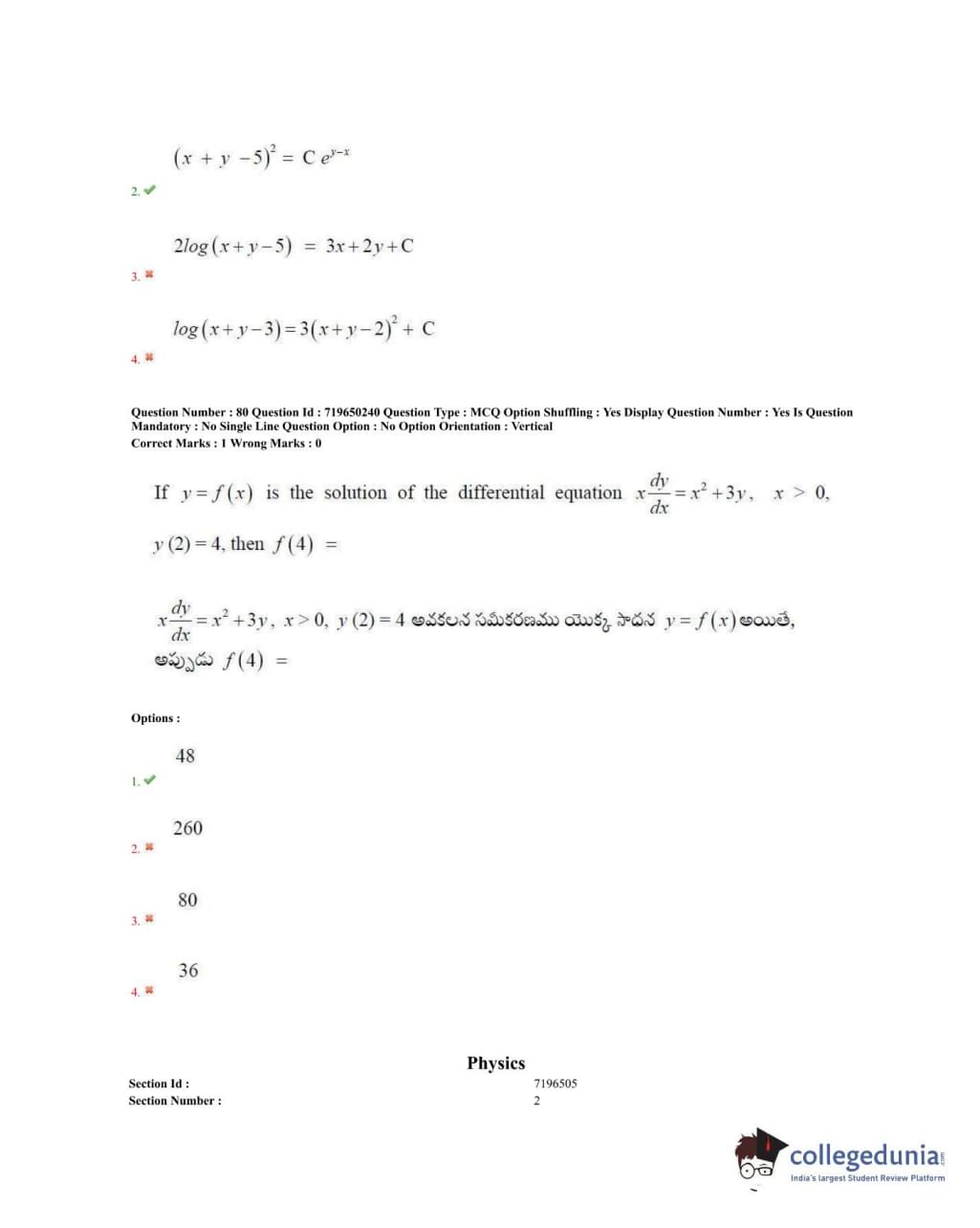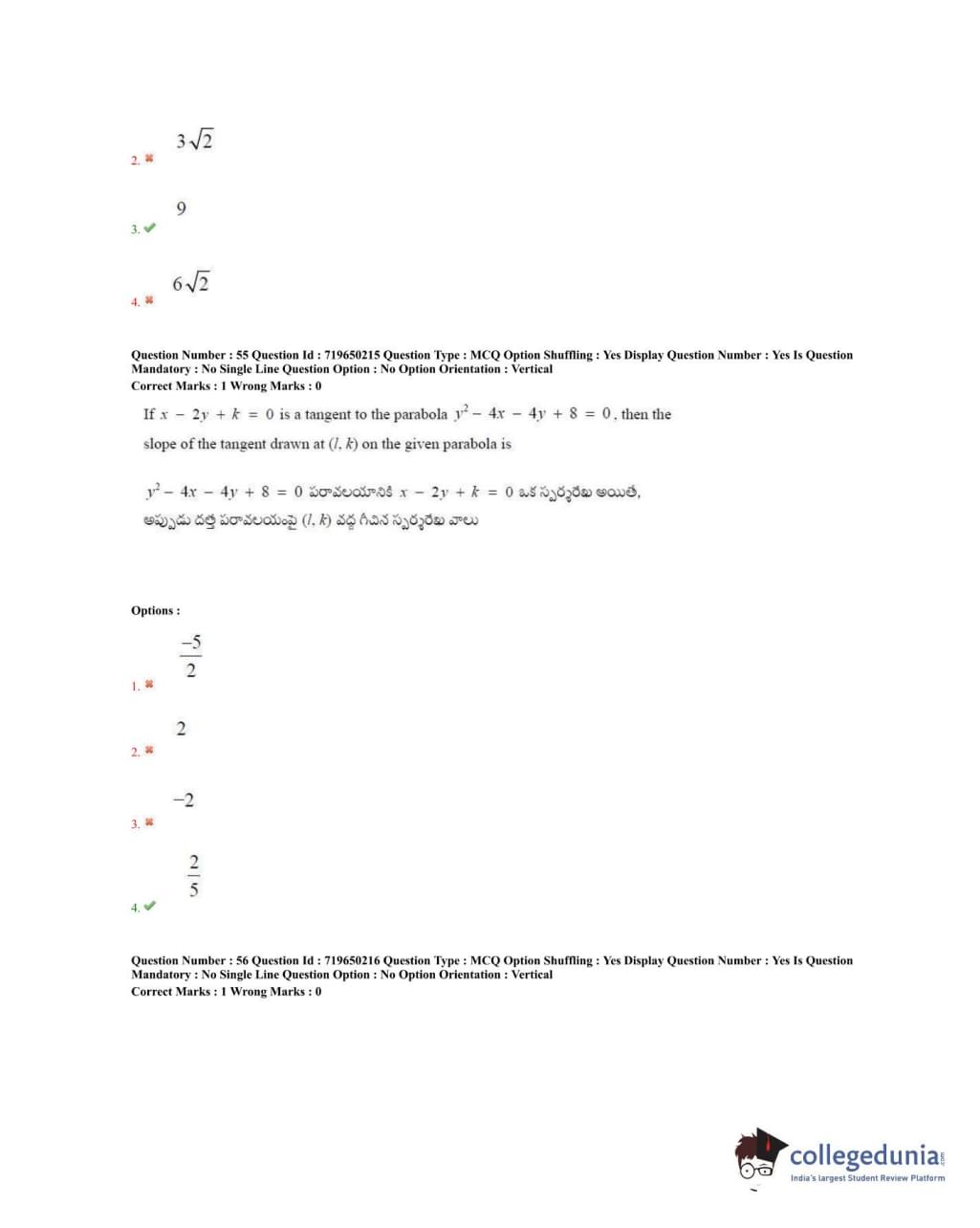 TS EAMCET 2020 Engineering Question Paper with Answer Key PDFs Forenoon Session