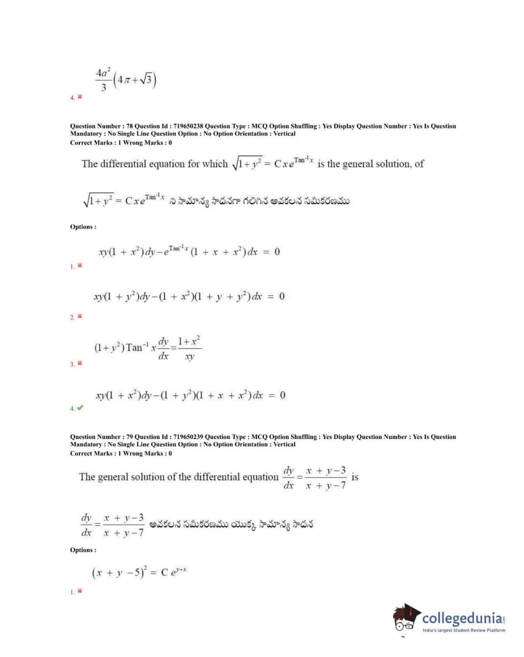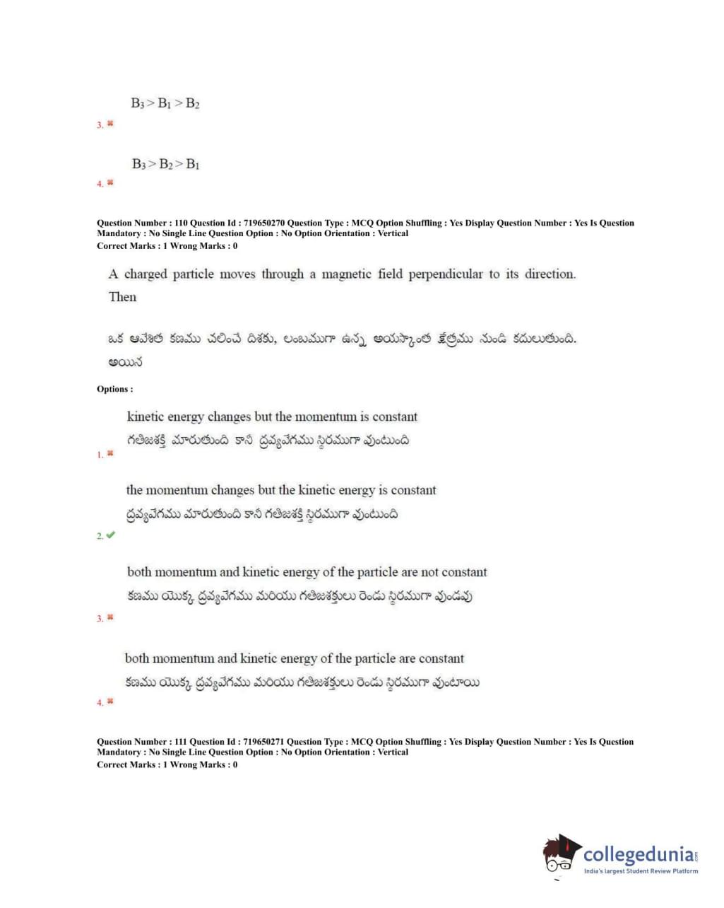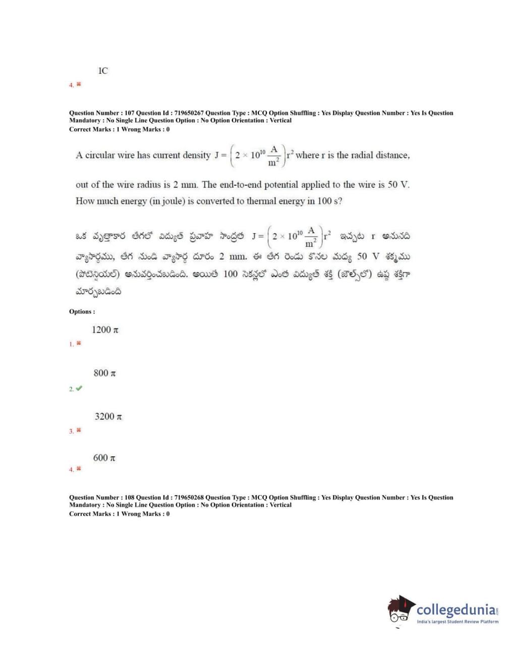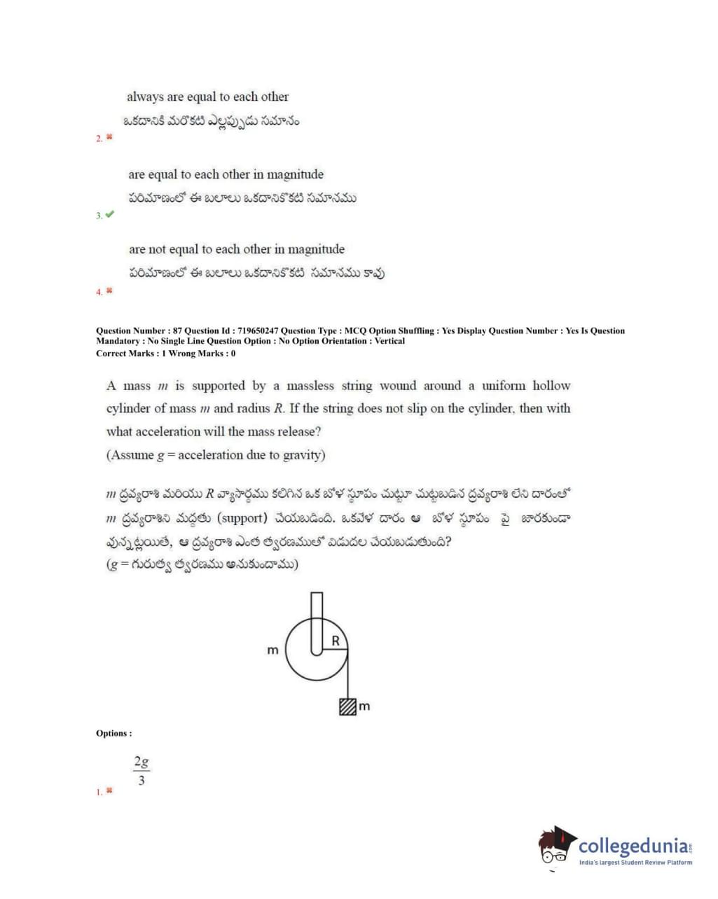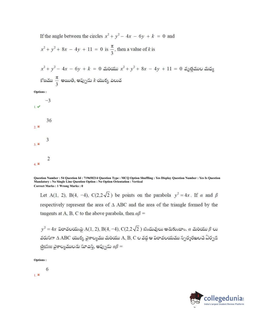 TS EAMCET 2020 Engineering Question Paper with Answer Key PDFs Forenoon Session