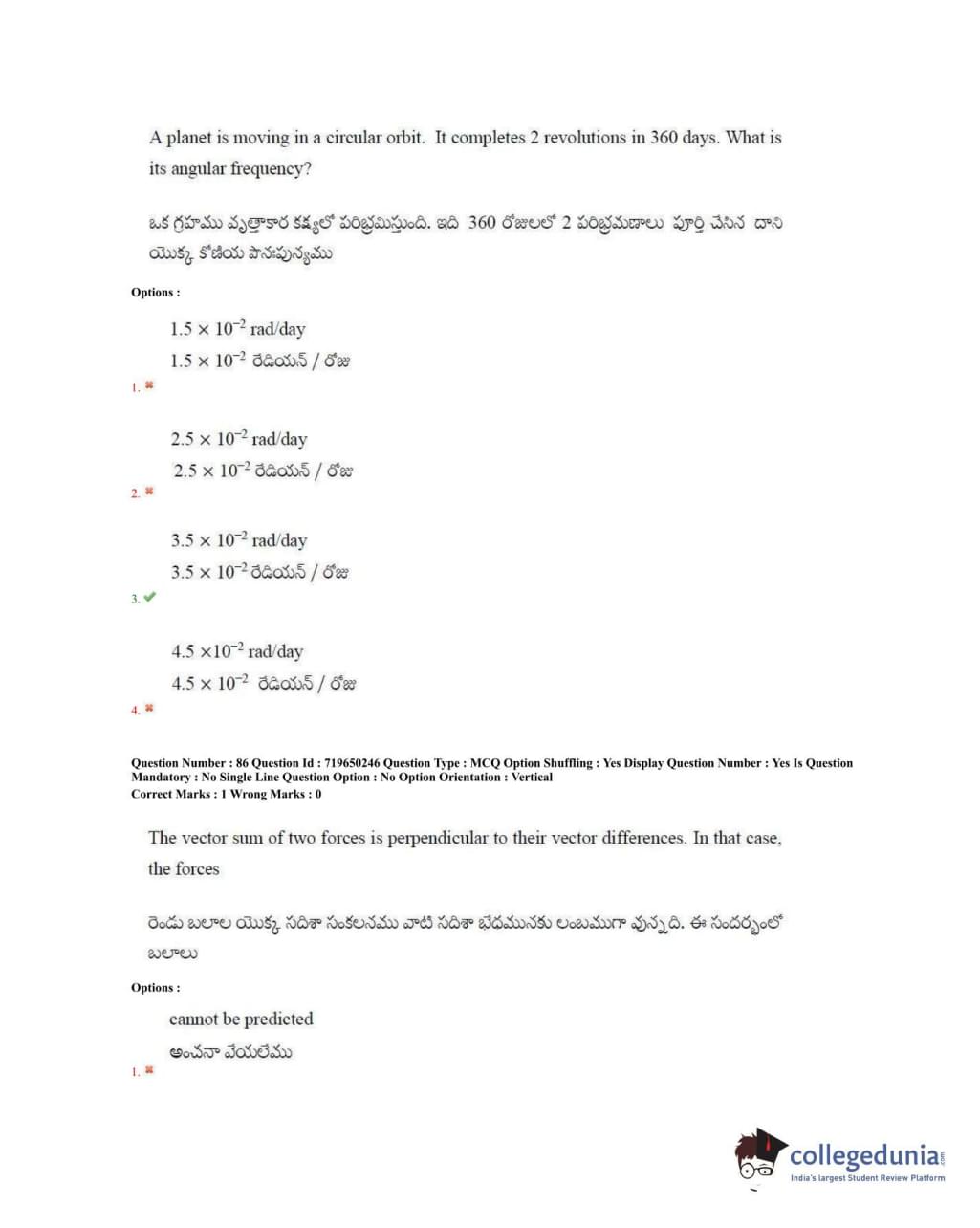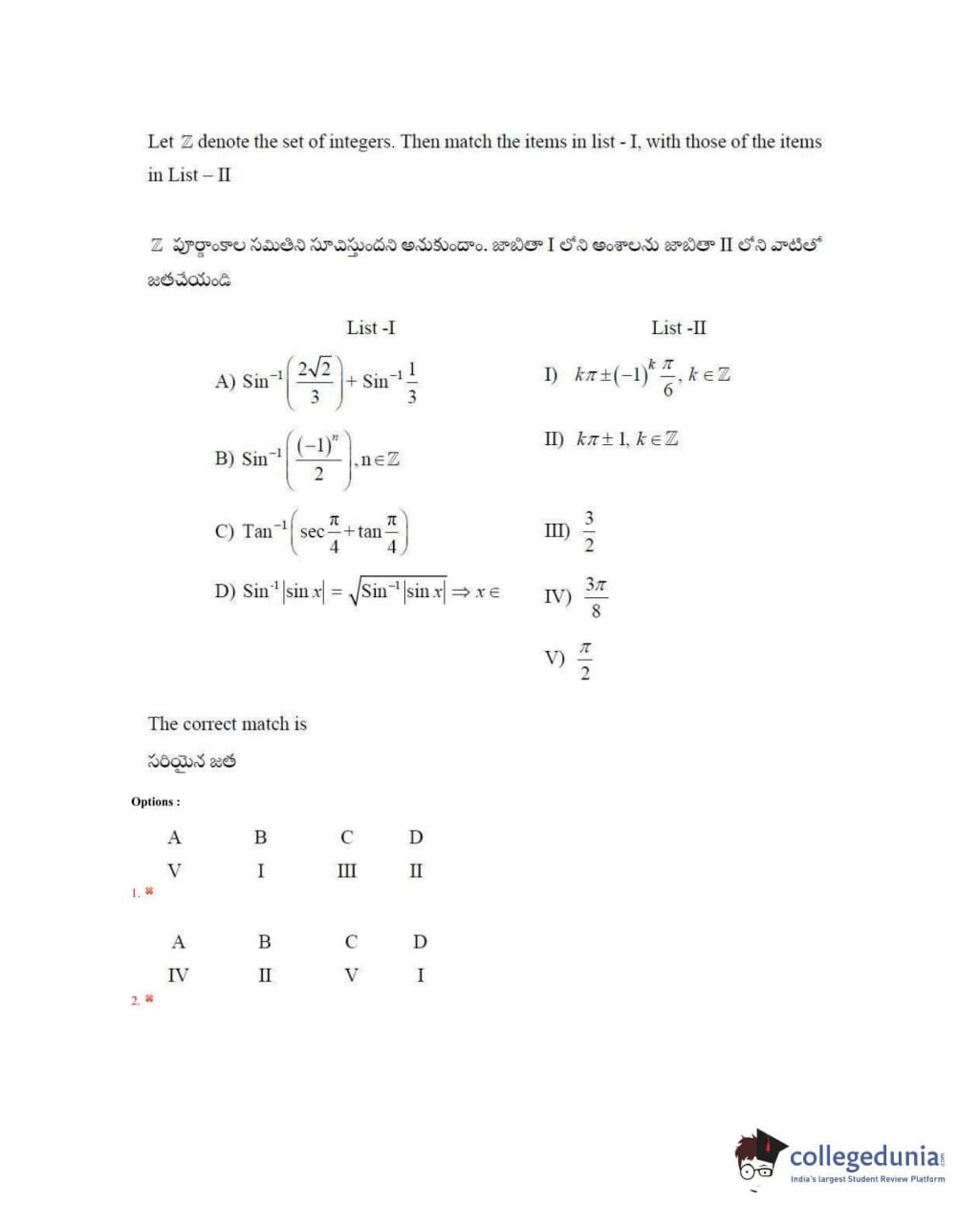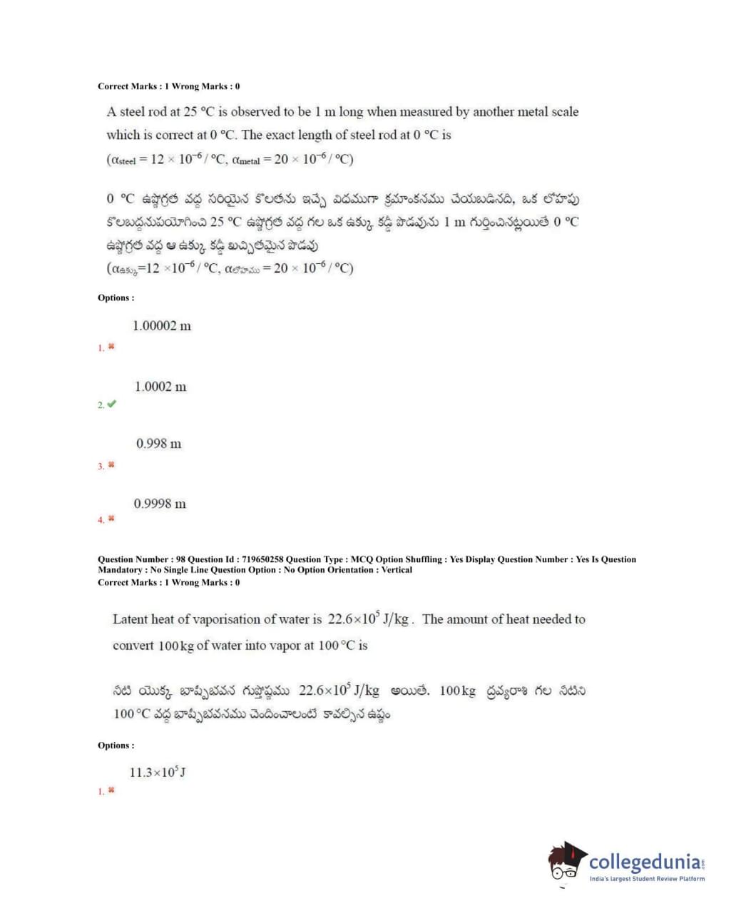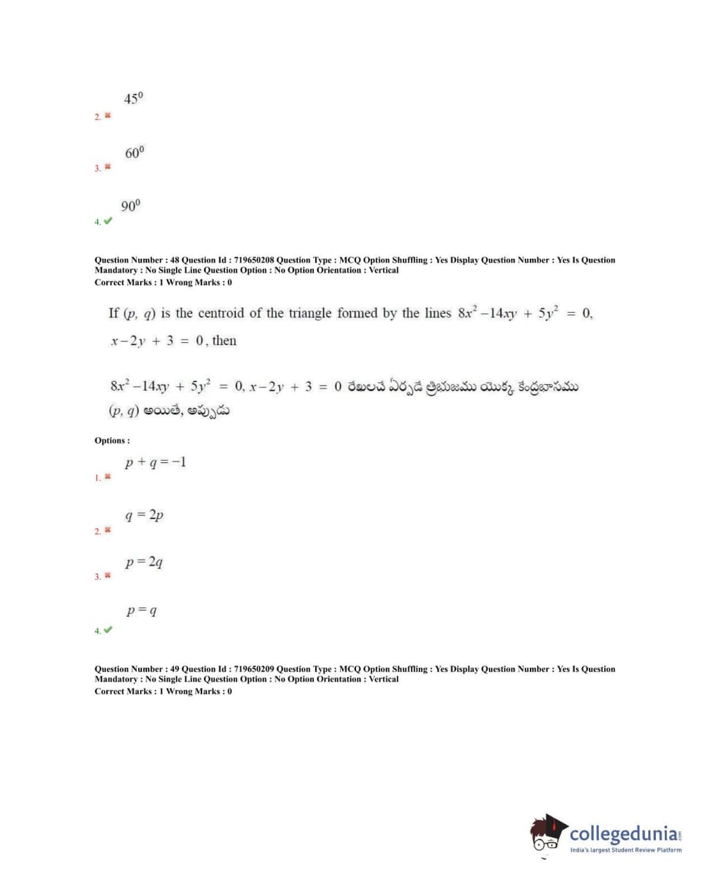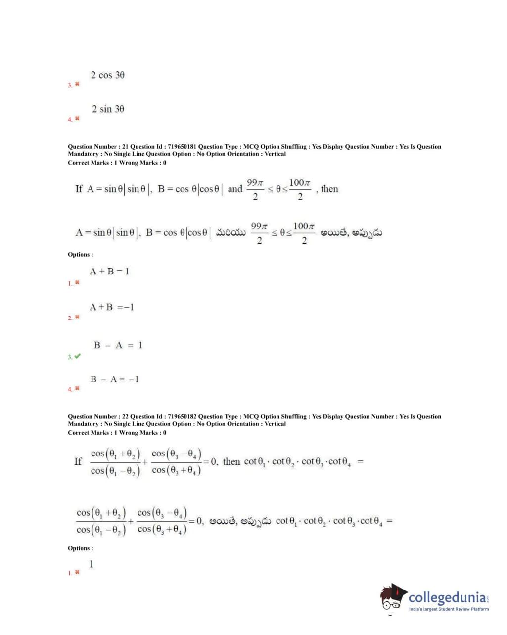 TS EAMCET 2020 Engineering Question Paper with Answer Key PDFs Forenoon Session