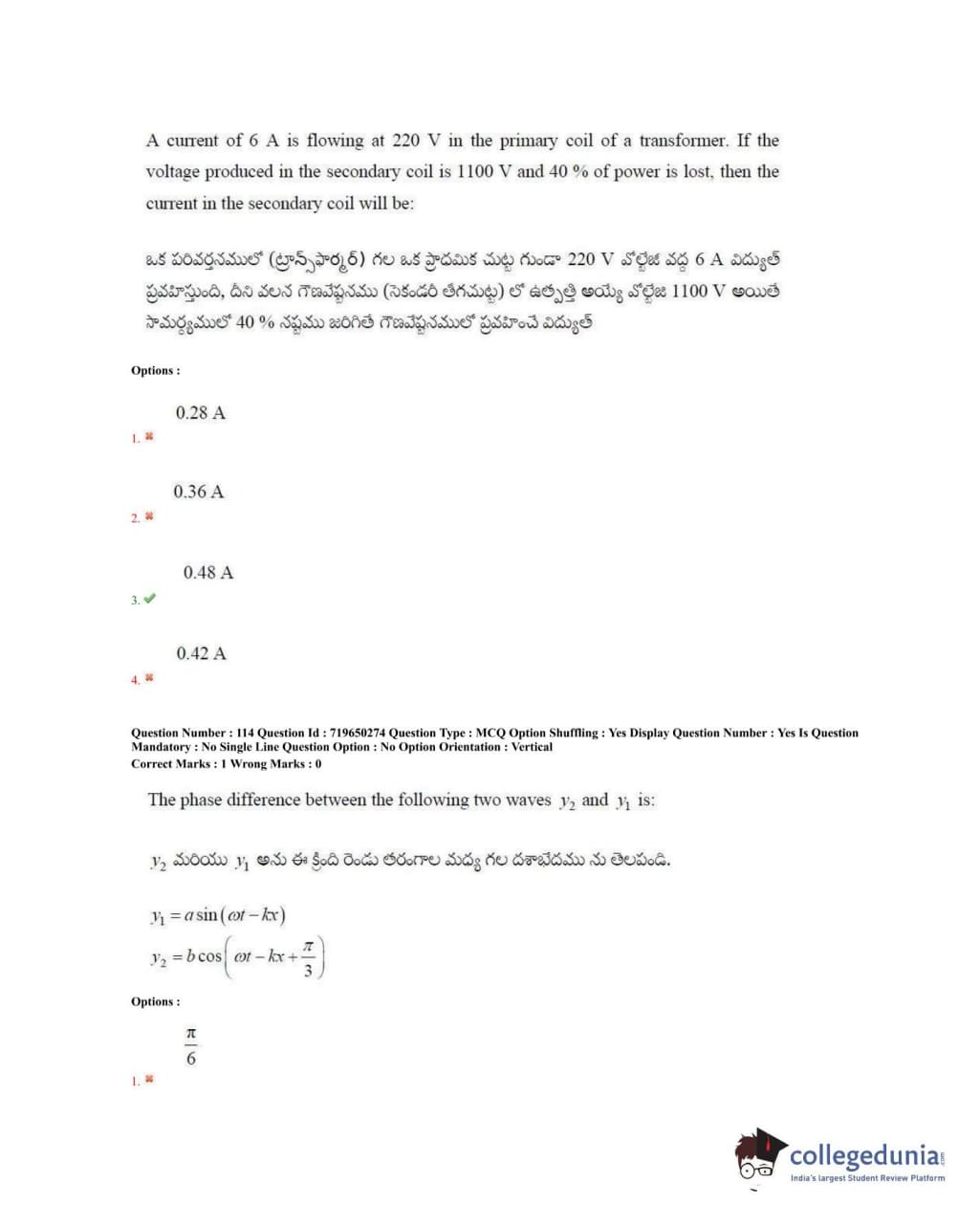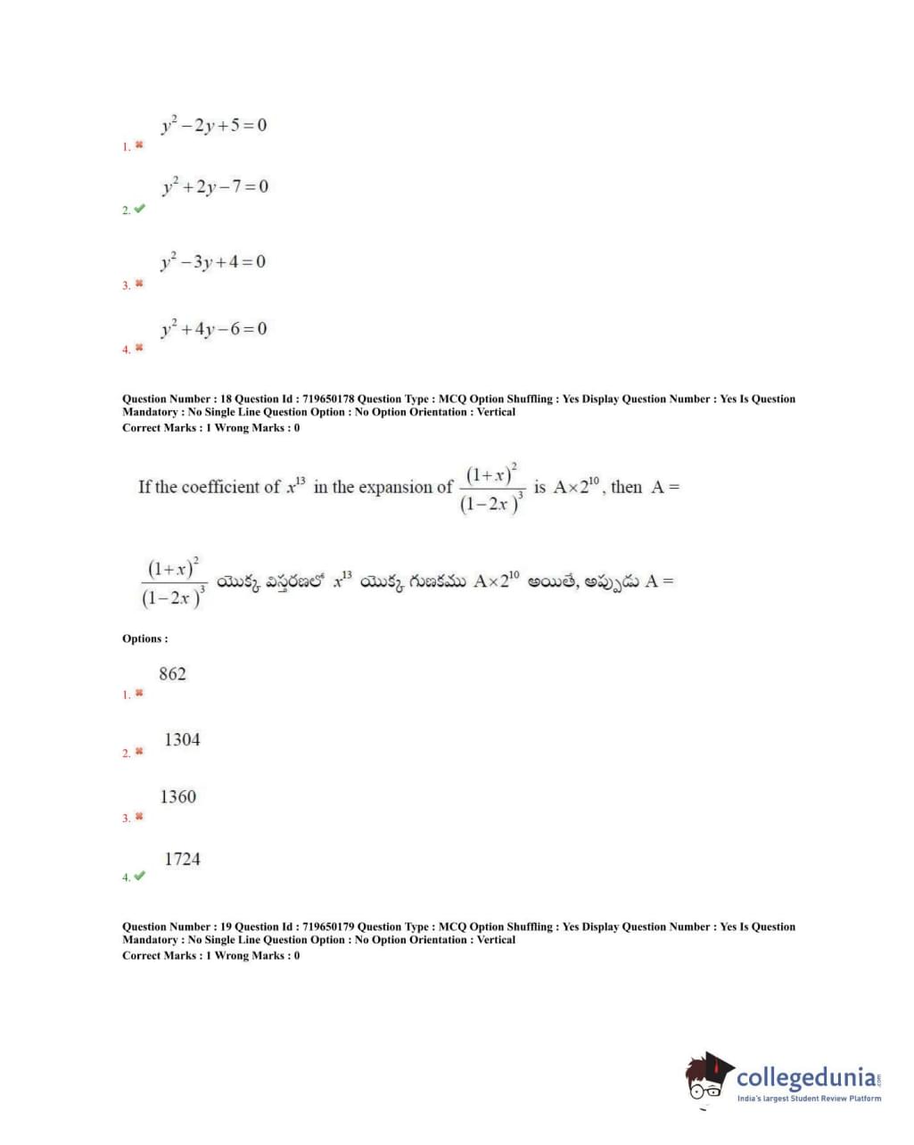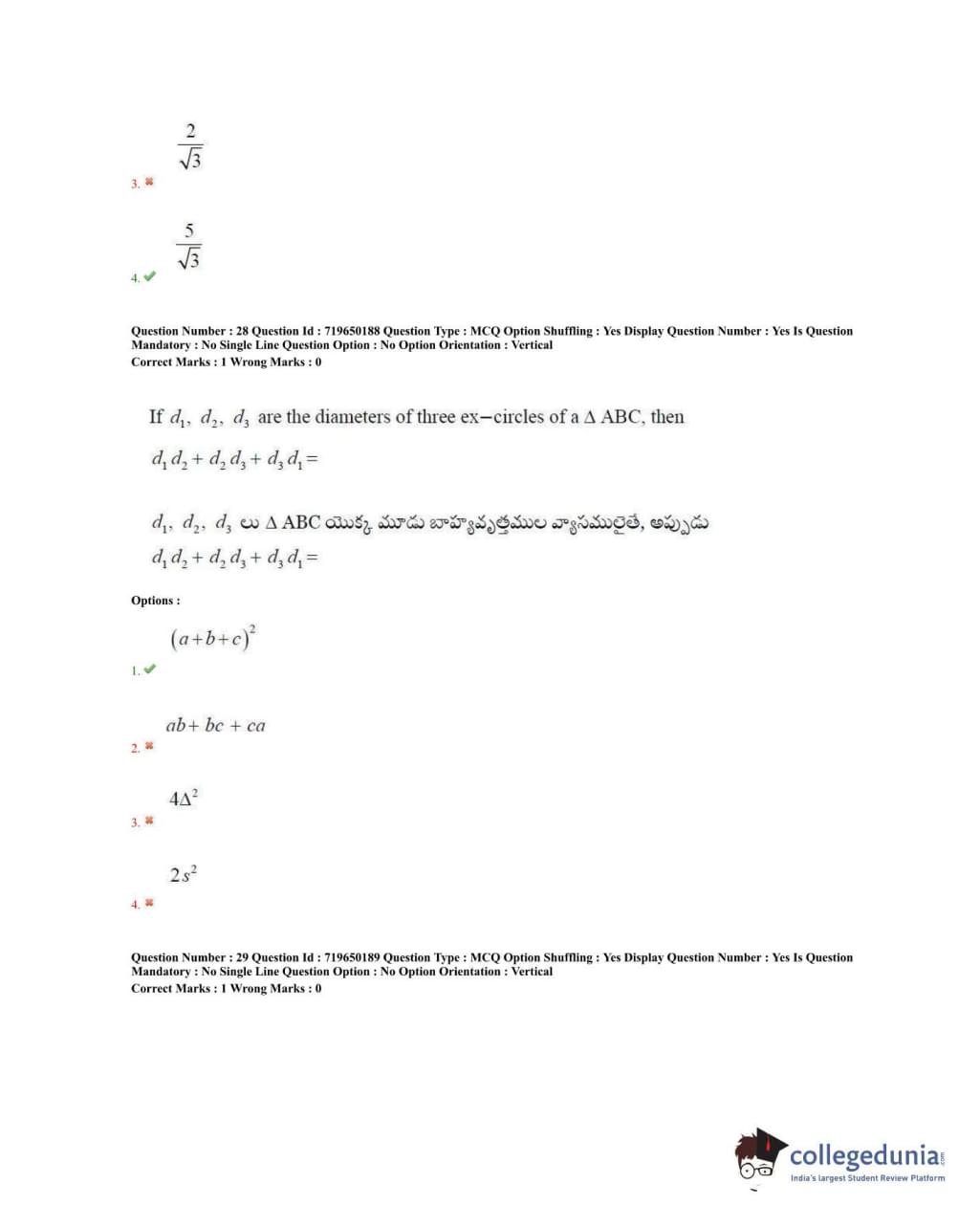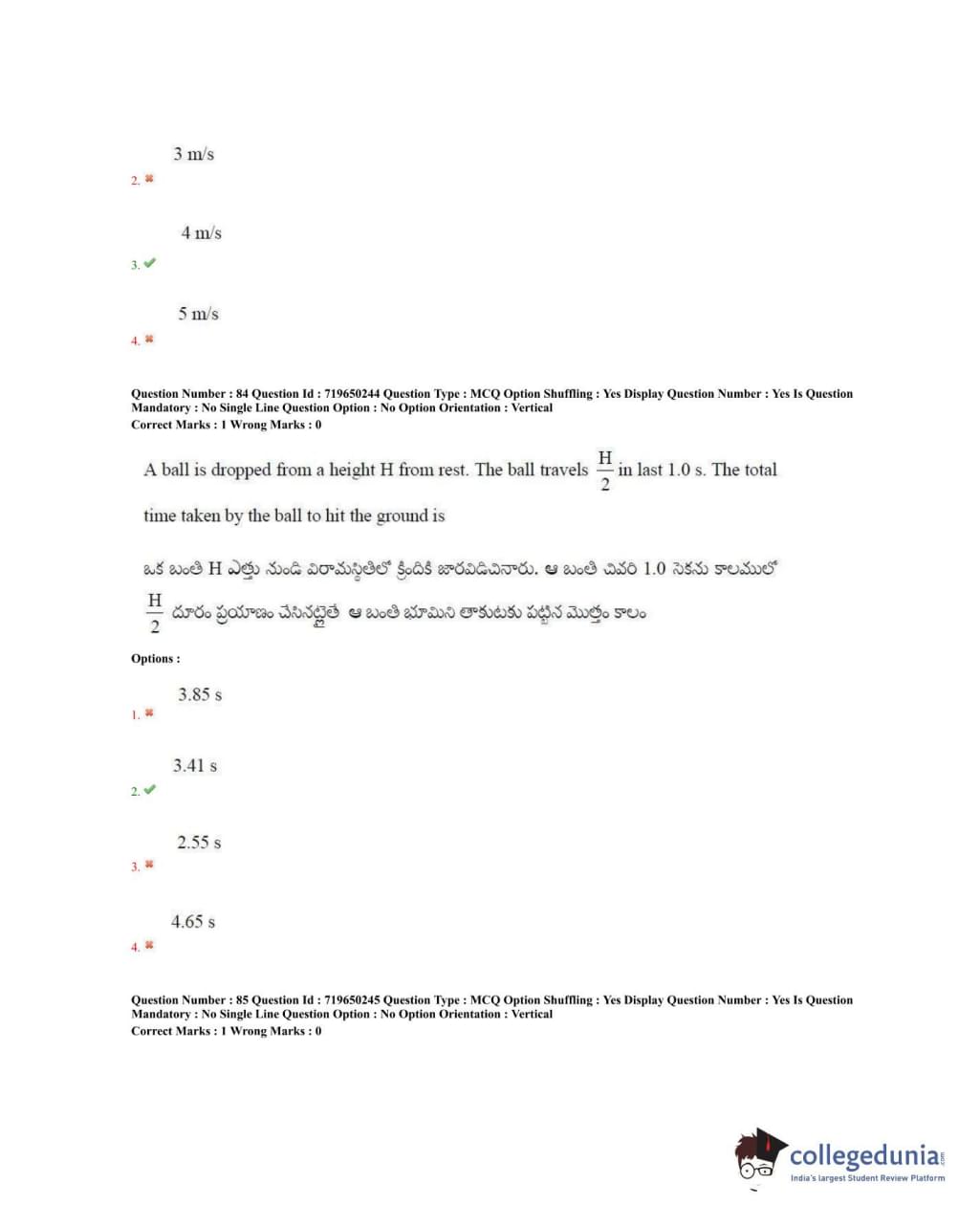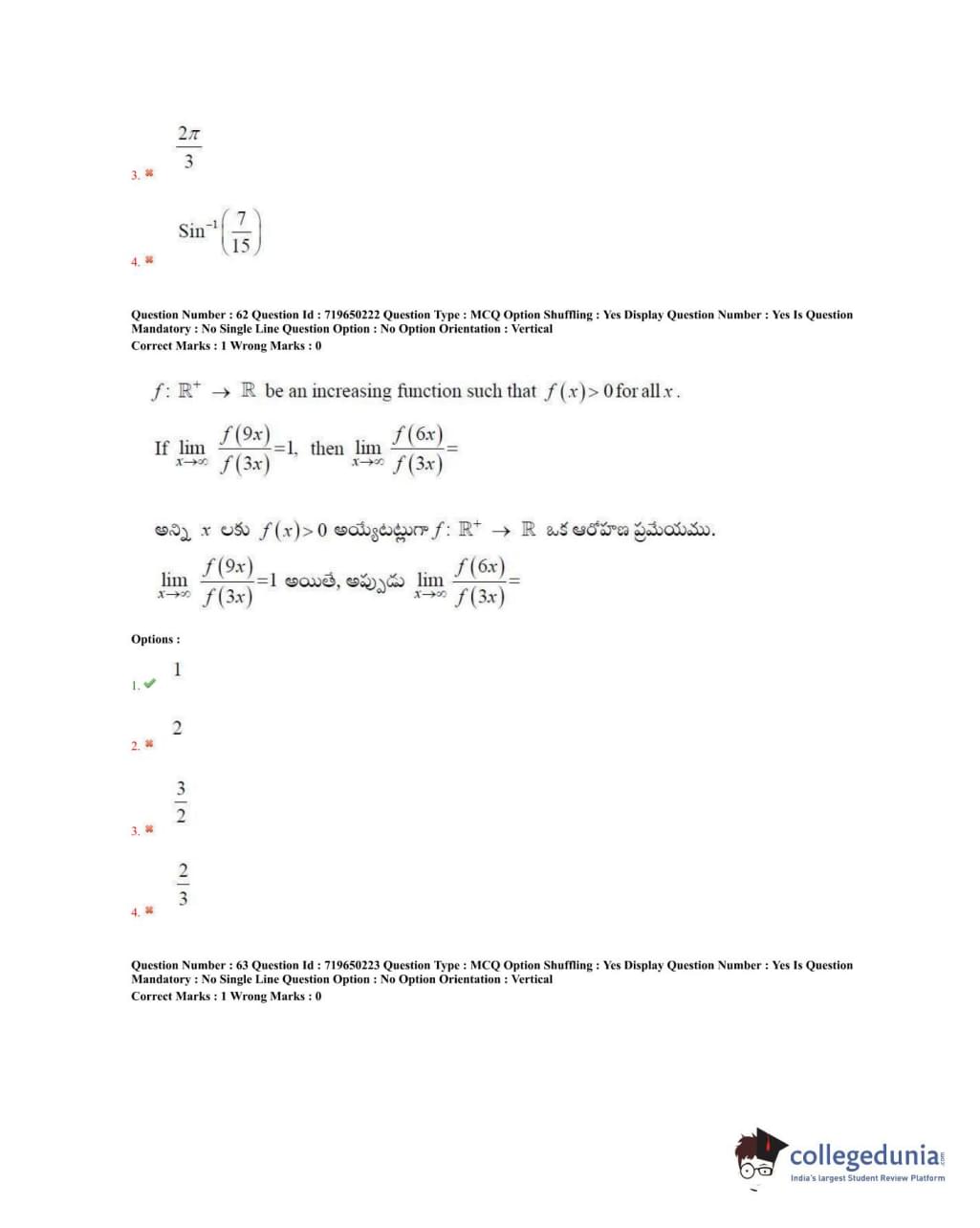 TS EAMCET 2020 Engineering Question Paper with Answer Key PDFs Forenoon Session