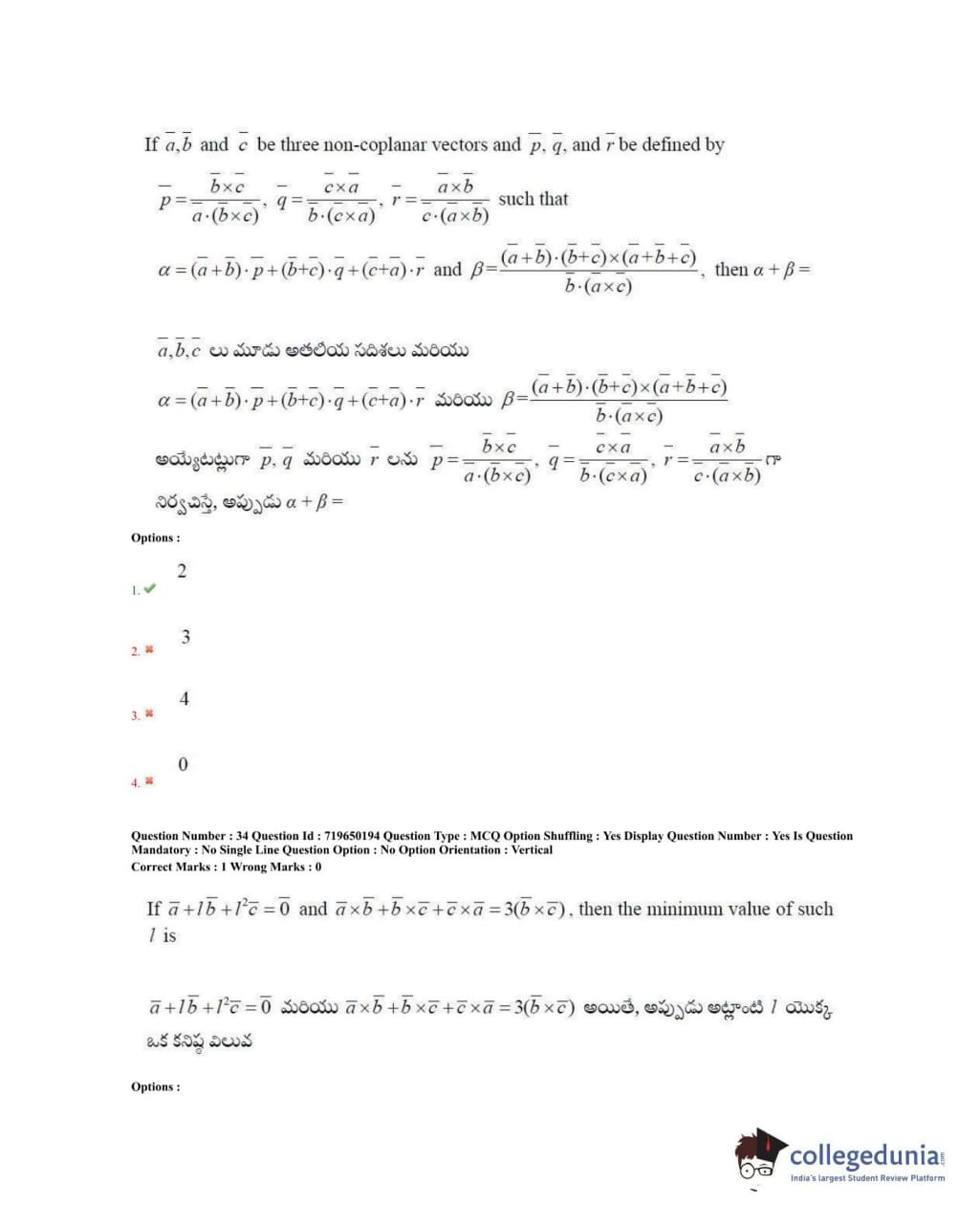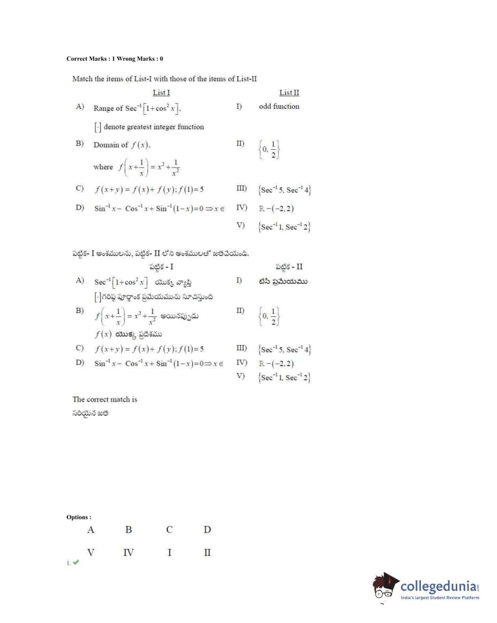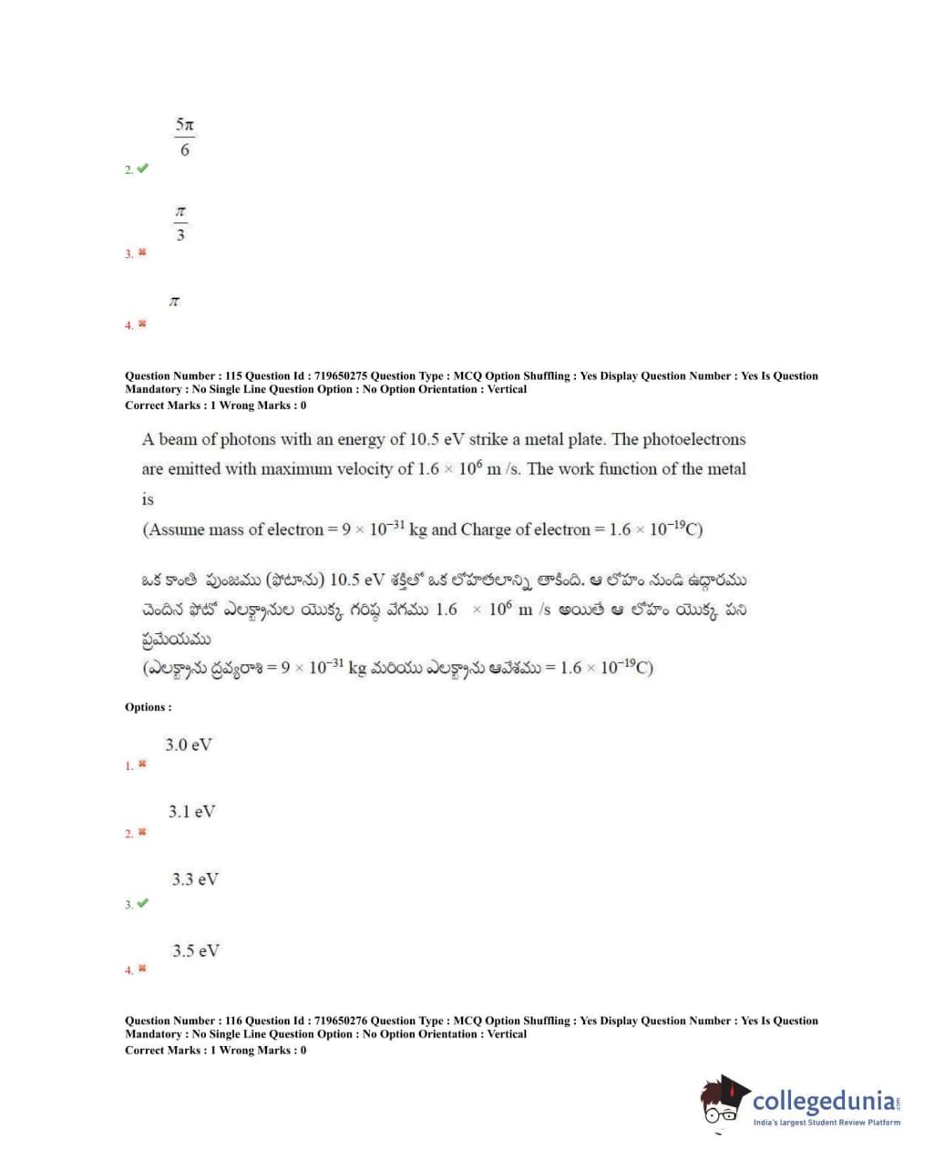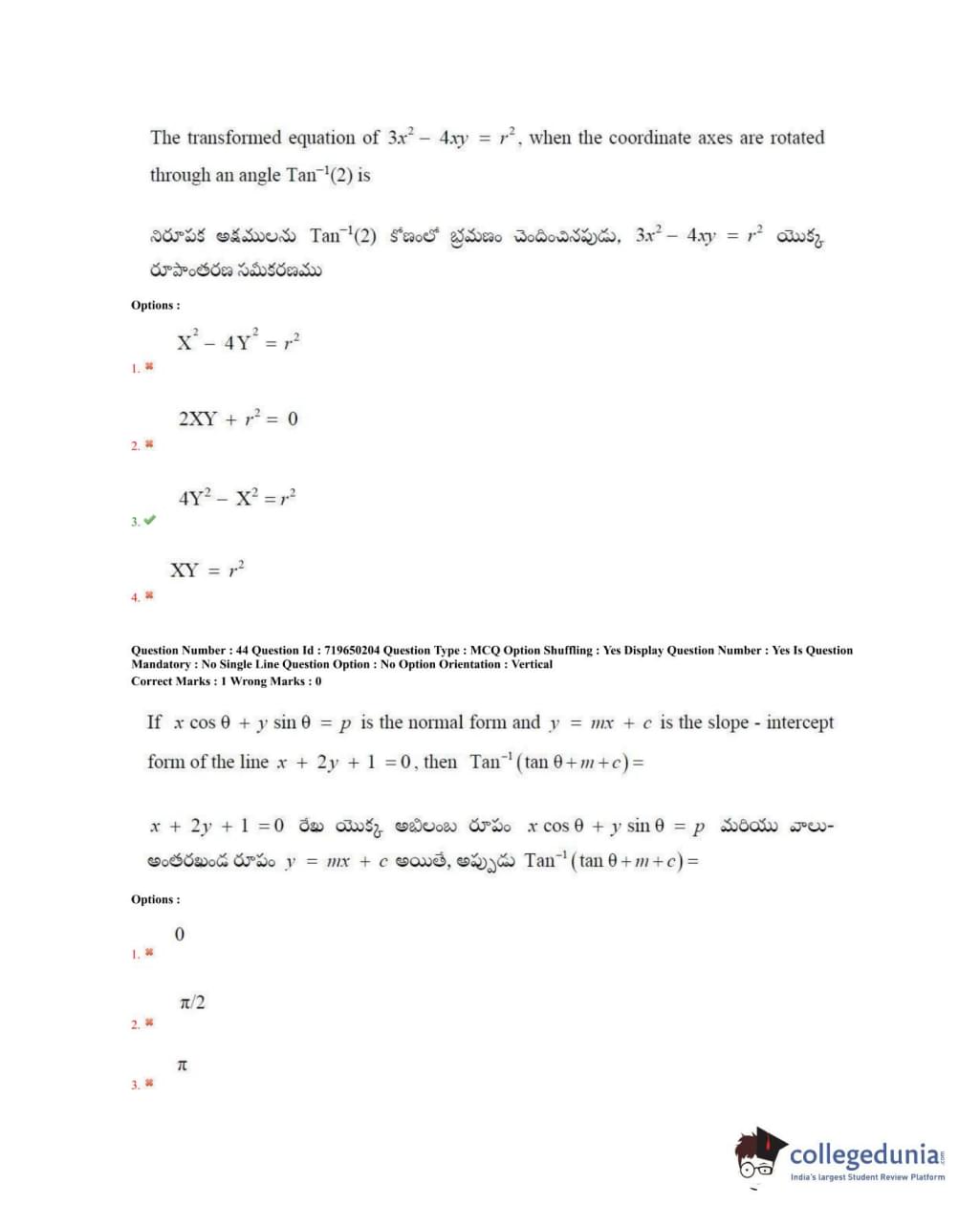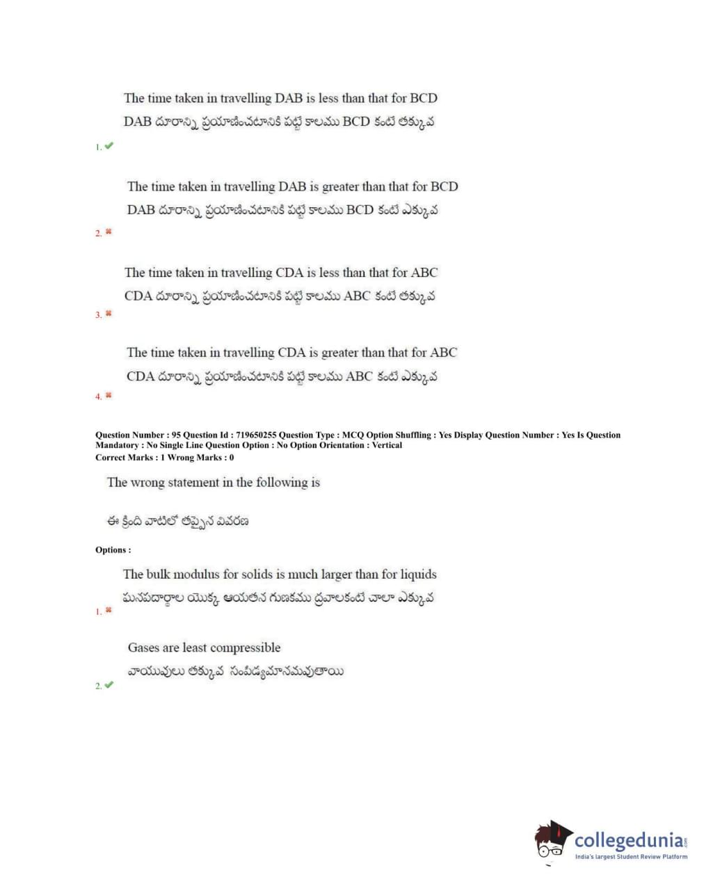 TS EAMCET 2020 Engineering Question Paper with Answer Key PDFs Forenoon Session