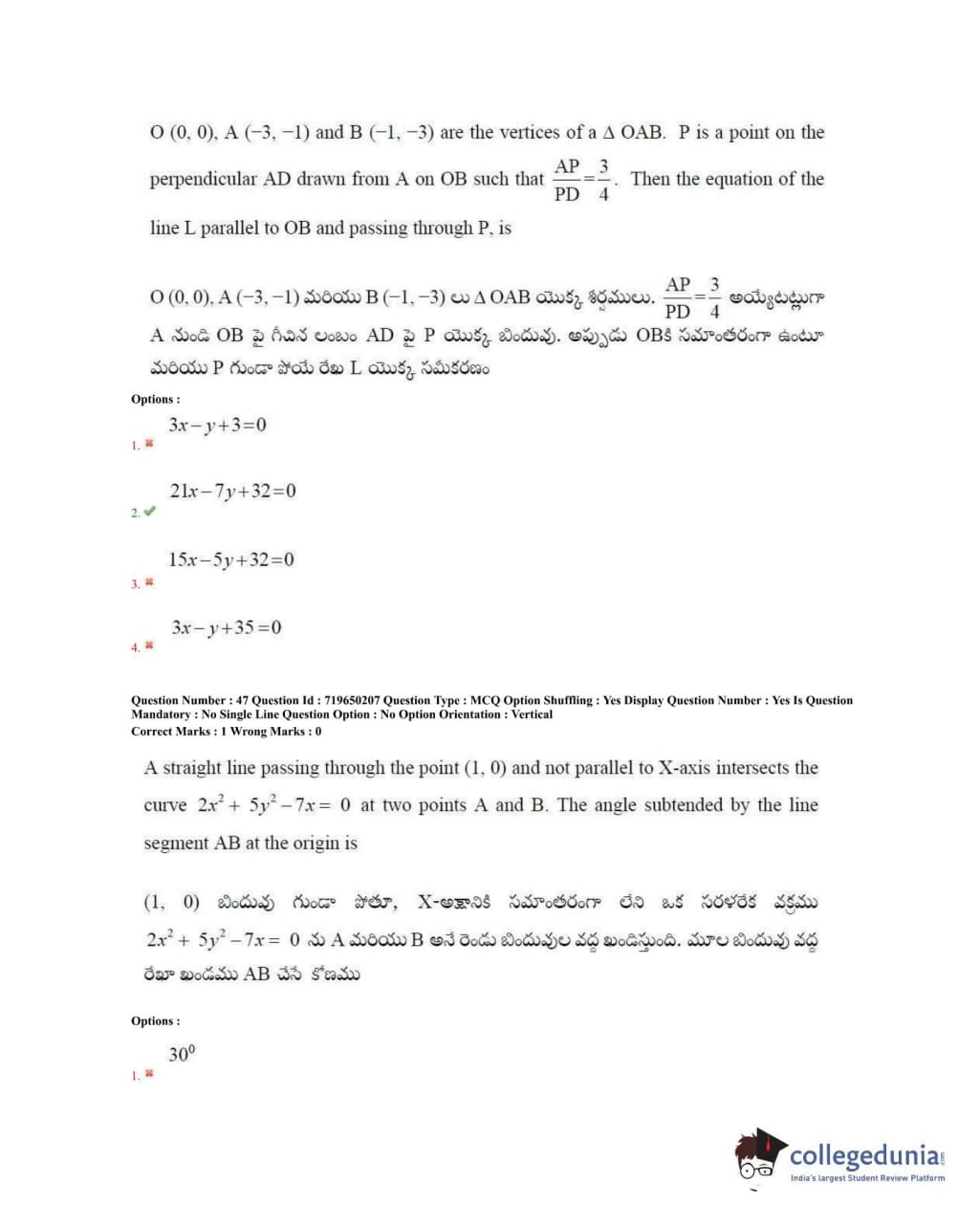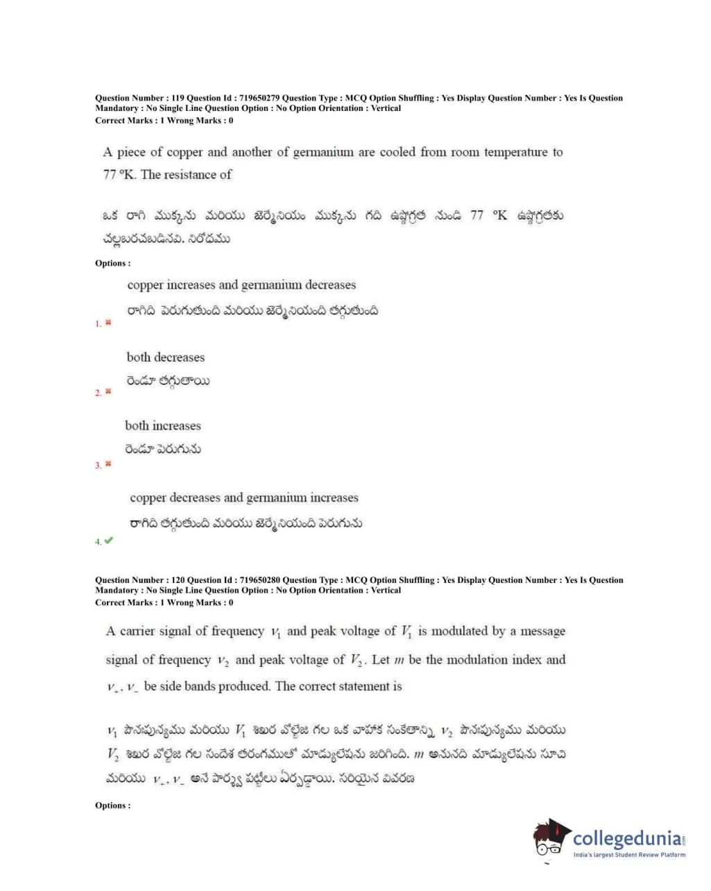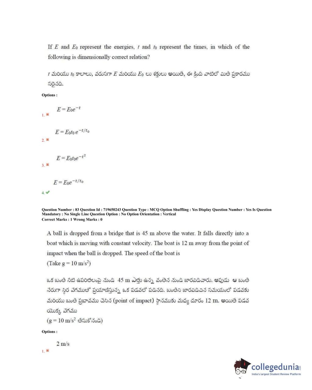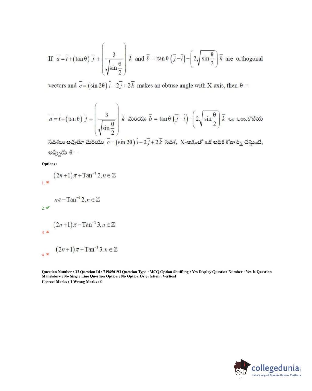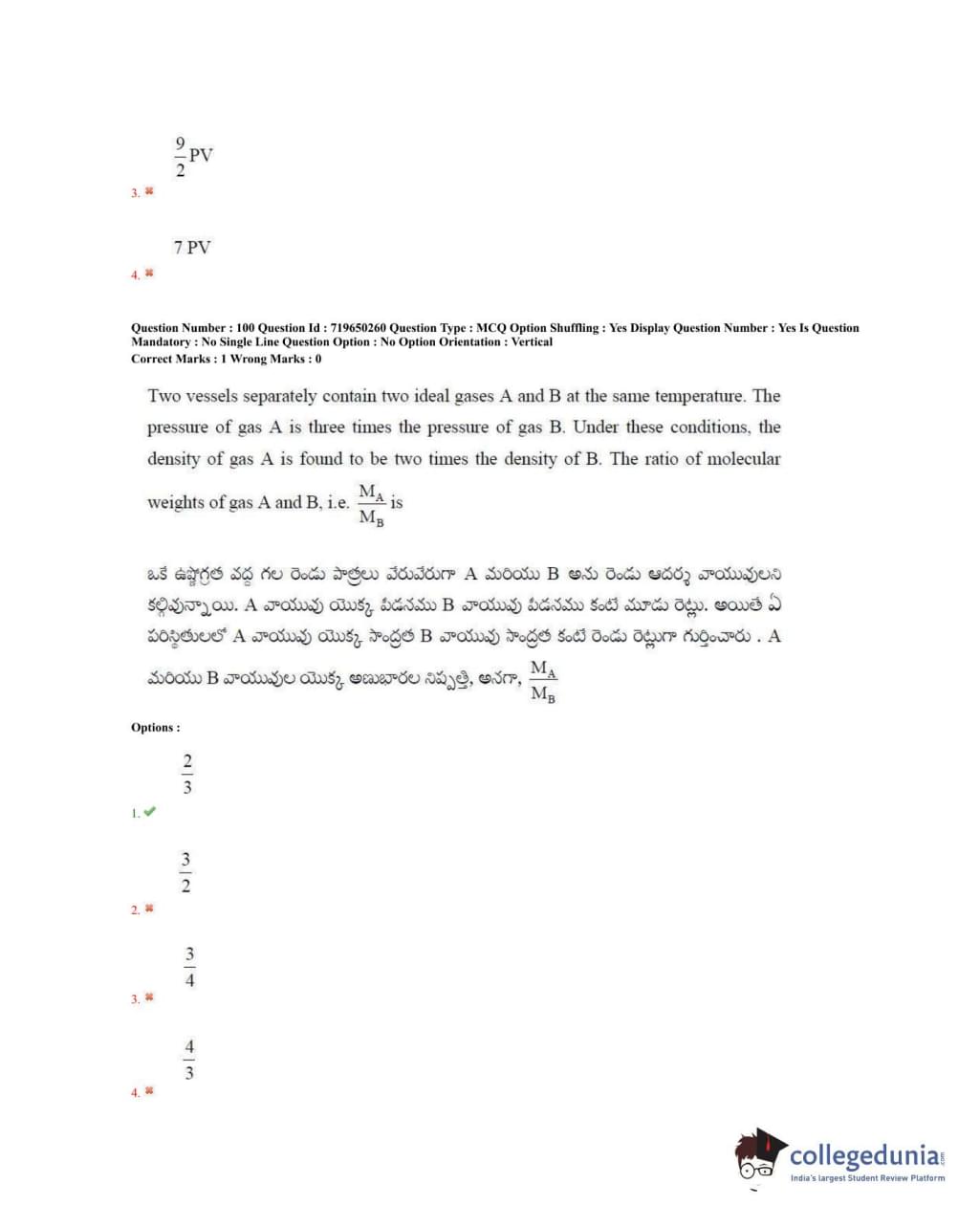 TS EAMCET 2020 Engineering Question Paper with Answer Key PDFs Forenoon Session