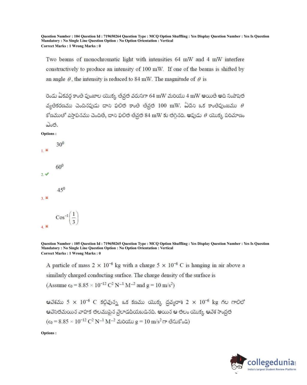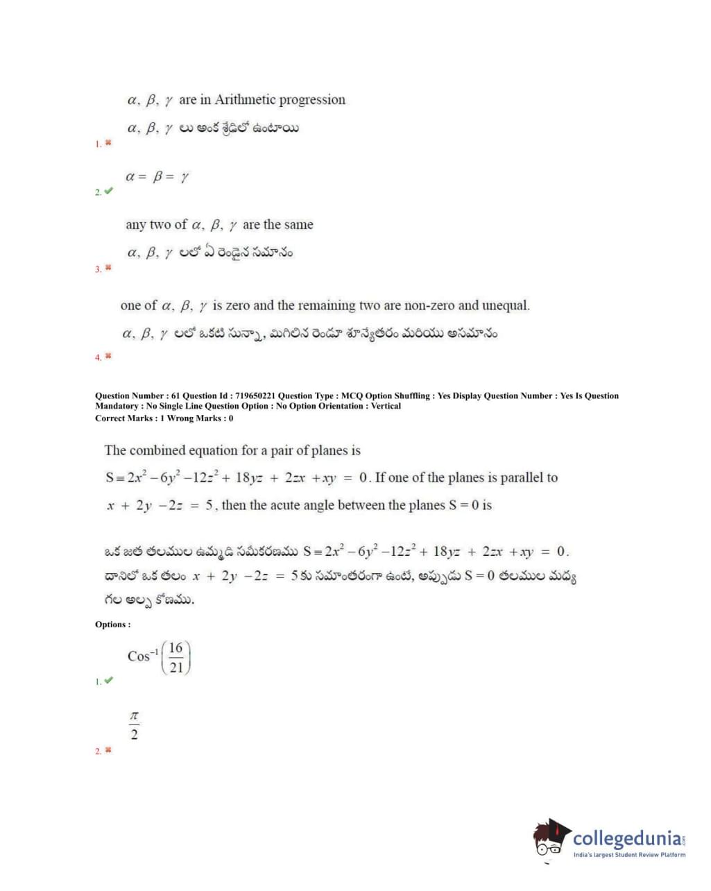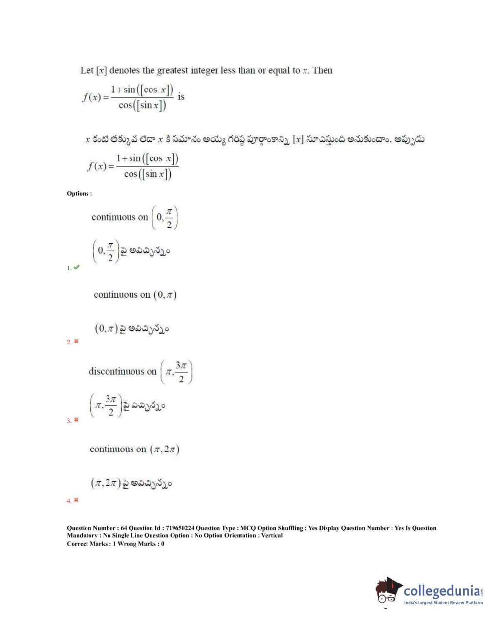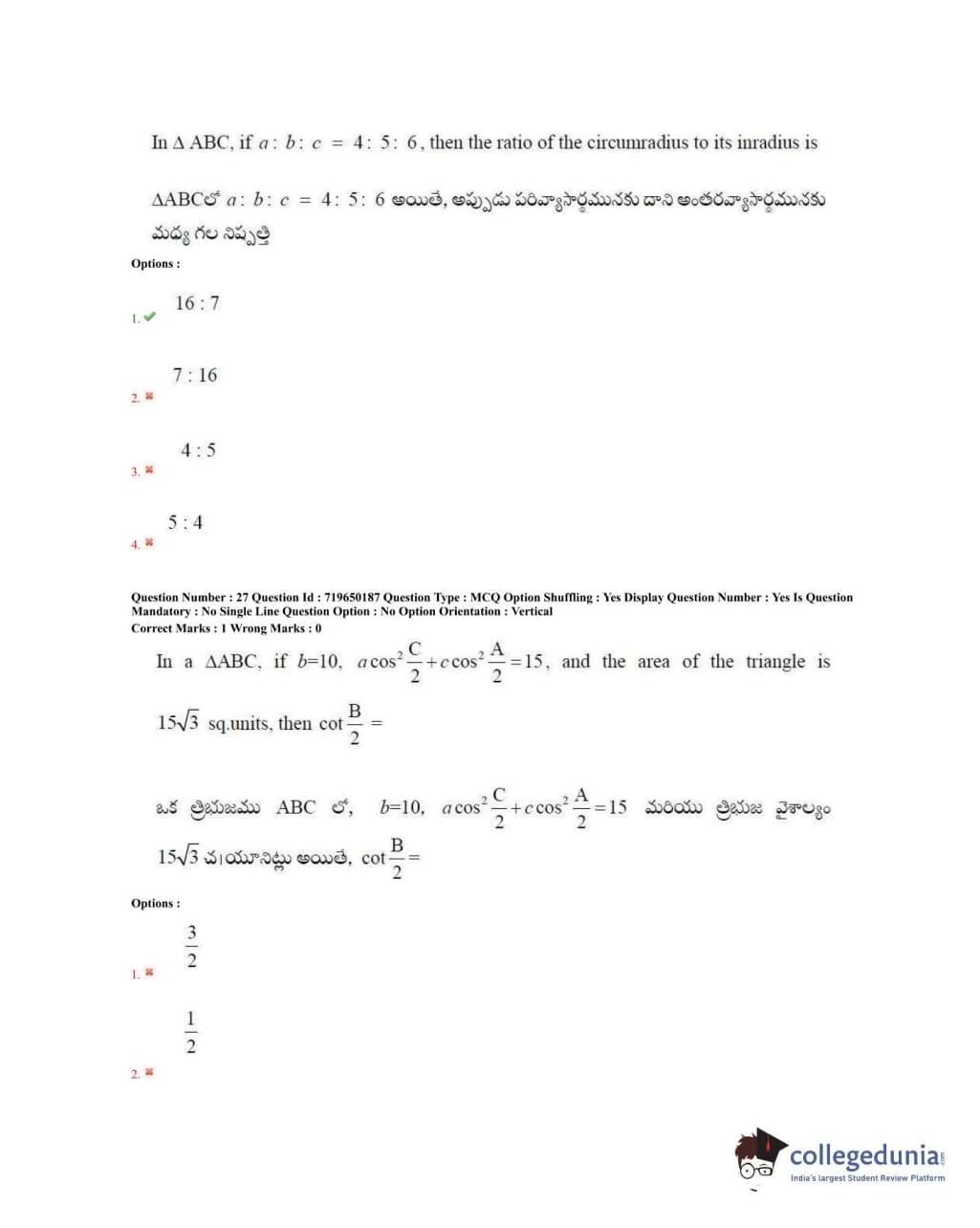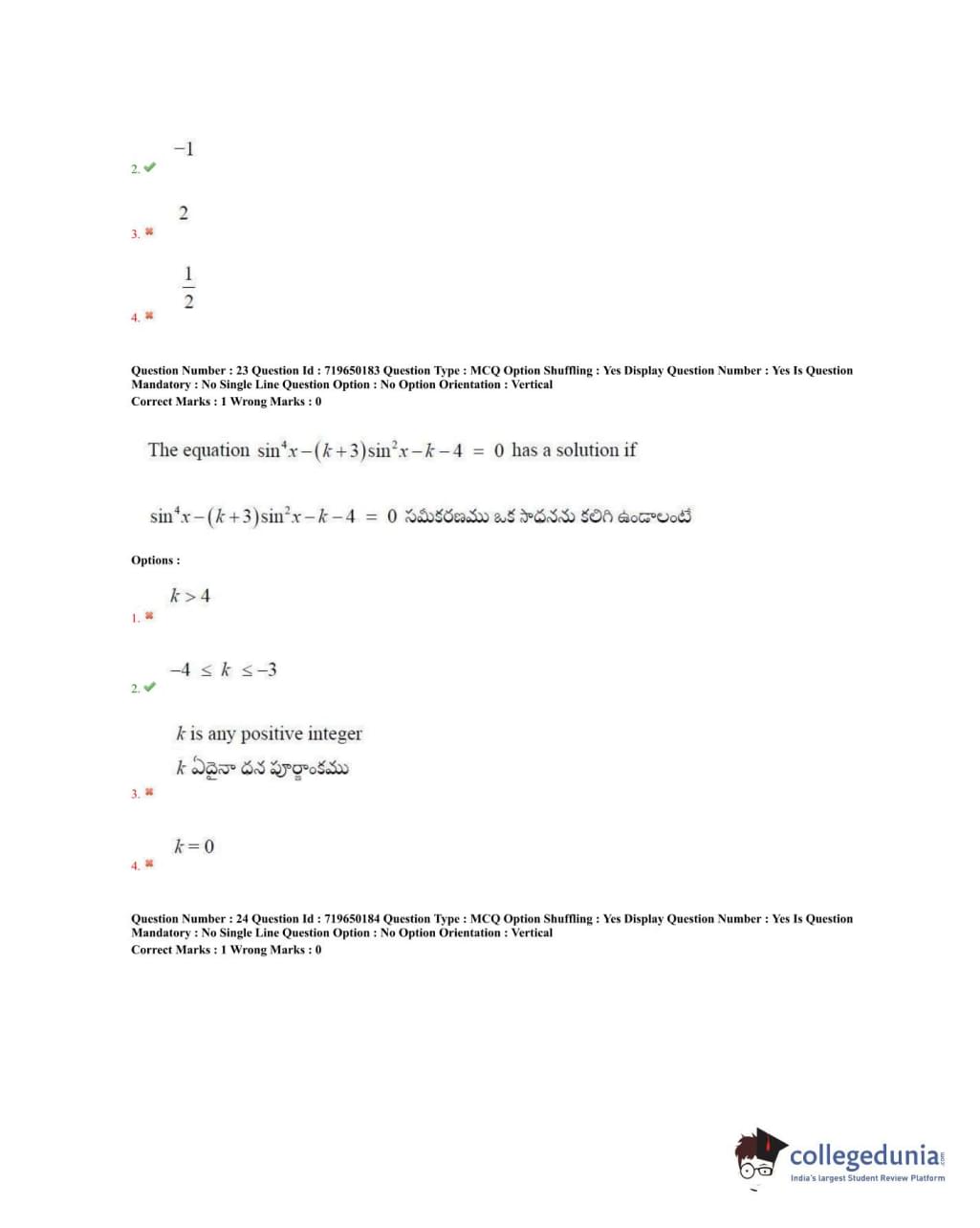 TS EAMCET 2020 Engineering Question Paper with Answer Key PDFs Forenoon Session