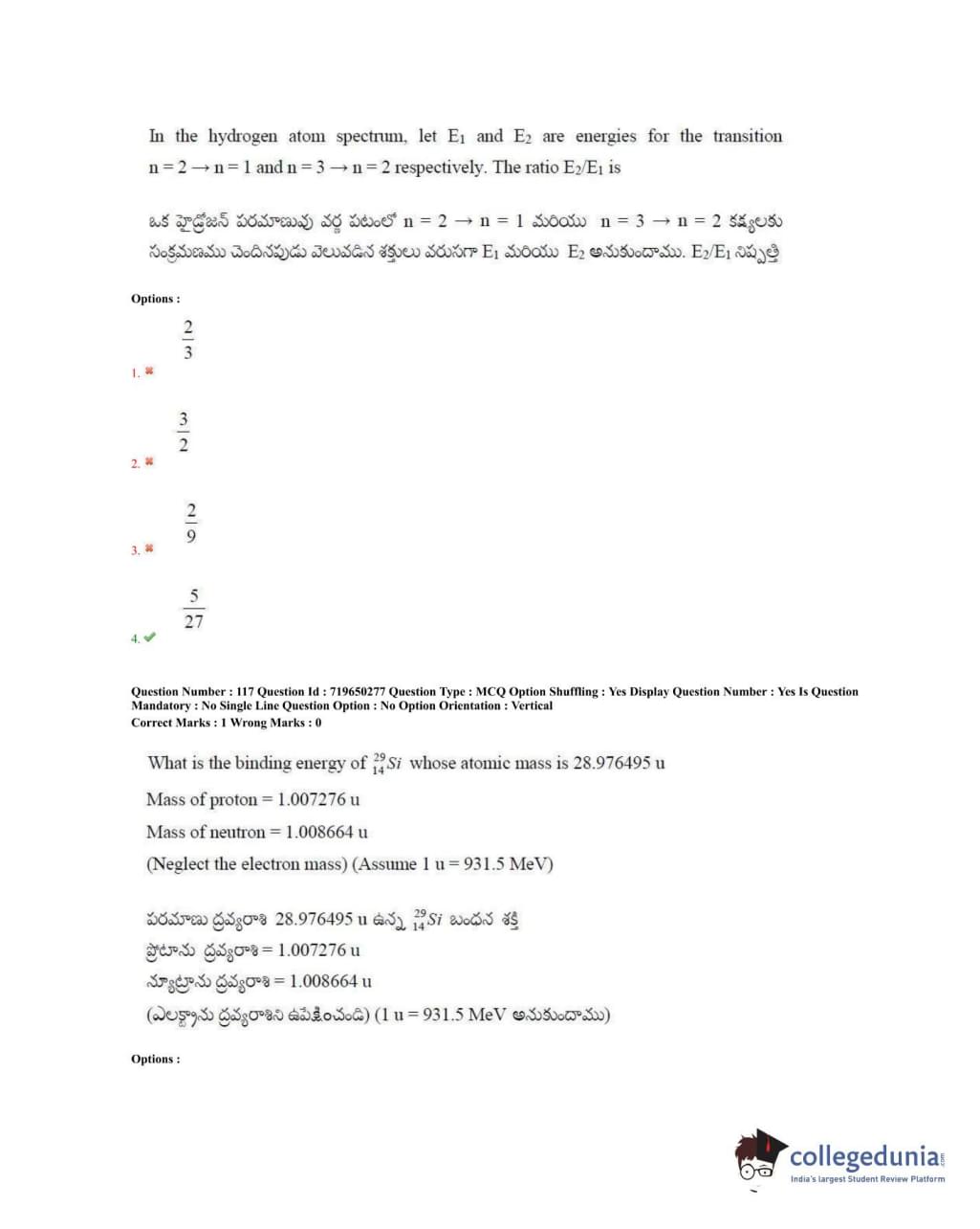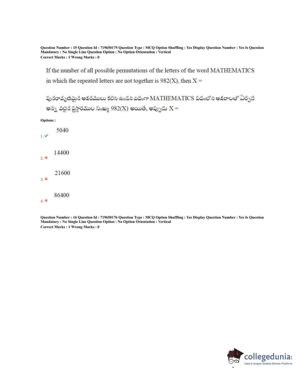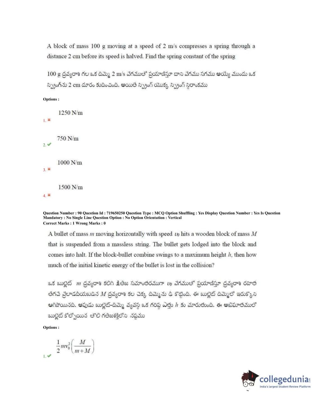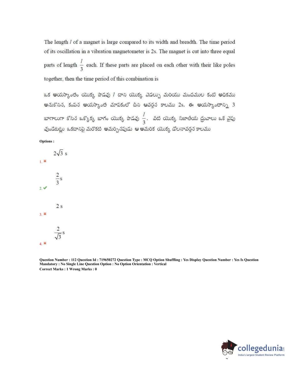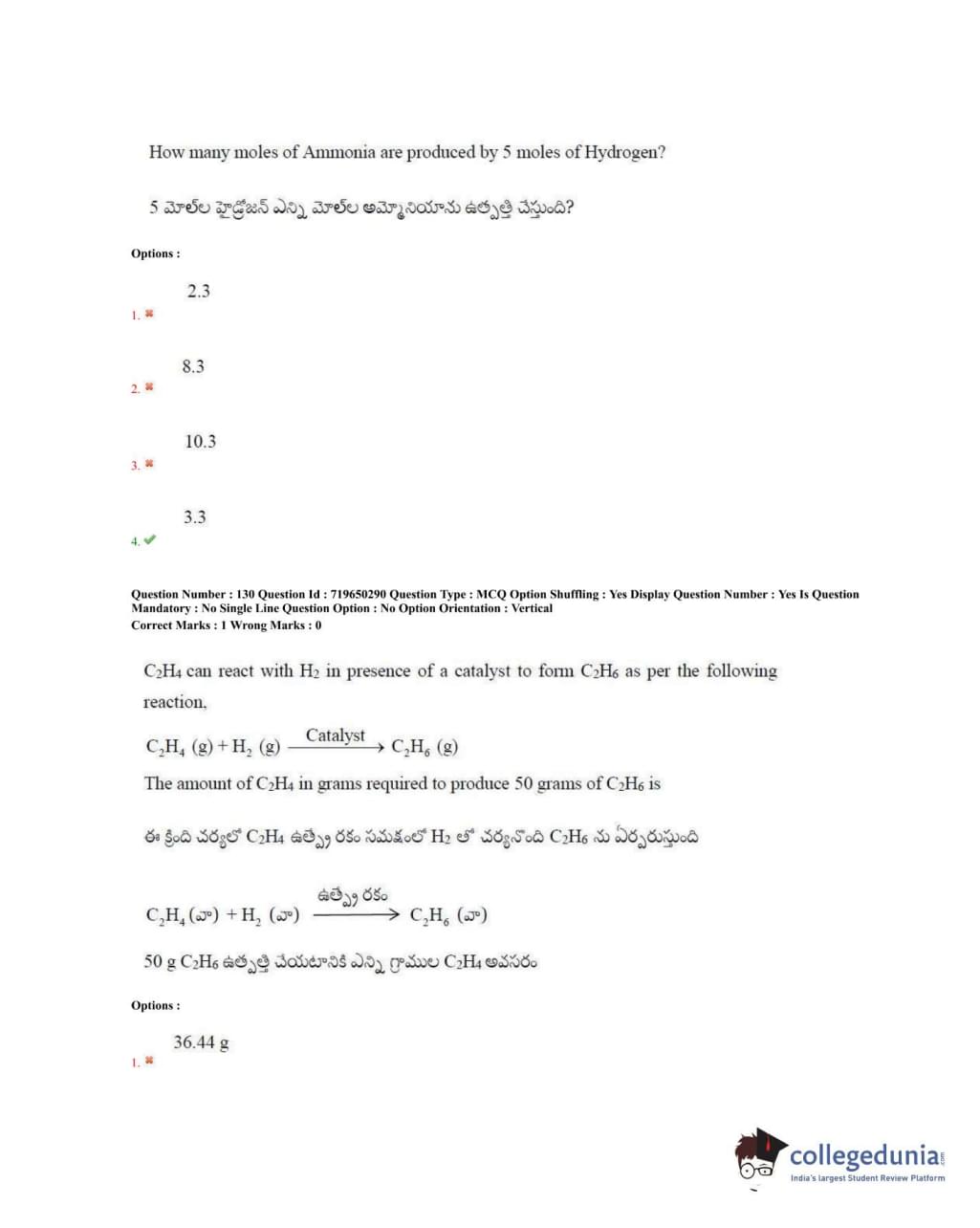 TS EAMCET 2020 Engineering Question Paper with Answer Key PDFs Forenoon Session