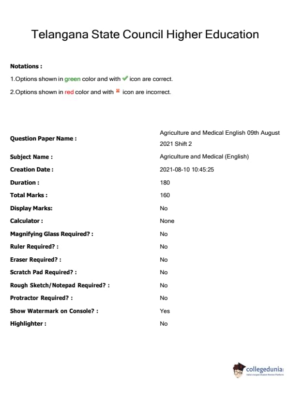 TS EAMCET 2021 Agriculture and Medical Question Paper with Answer Key PDFs Afternoon Session