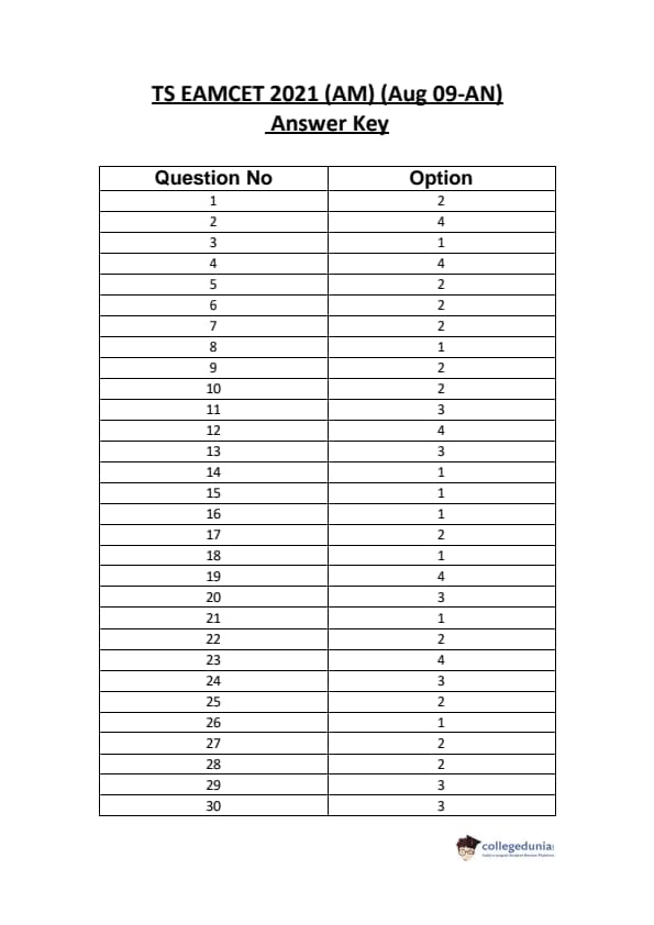 | TS EAMCET 2021 Agriculture and Medical Question Paper PDF | TS EAMCET 2021 Agriculture and Medical Answer Key PDF |