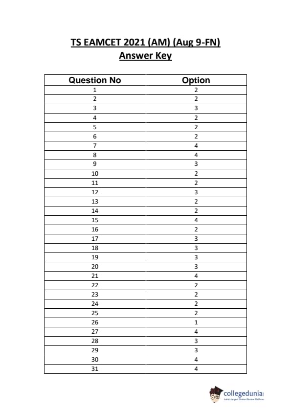 | TS EAMCET 2021 Agriculture and Medical Question Paper PDF | TS EAMCET 2021 Agriculture and Medical Answer Key PDF |