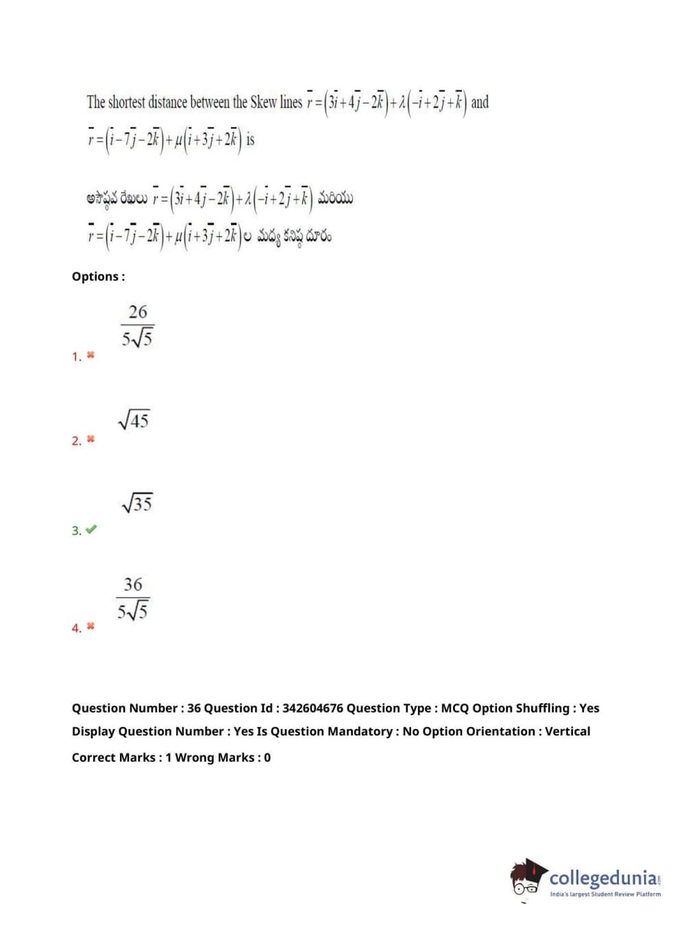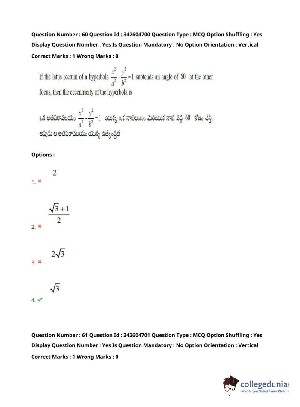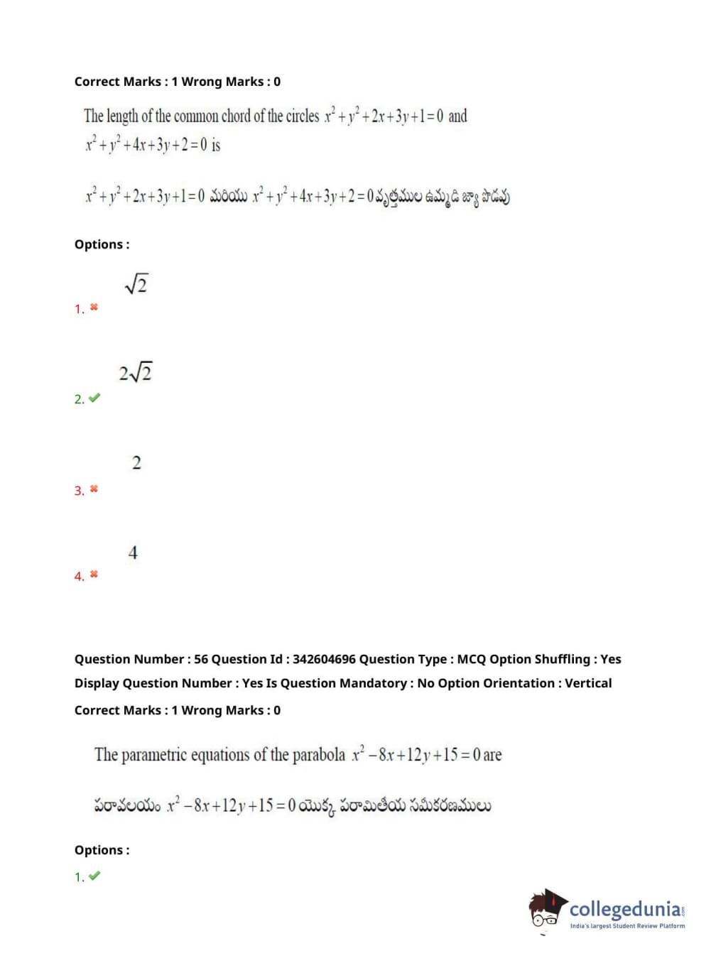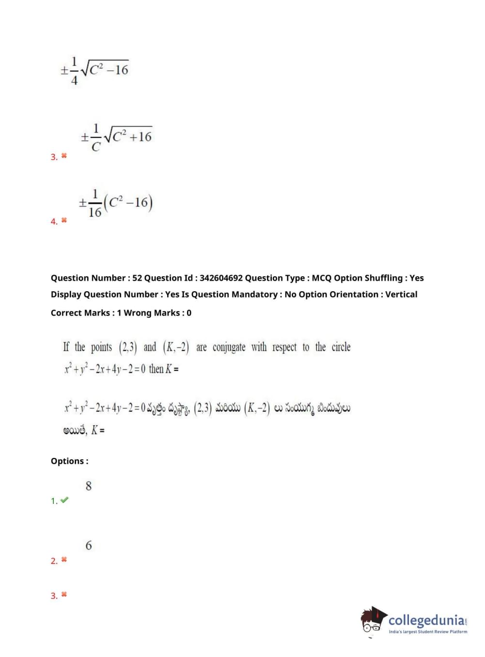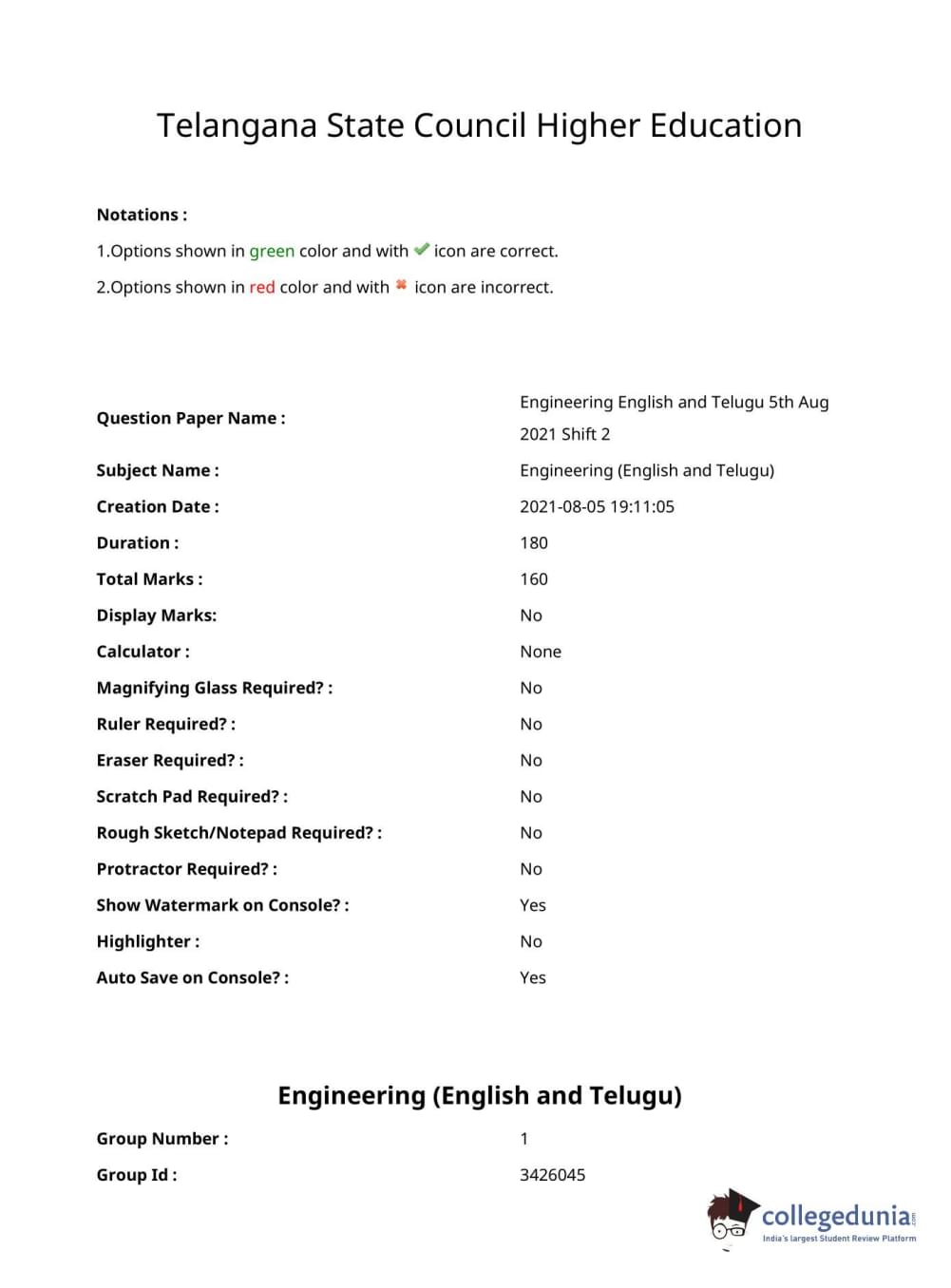 TS EAMCET 2021 Engineering Question Paper with Answer Key PDFs Afternoon Session