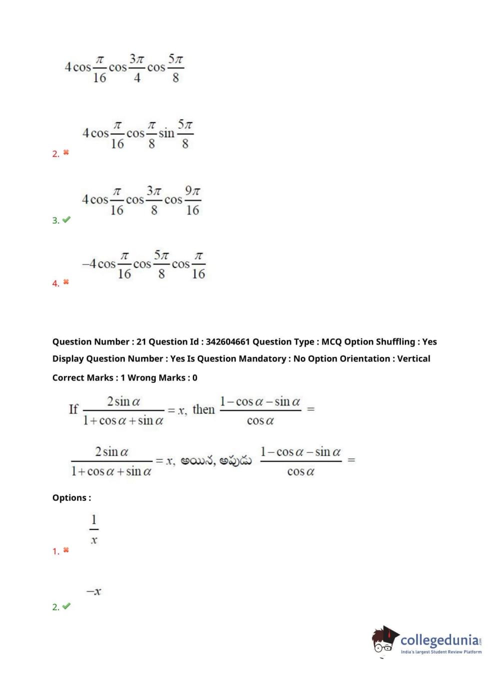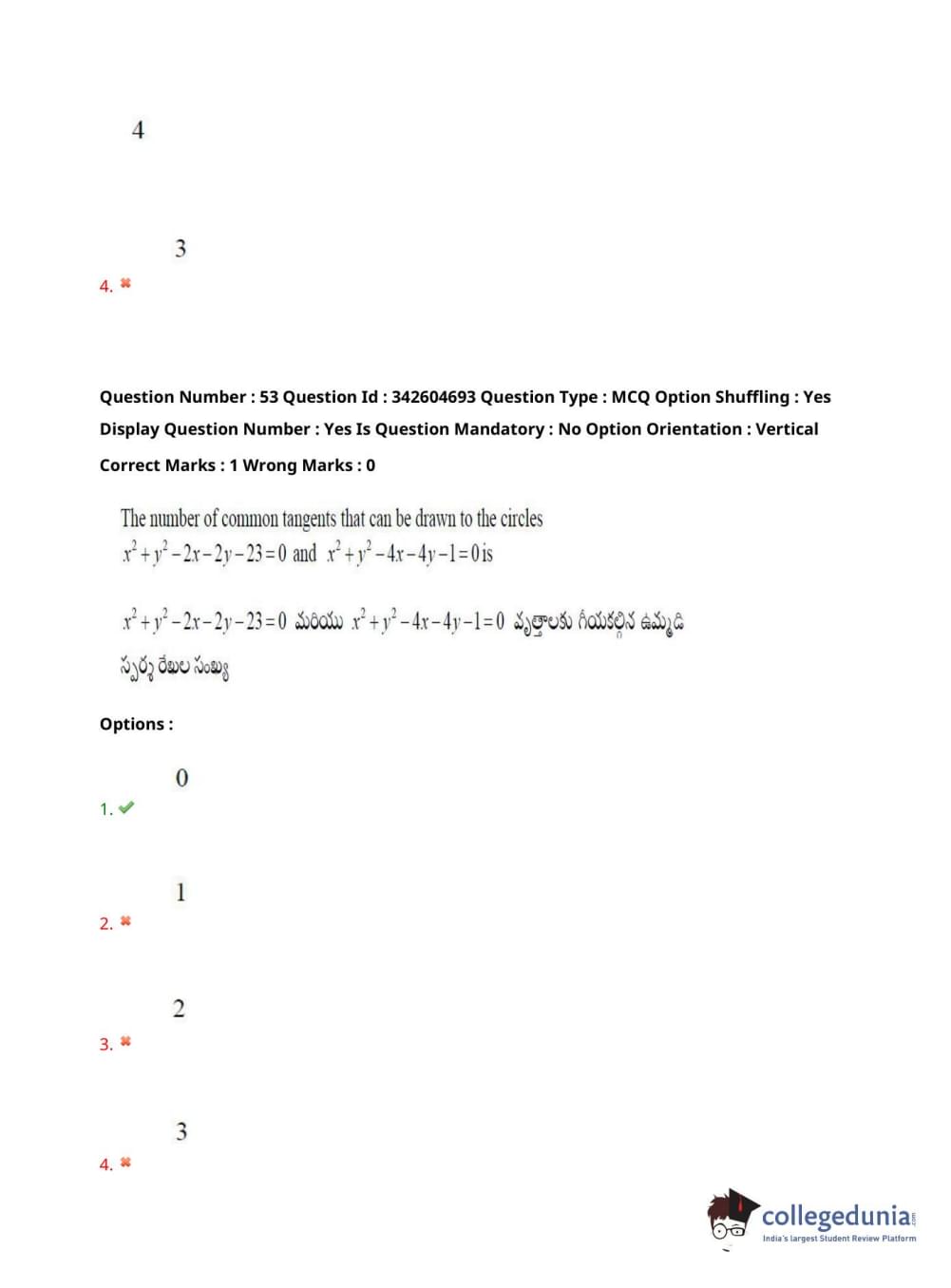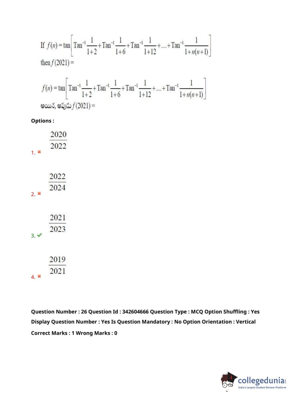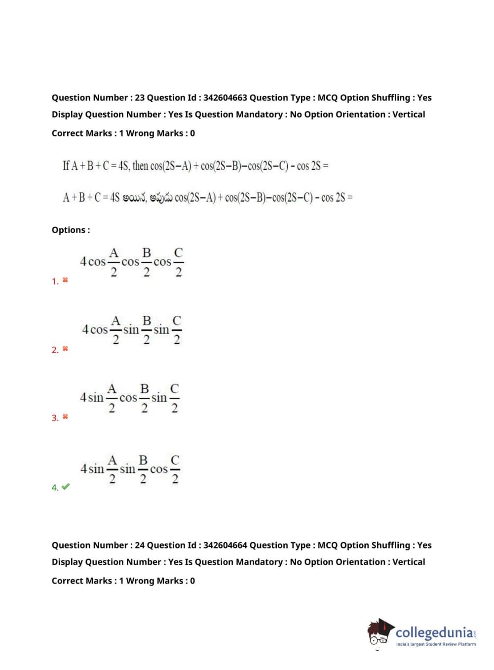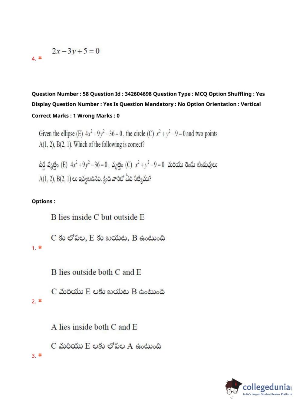 TS EAMCET 2021 Engineering Question Paper with Answer Key PDFs Afternoon Session