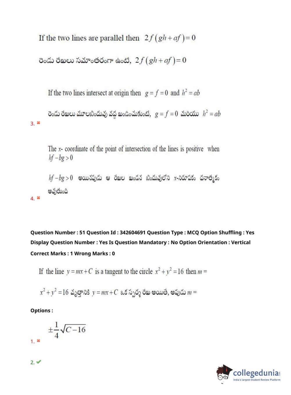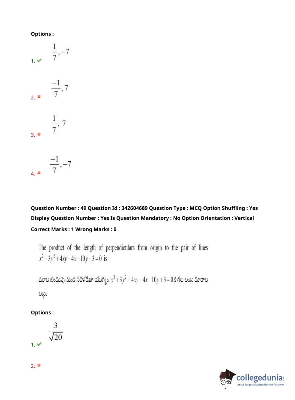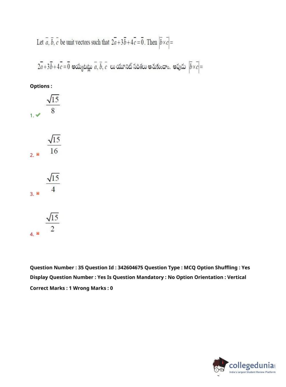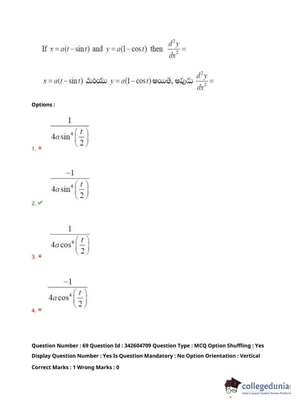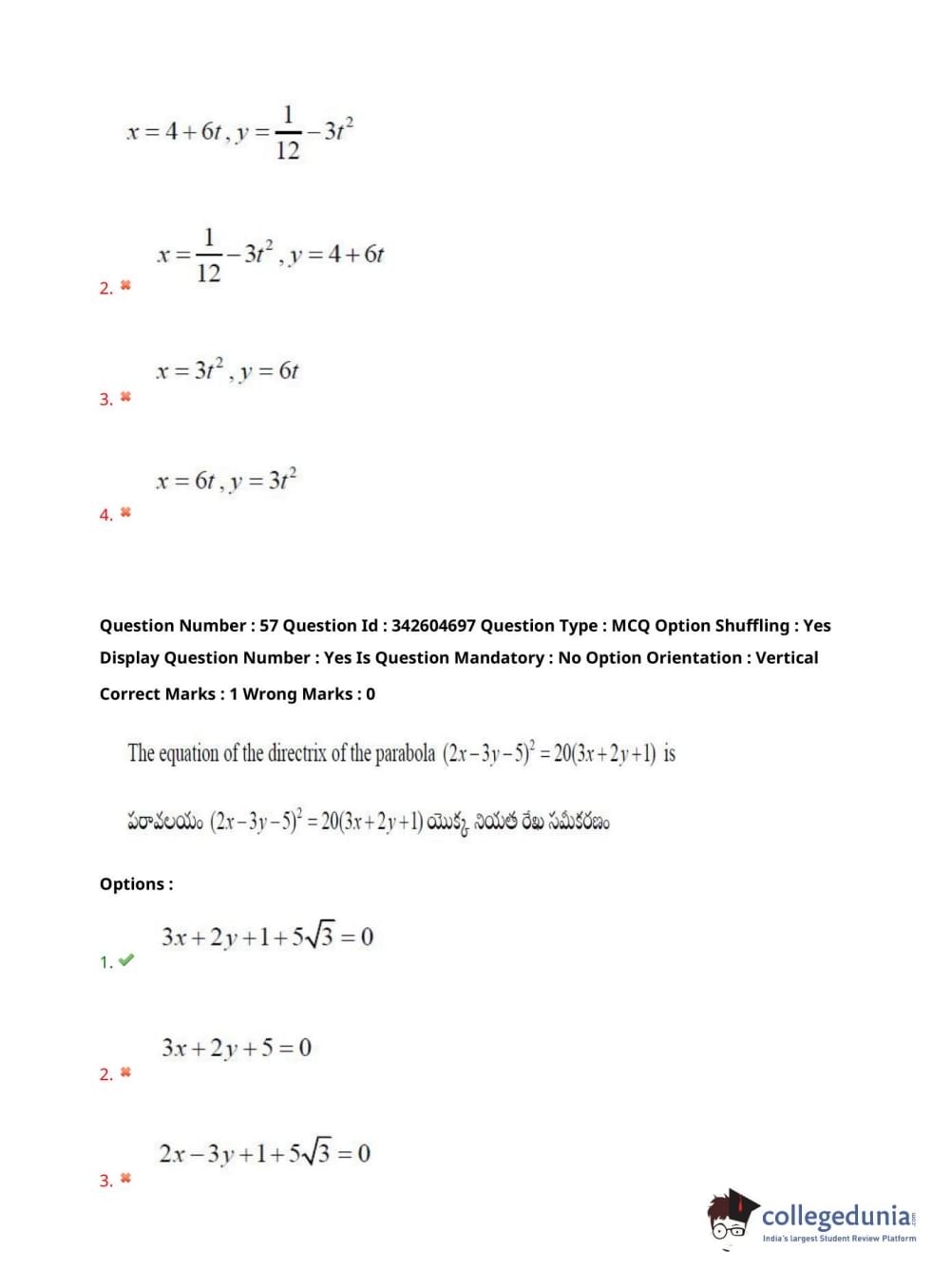 TS EAMCET 2021 Engineering Question Paper with Answer Key PDFs Afternoon Session