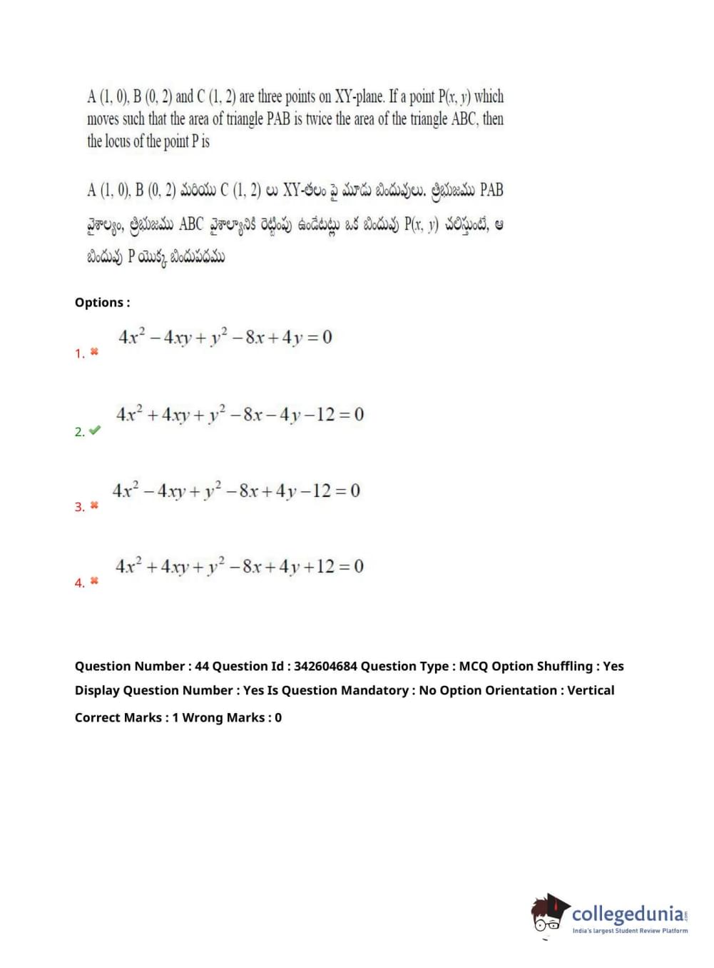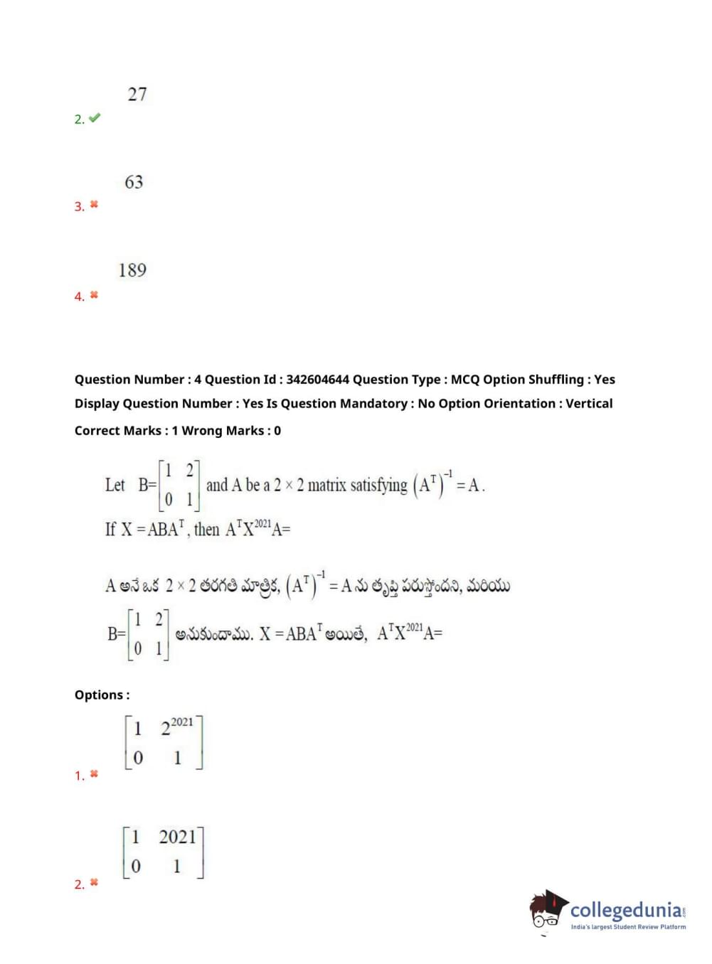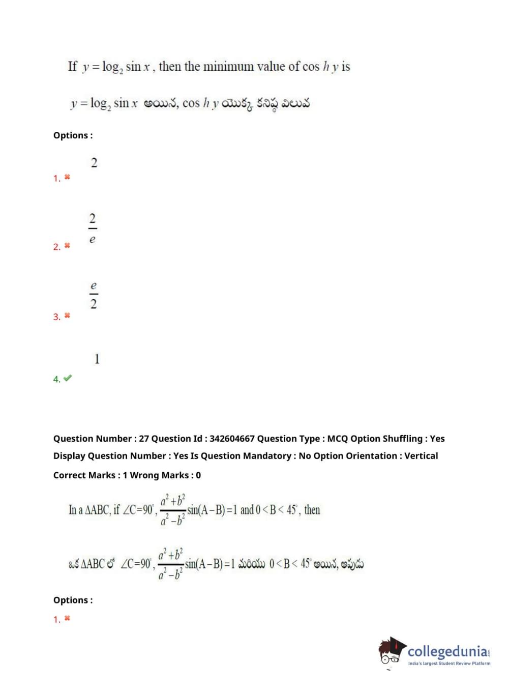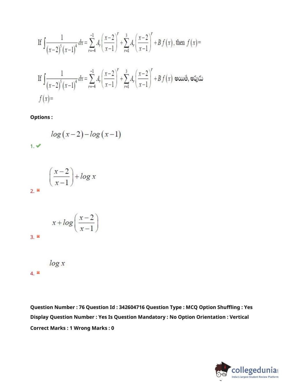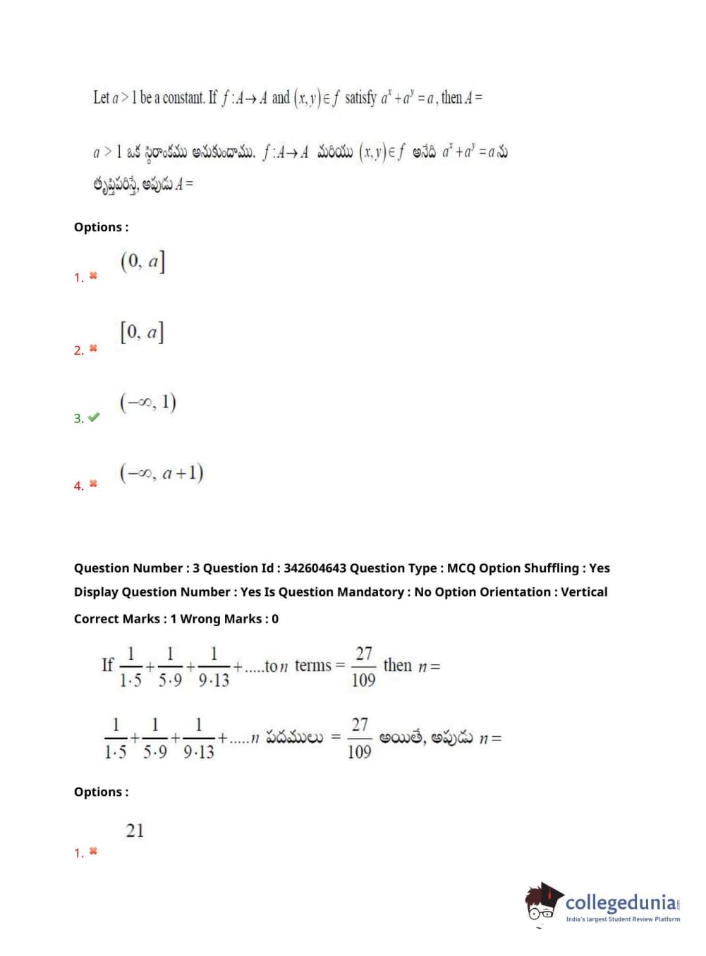 TS EAMCET 2021 Engineering Question Paper with Answer Key PDFs Afternoon Session