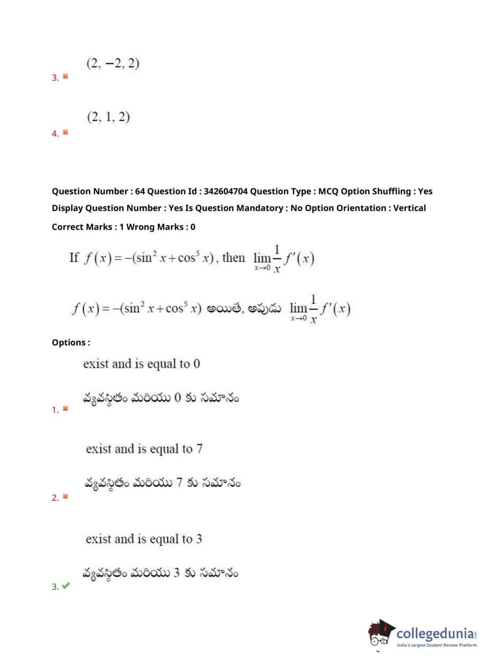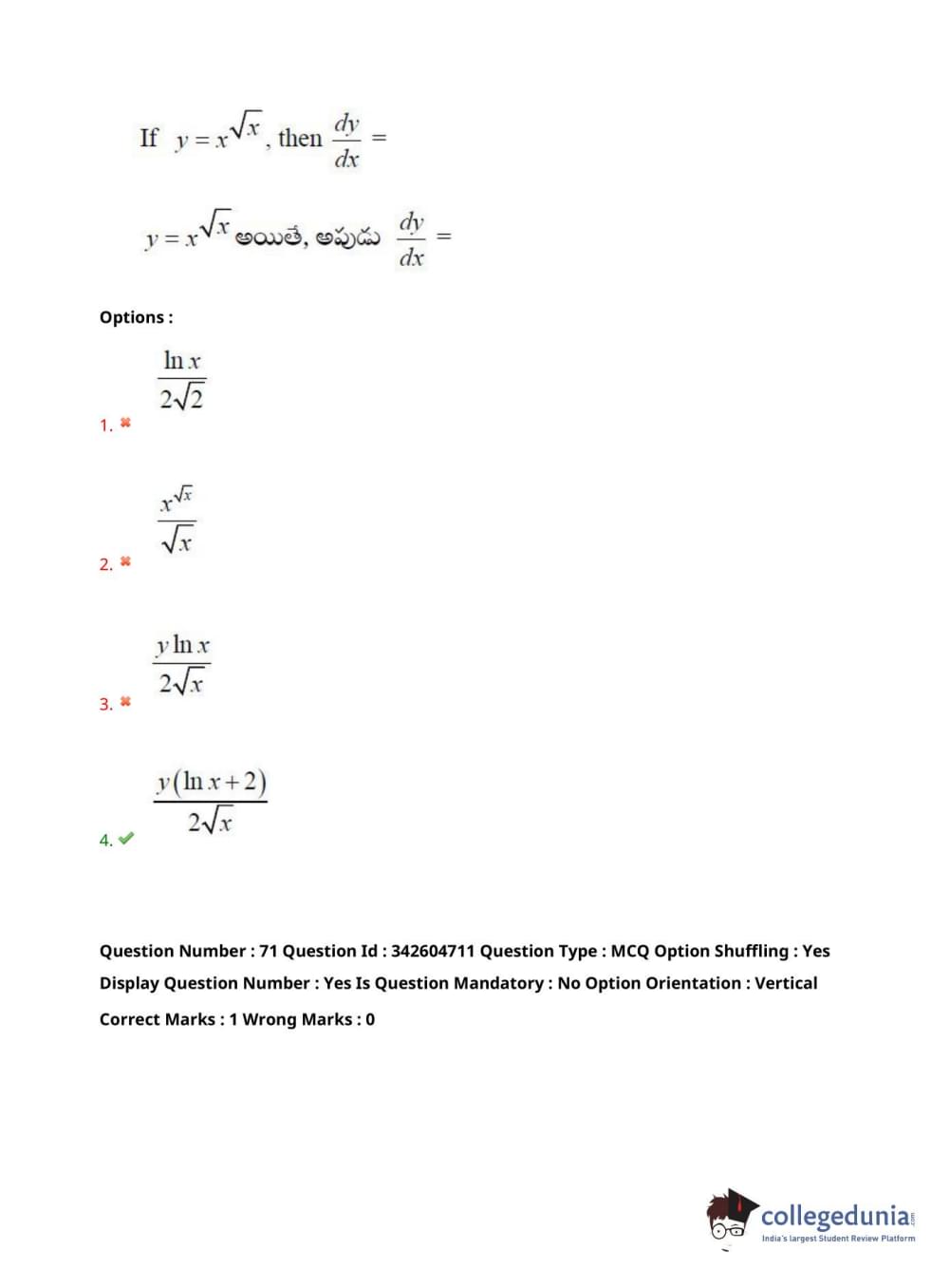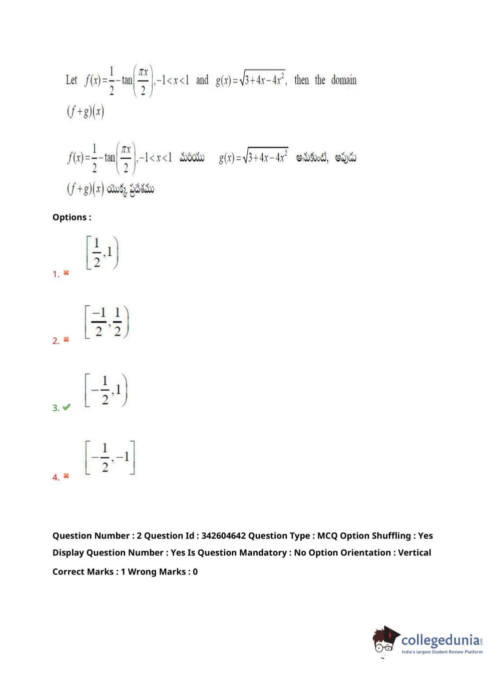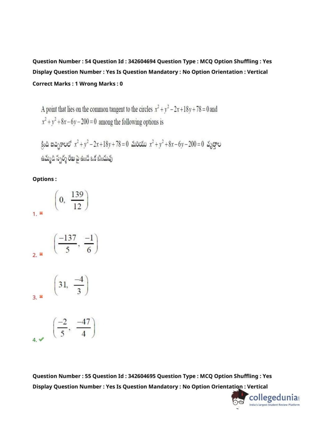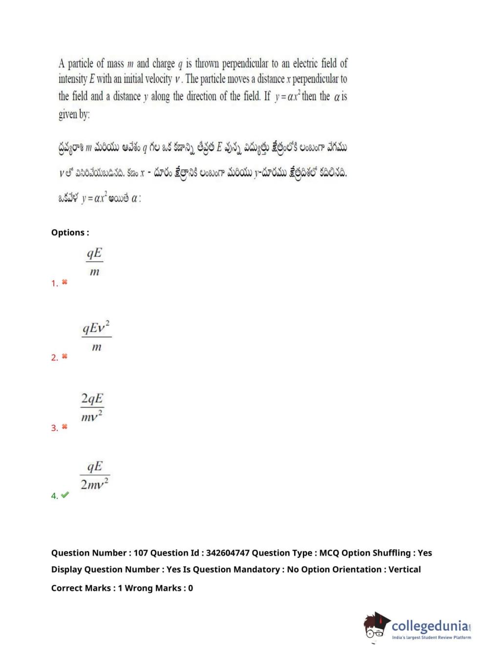 TS EAMCET 2021 Engineering Question Paper with Answer Key PDFs Afternoon Session