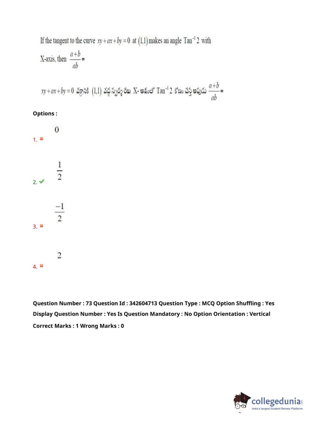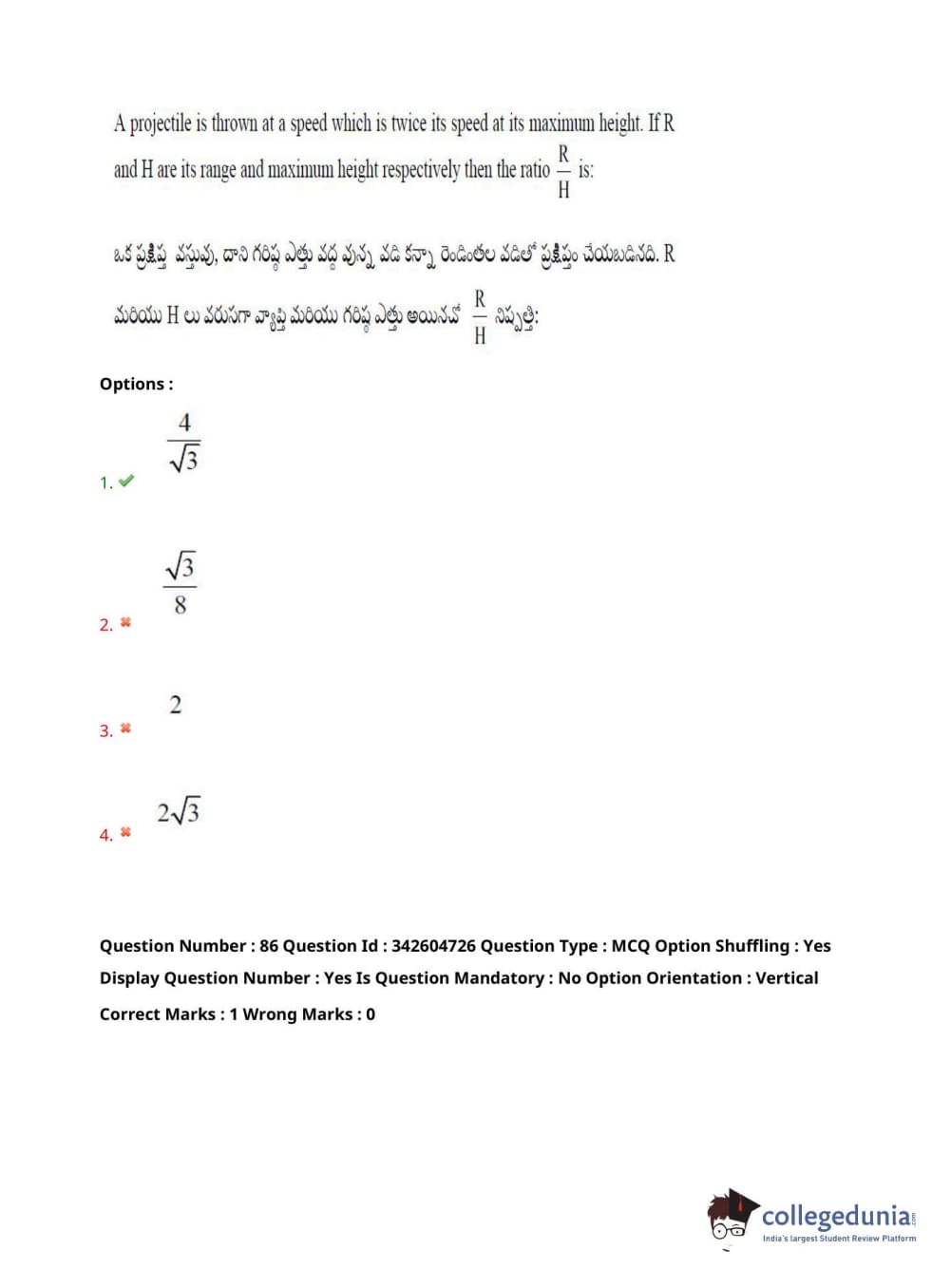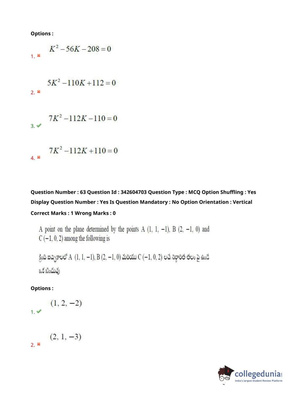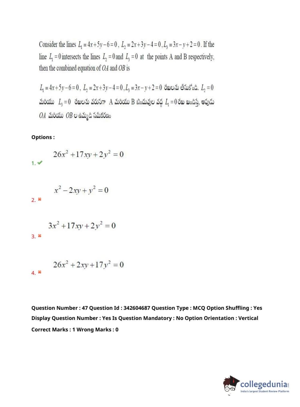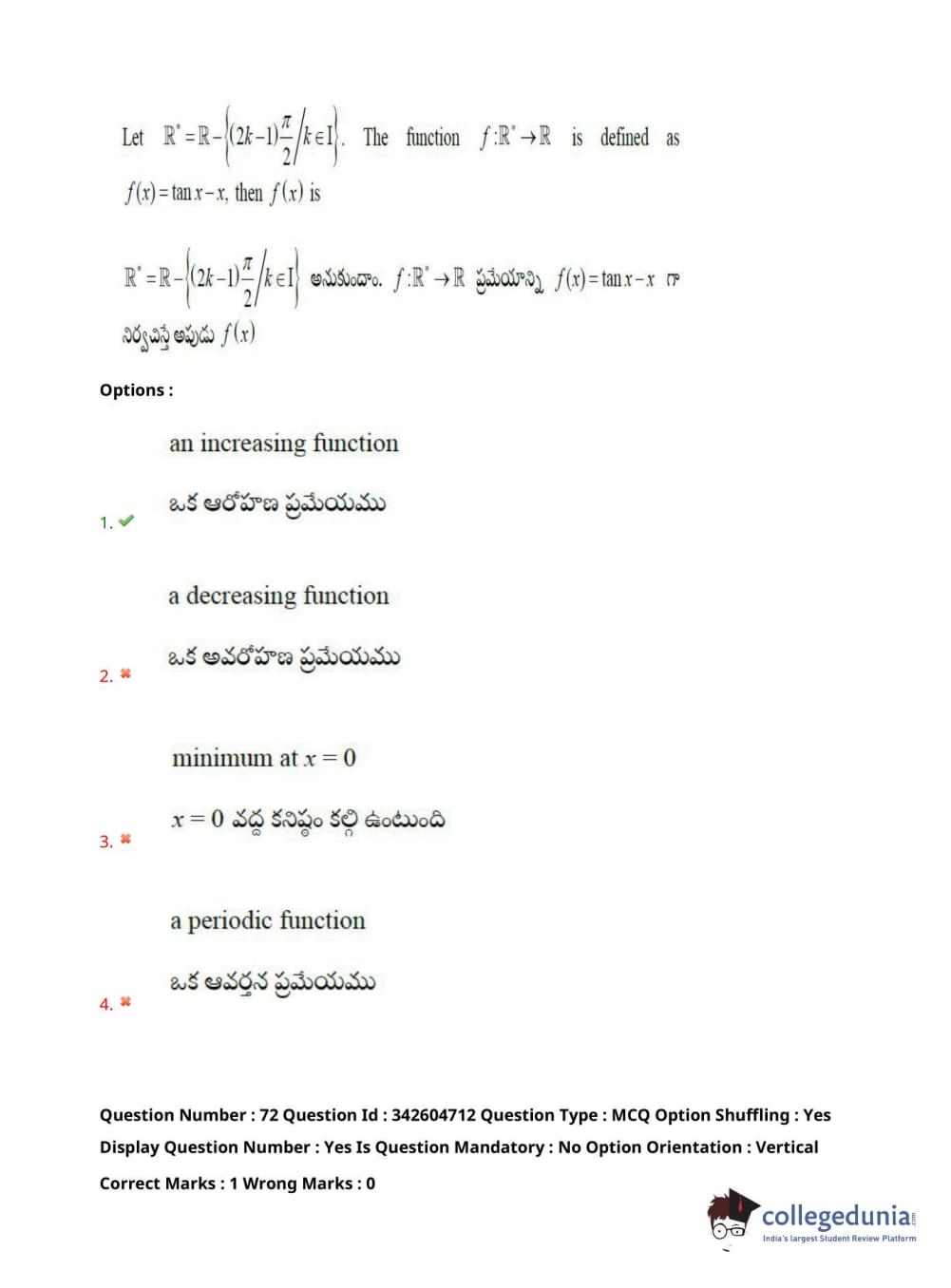 TS EAMCET 2021 Engineering Question Paper with Answer Key PDFs Afternoon Session