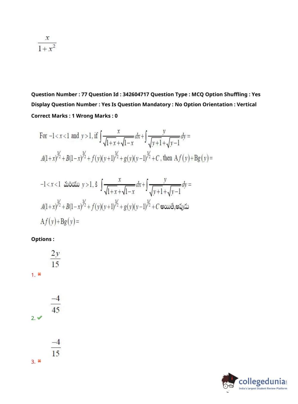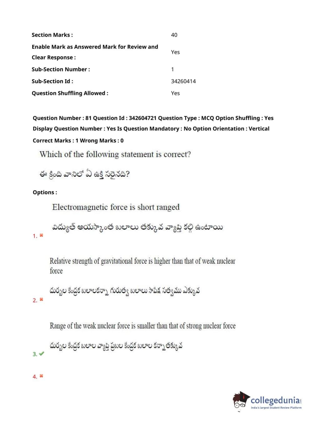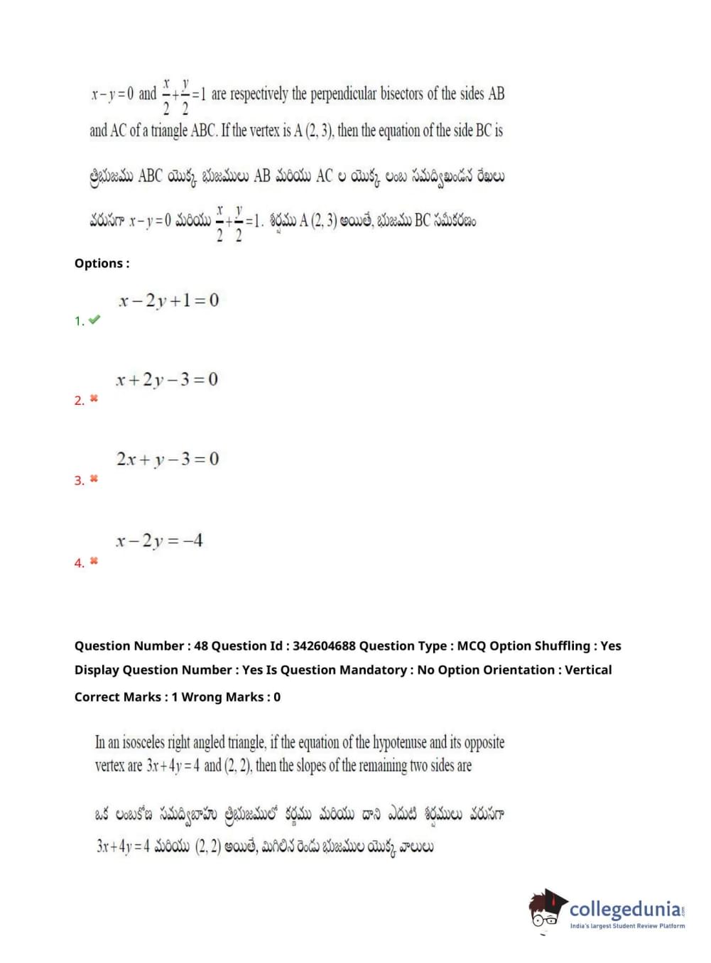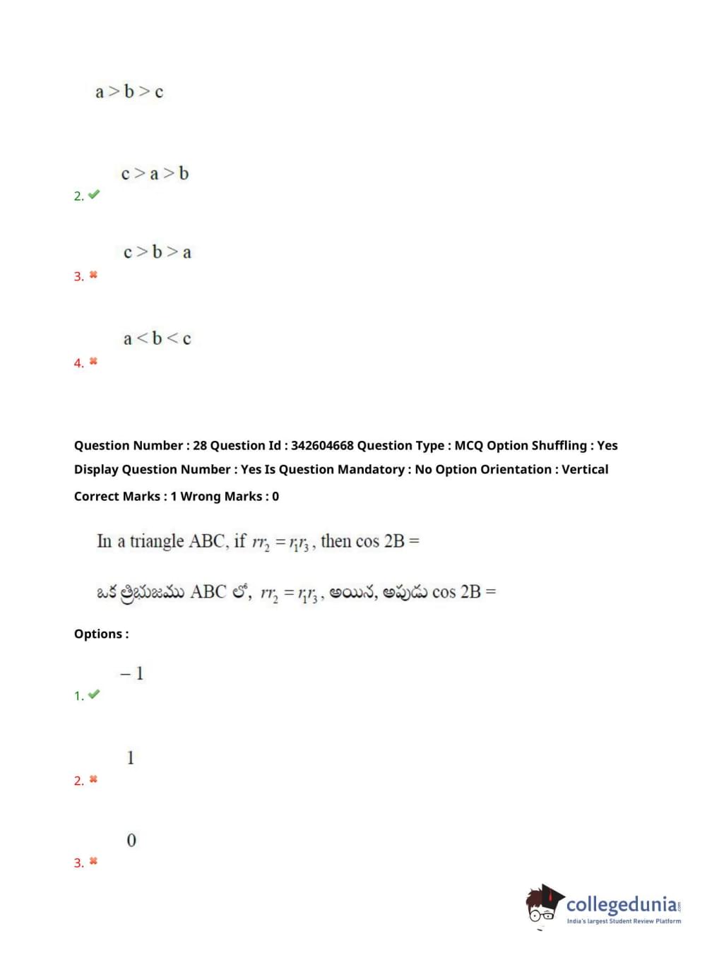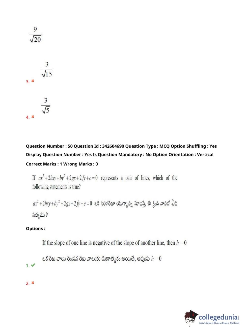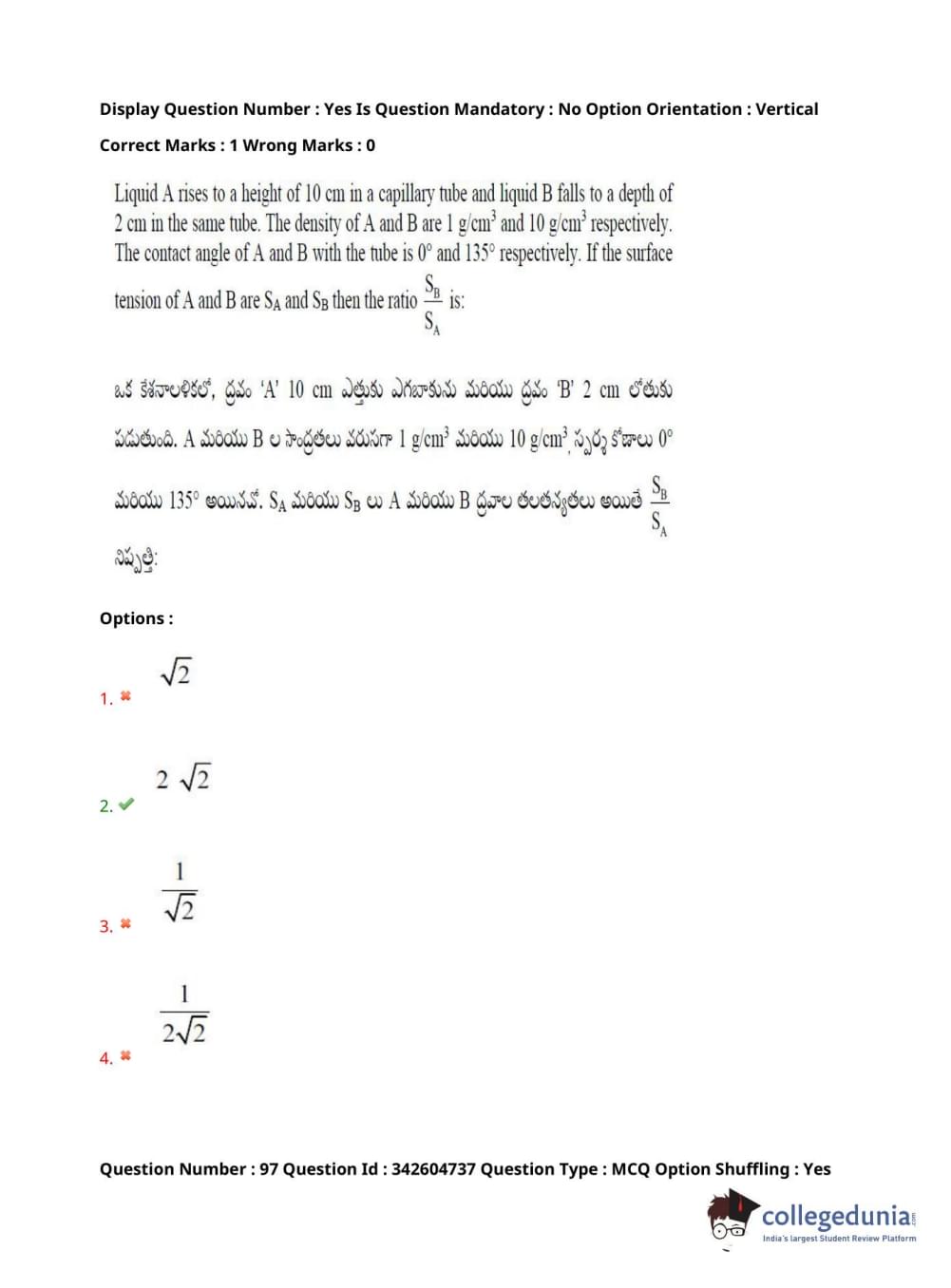 TS EAMCET 2021 Engineering Question Paper with Answer Key PDFs Afternoon Session