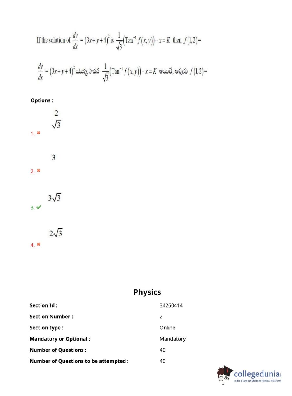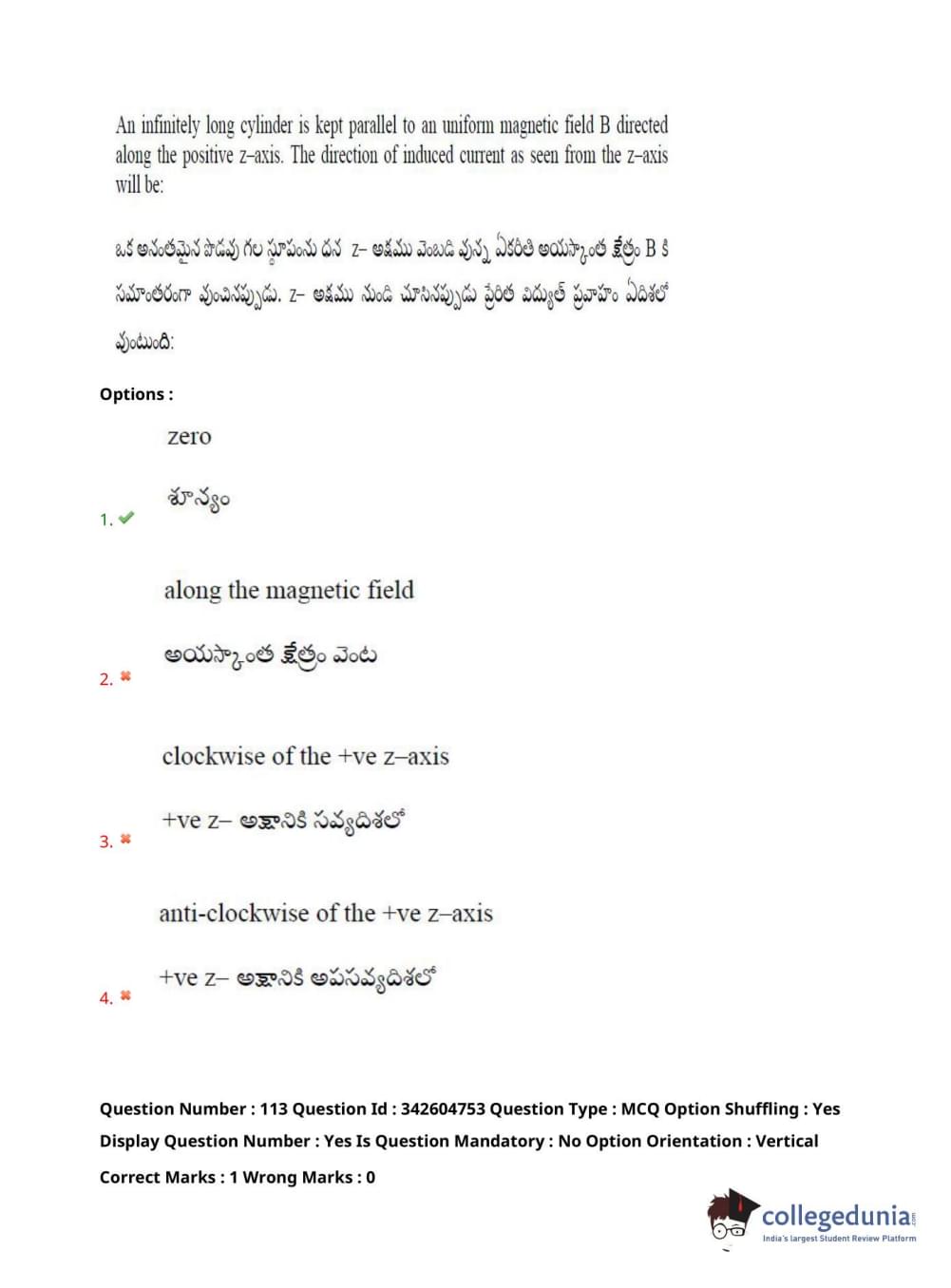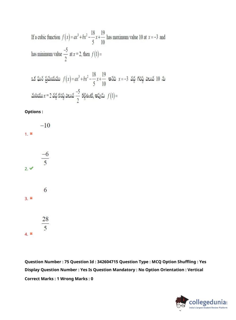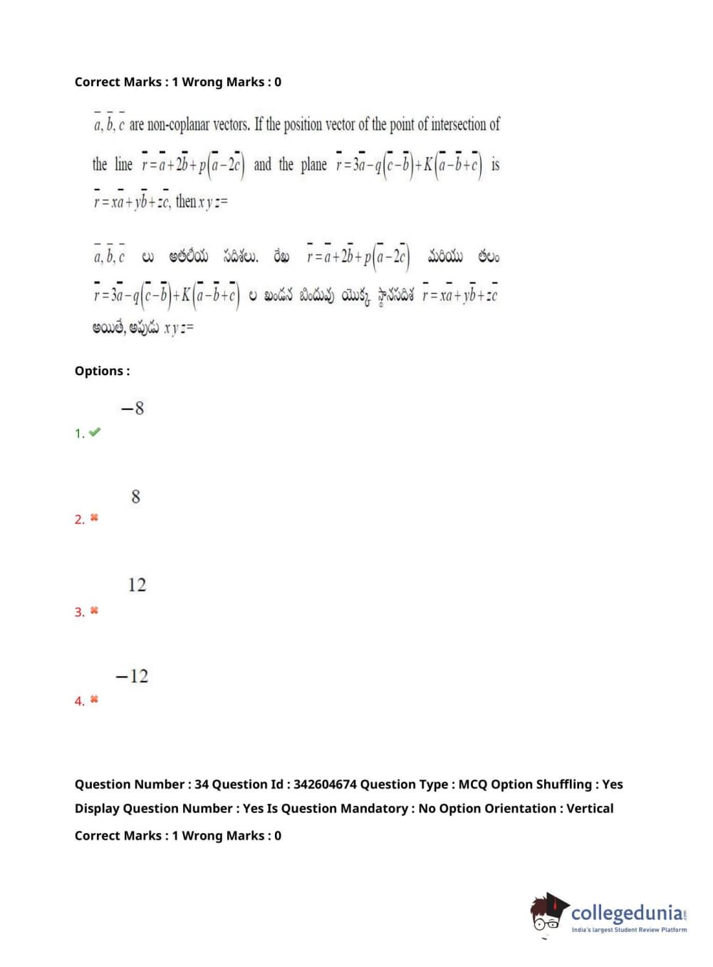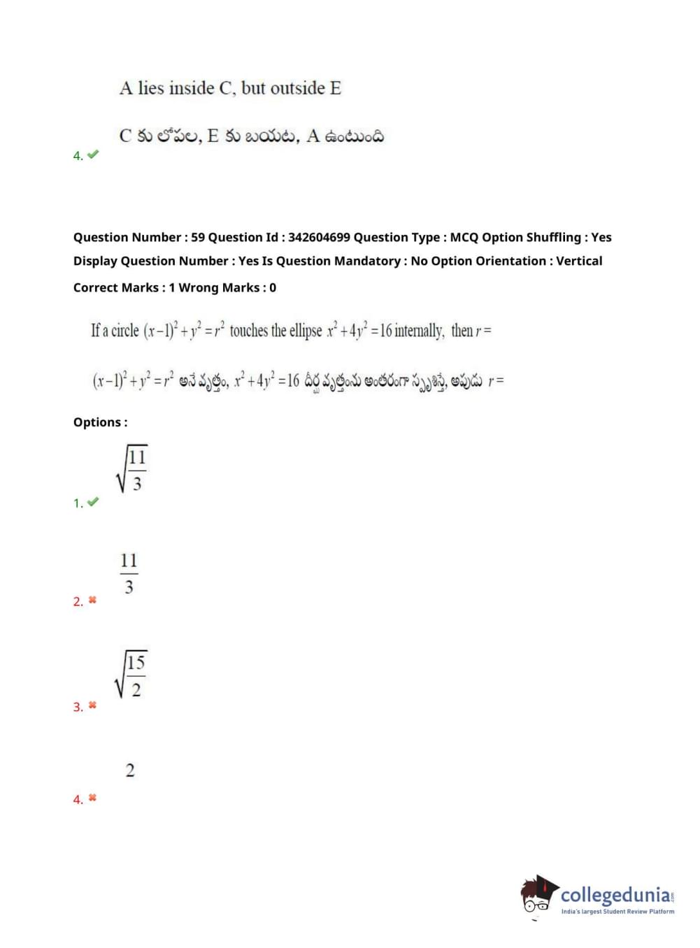 TS EAMCET 2021 Engineering Question Paper with Answer Key PDFs Afternoon Session