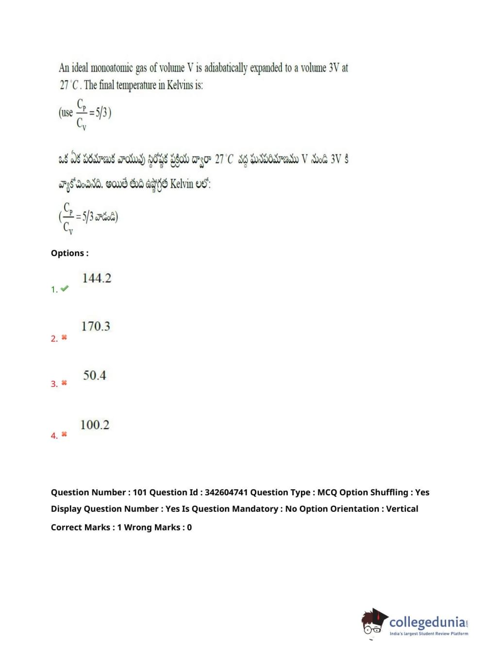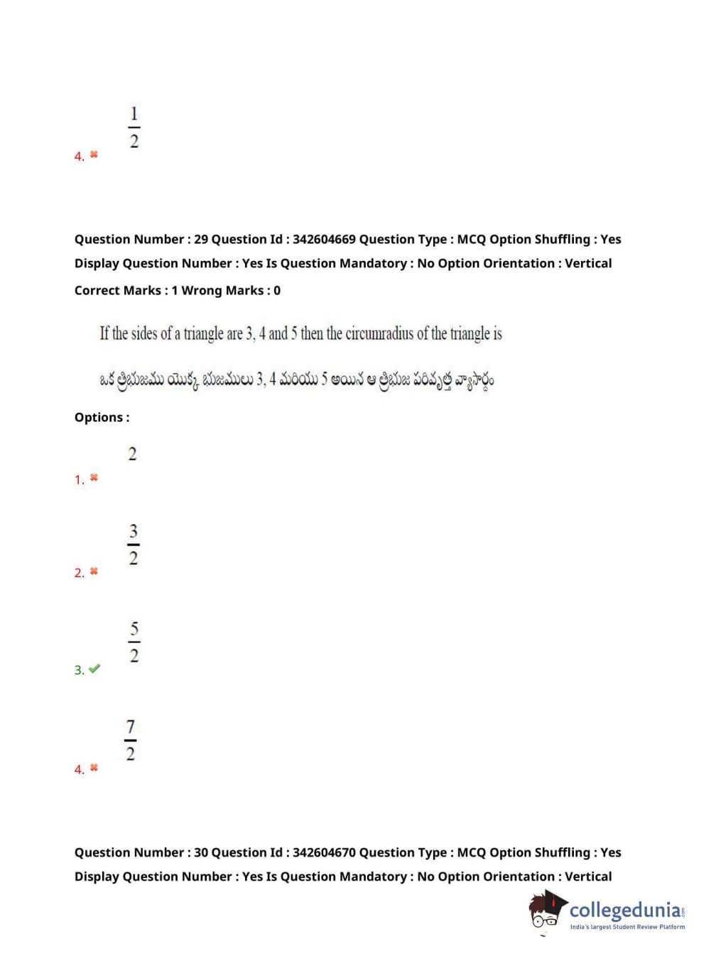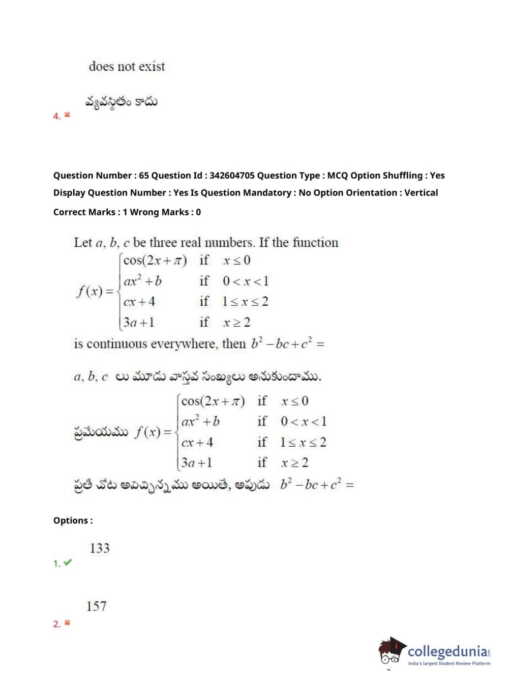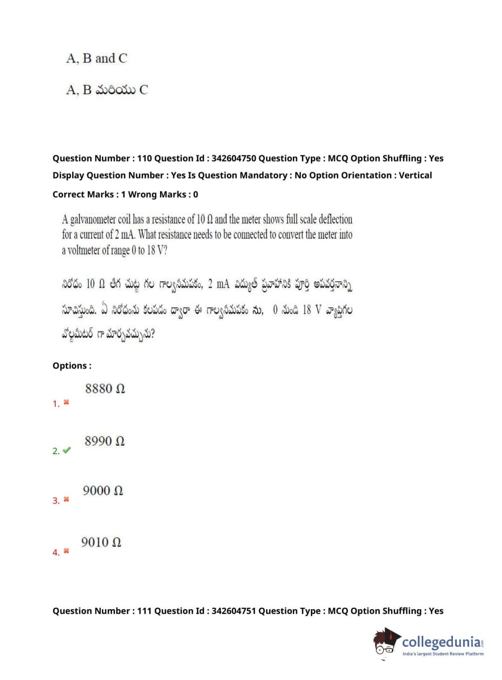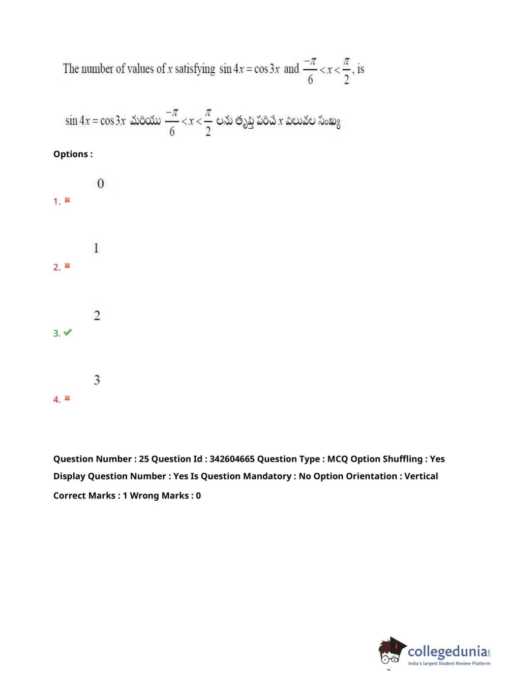 TS EAMCET 2021 Engineering Question Paper with Answer Key PDFs Afternoon Session
