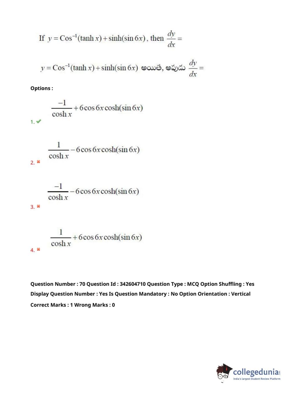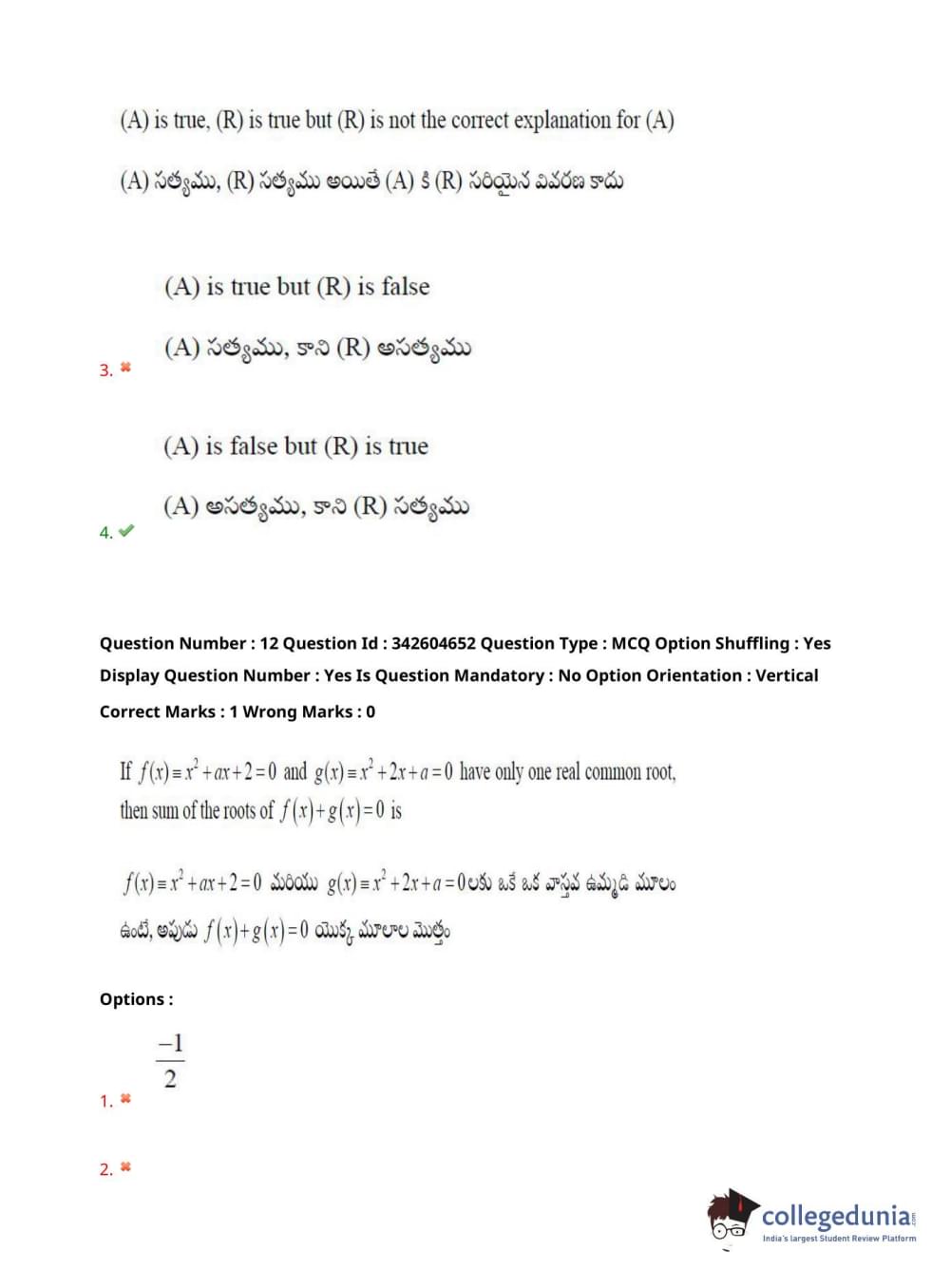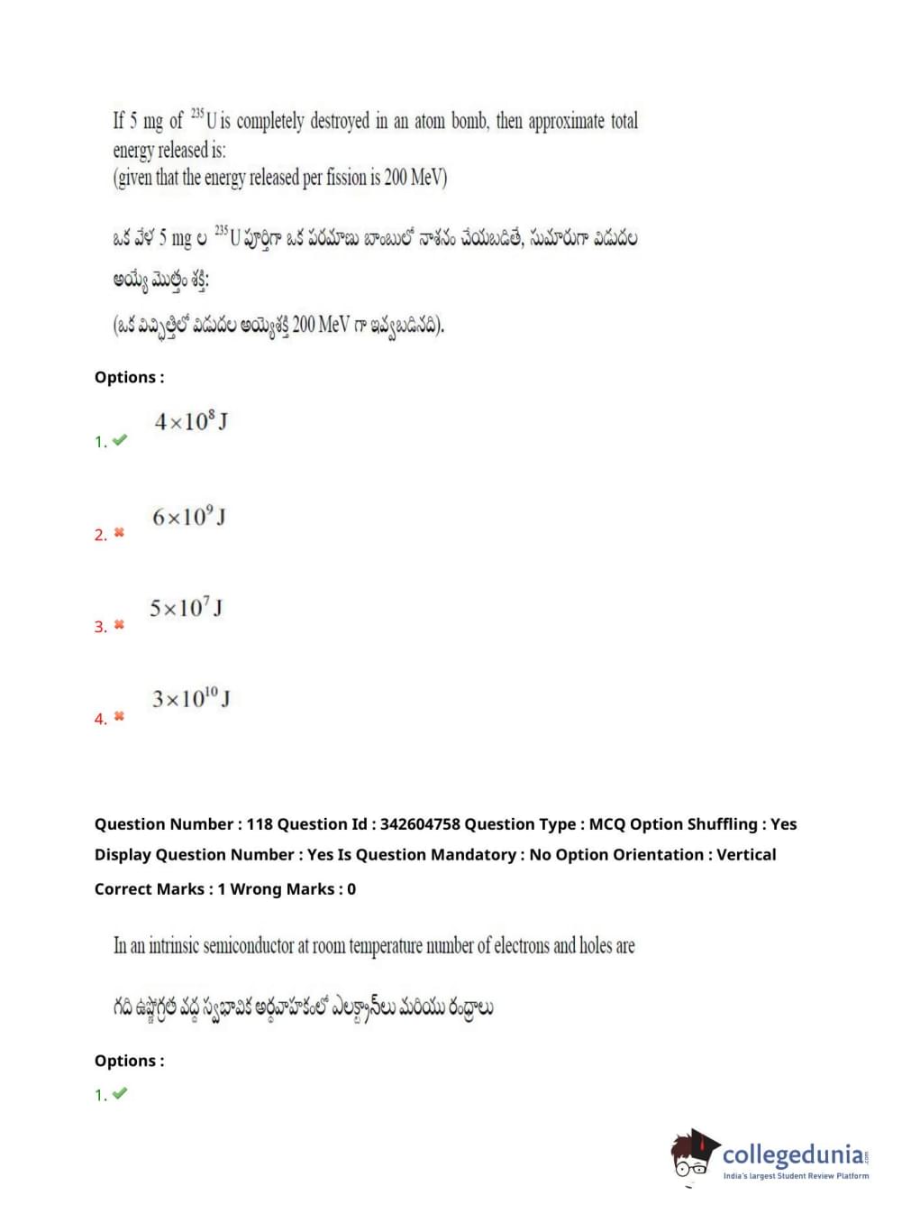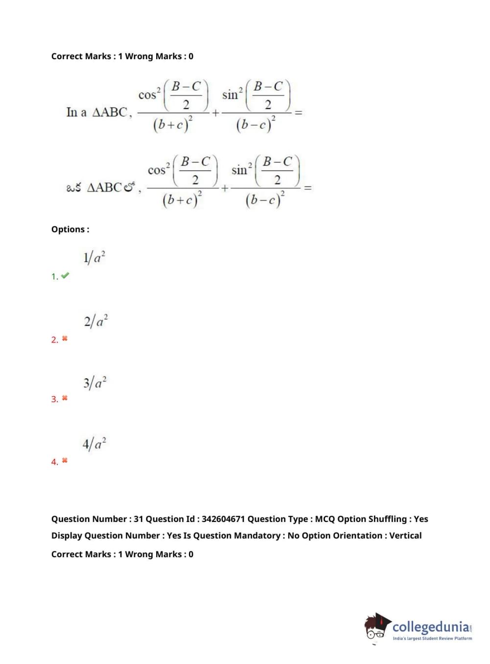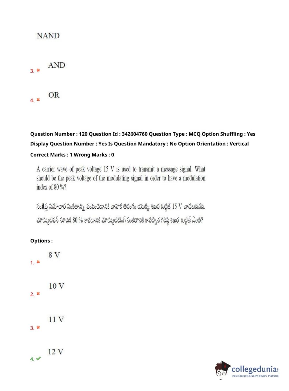 TS EAMCET 2021 Engineering Question Paper with Answer Key PDFs Afternoon Session
