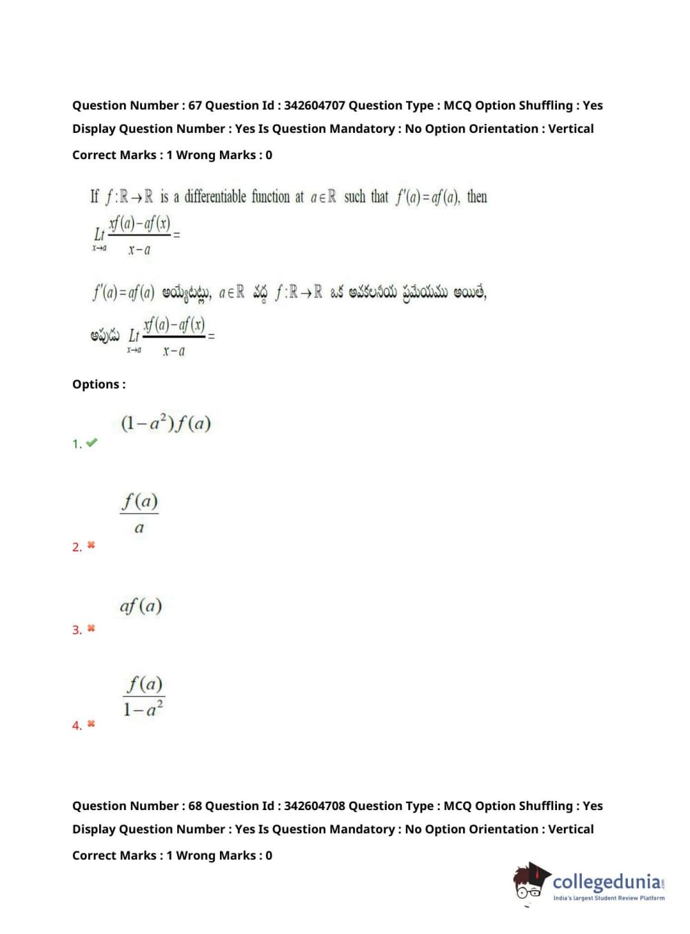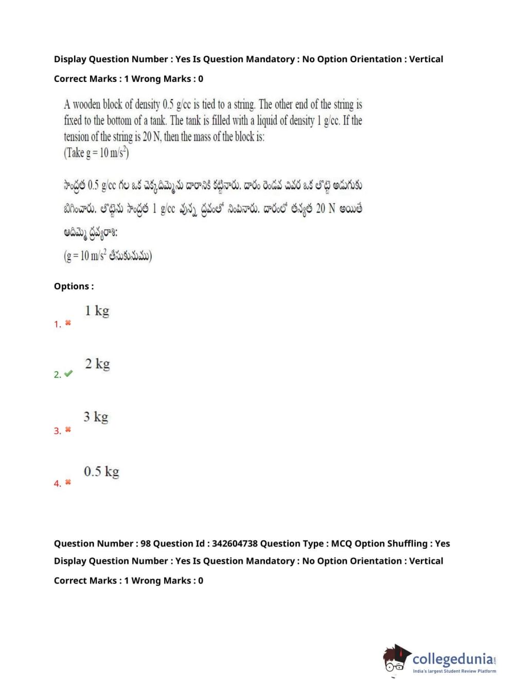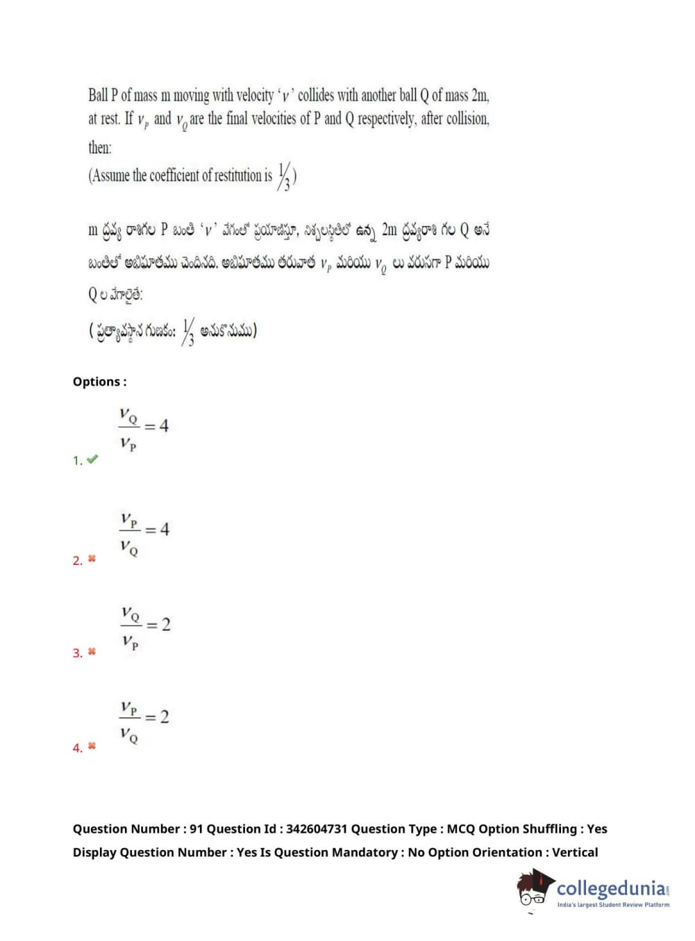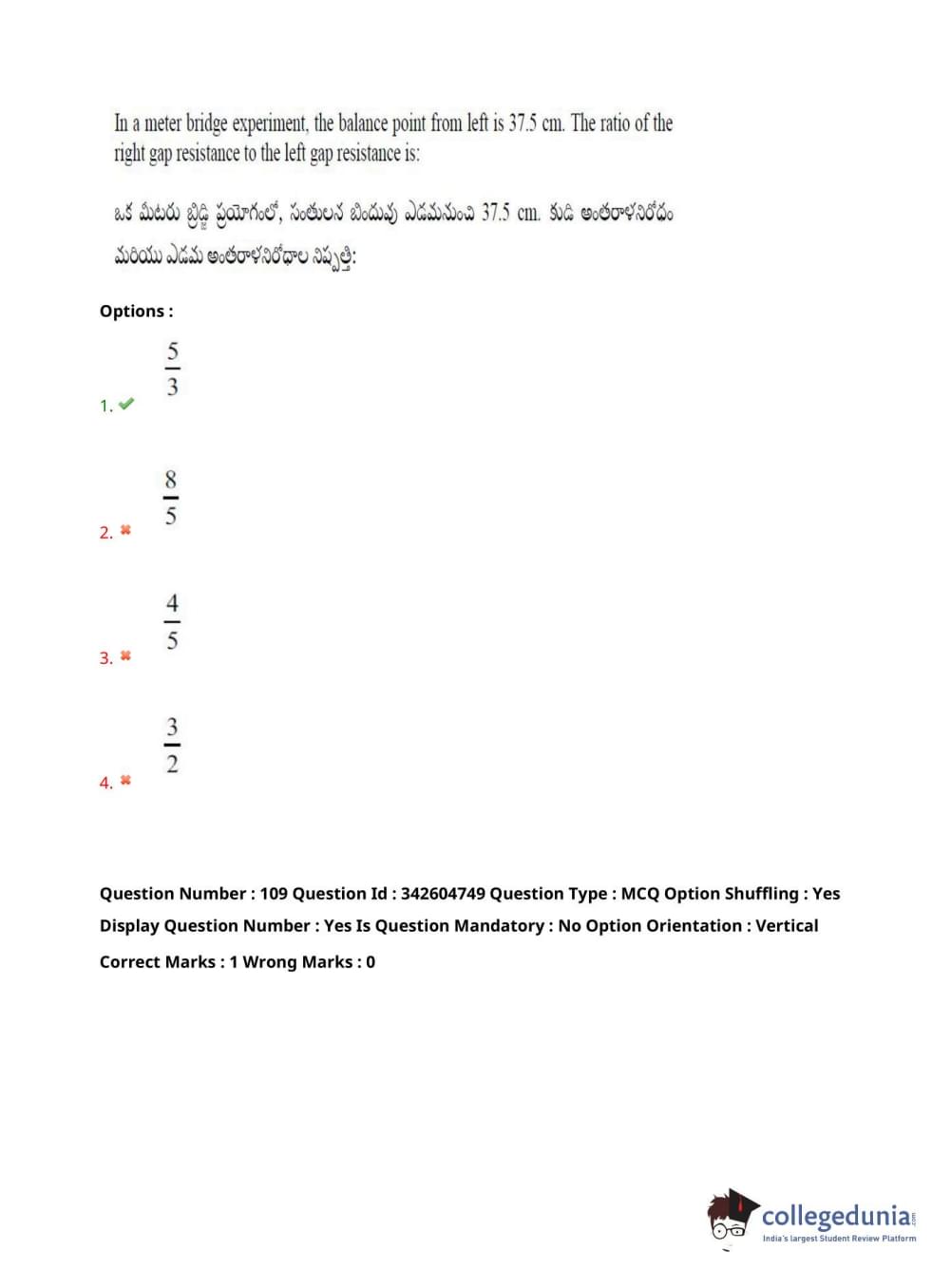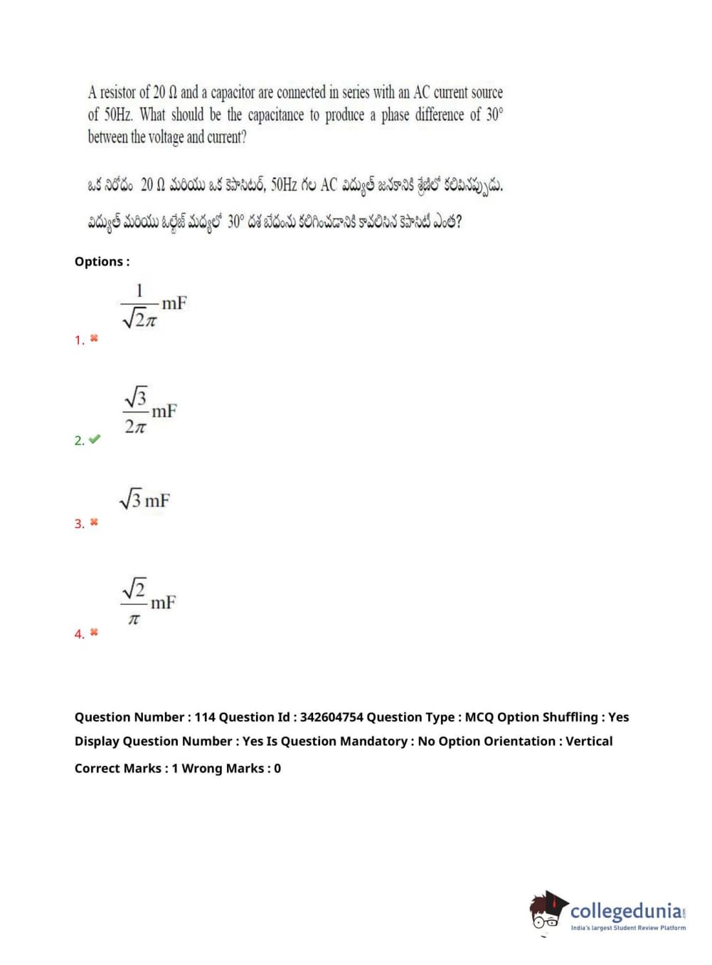 TS EAMCET 2021 Engineering Question Paper with Answer Key PDFs Afternoon Session