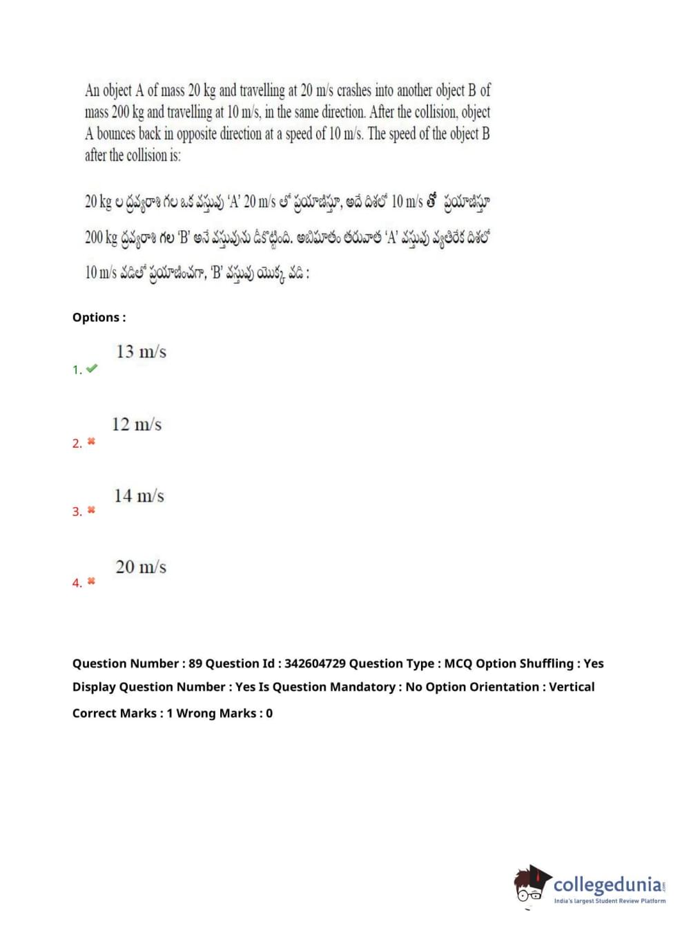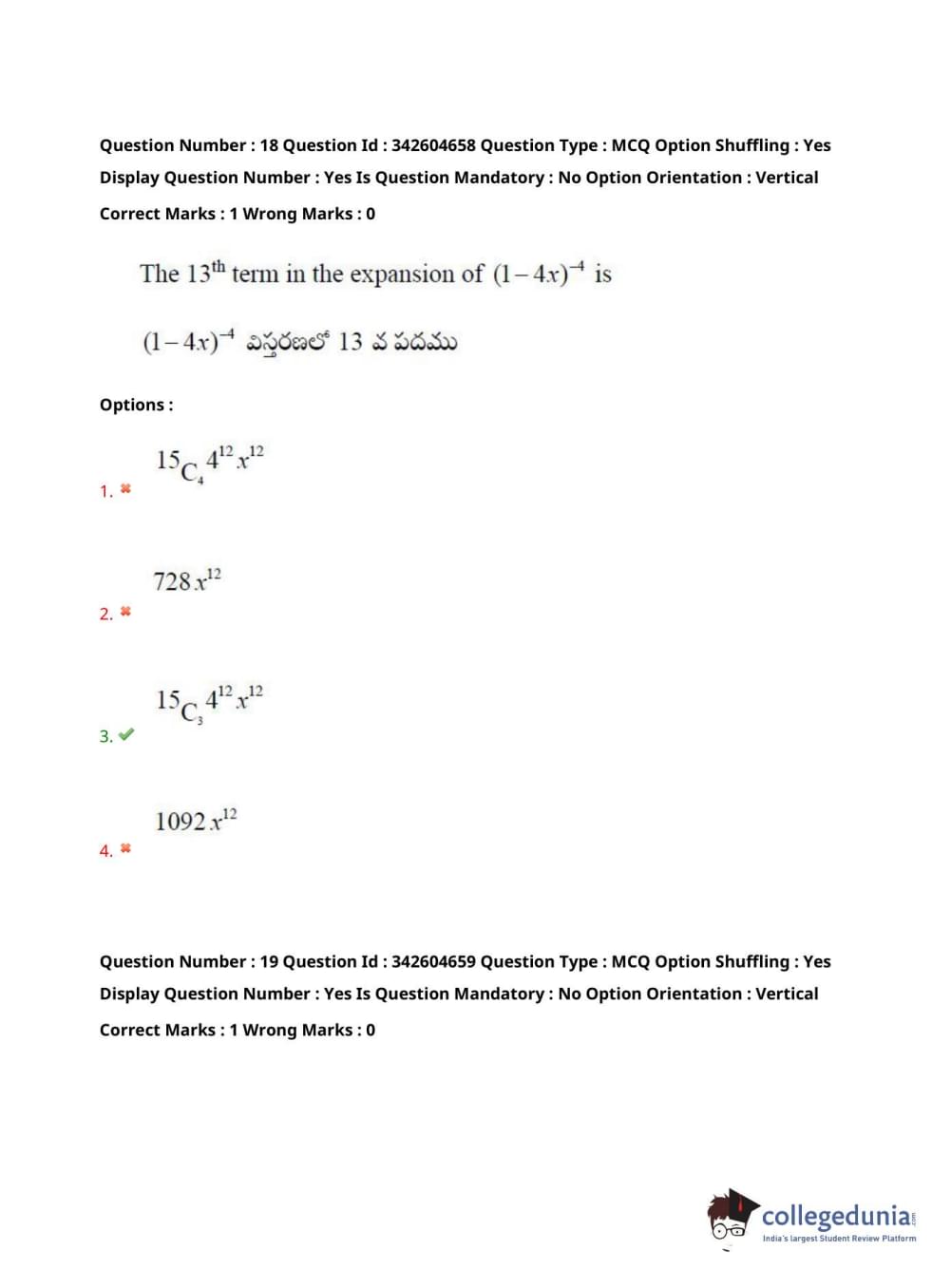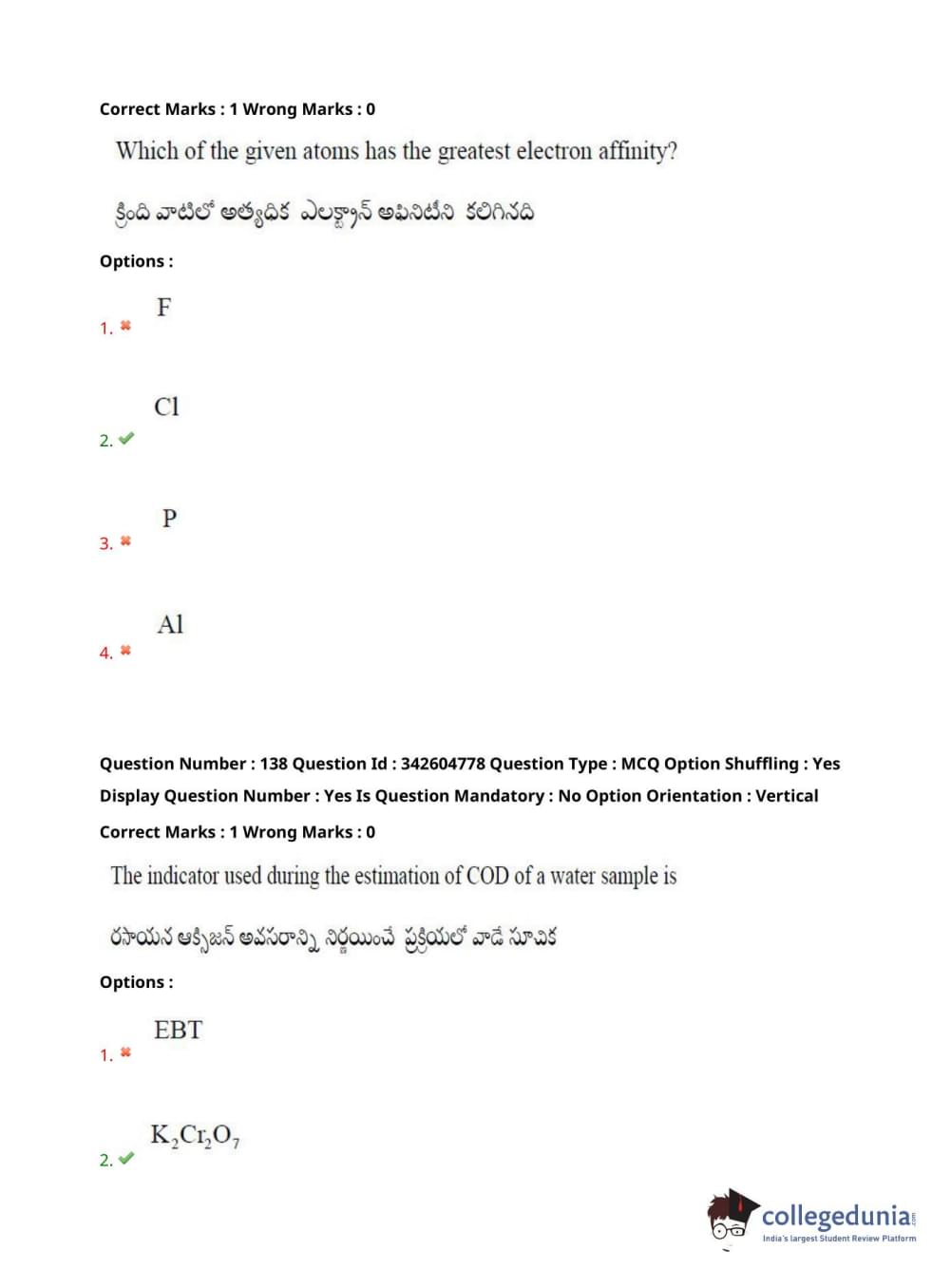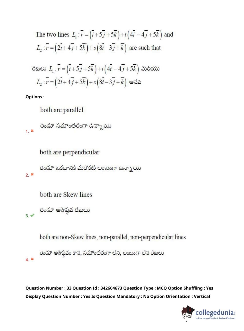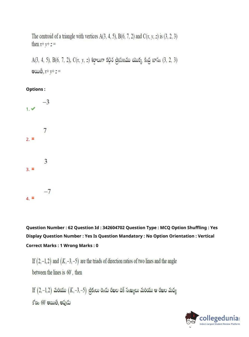 TS EAMCET 2021 Engineering Question Paper with Answer Key PDFs Afternoon Session