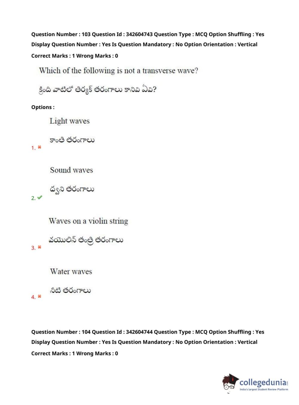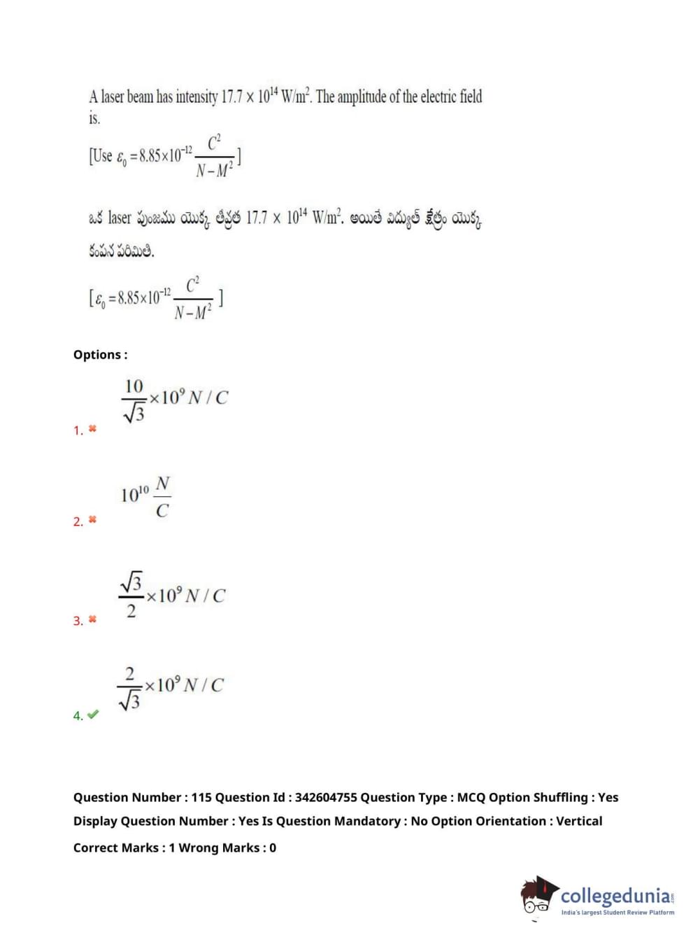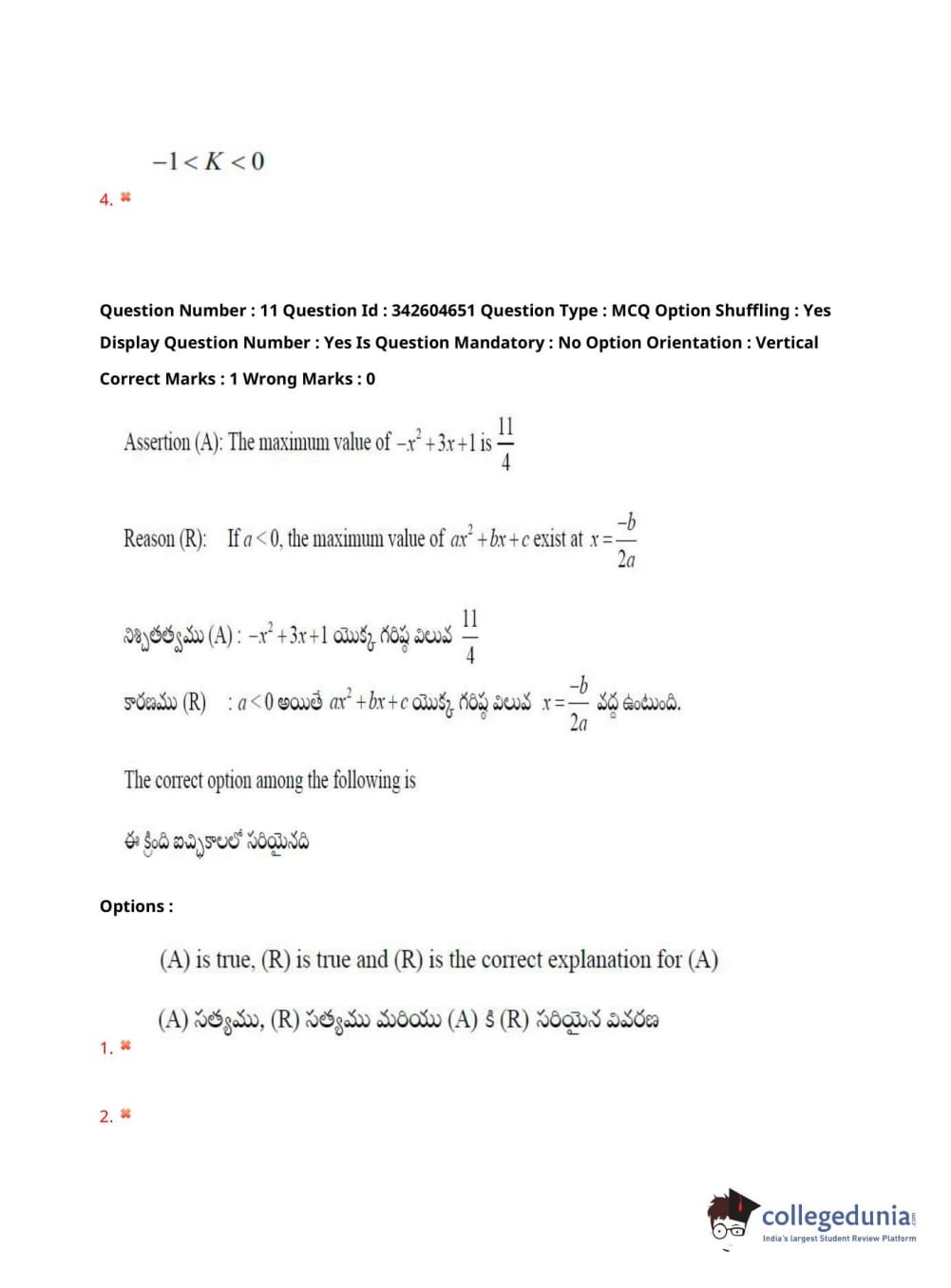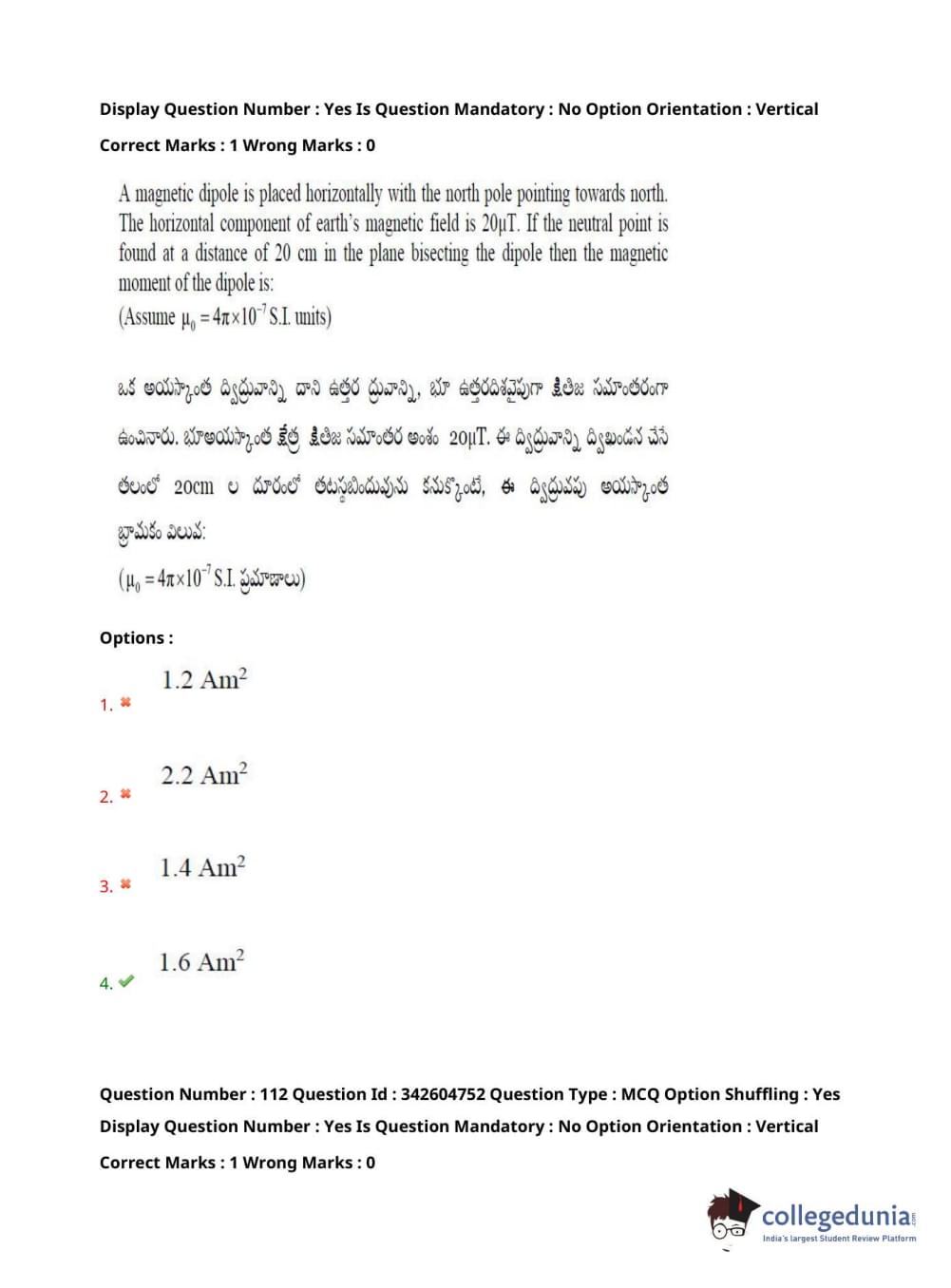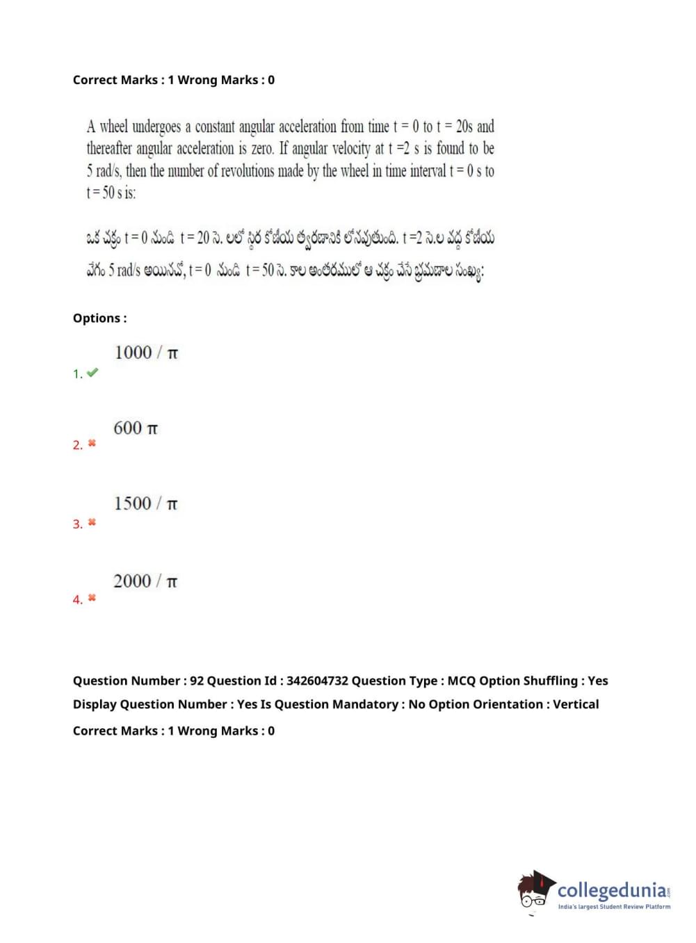TS EAMCET 2021 Engineering Question Paper with Answer Key PDFs Afternoon Session